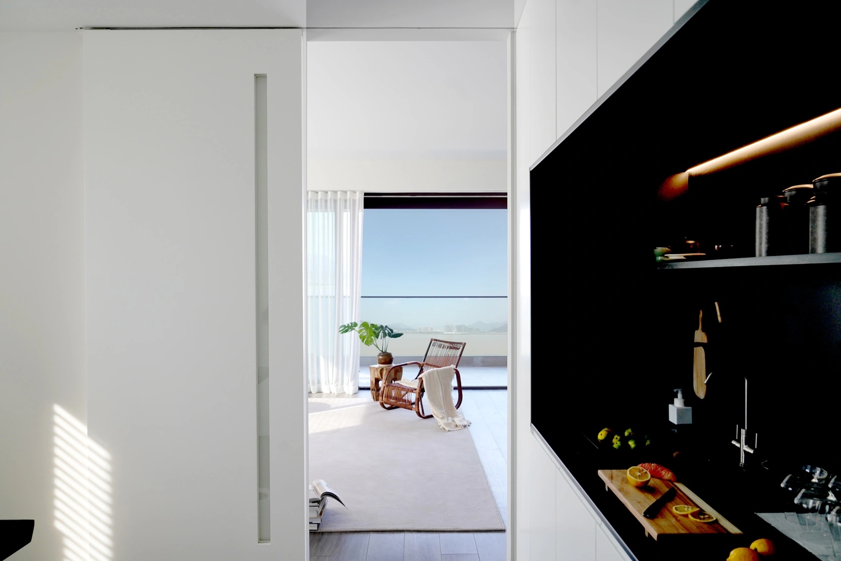 大量使用线条,用光和色彩搭建不同视角的线条,在视觉上延伸了空间,丰富了空间的层次。
