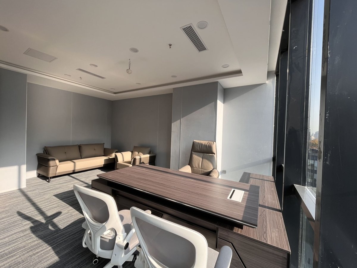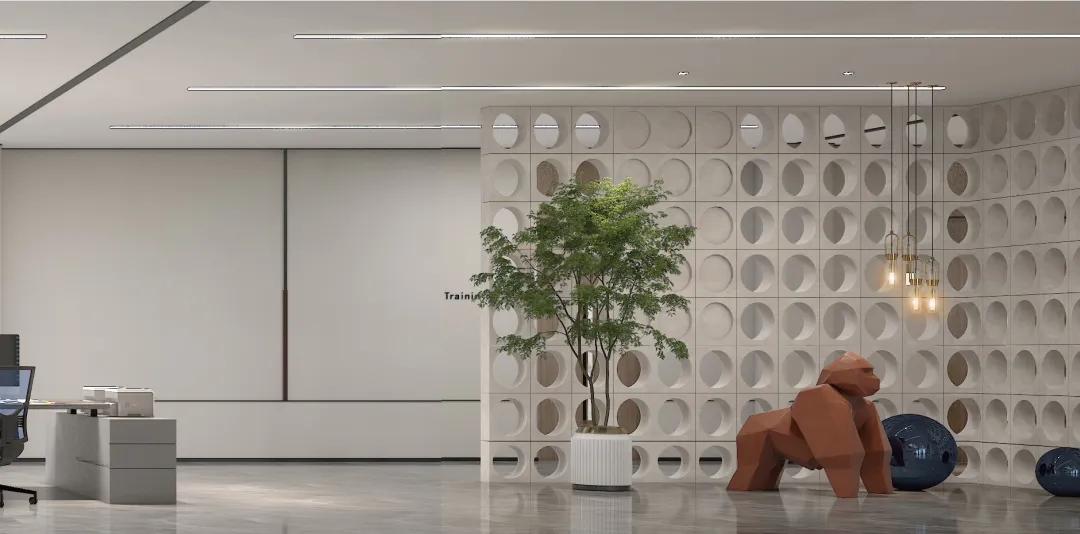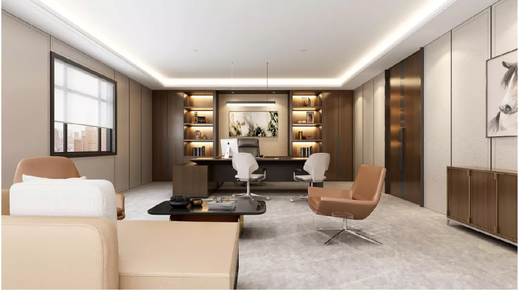 在这个时间与空间不断变换的维度里,亦能找寻到天山的明月。形态鲜明的绿色植物提供了一种宁静的氛围,同时又不中断室内美学的极简主义背景。在现代简约风格的基调上,融入经典中式元素,营造雅致质朴的工作空间。