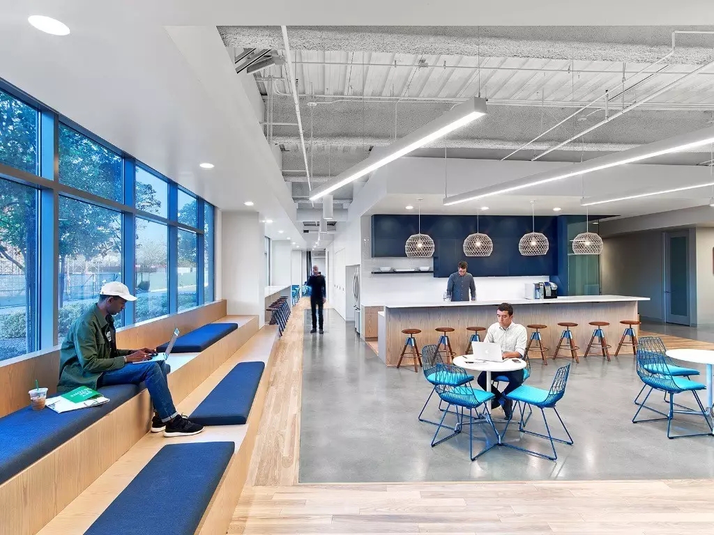 很像公司的理念,扩展空间的座右铭是:不要偏离太远的视线。 该空间拥有来自总部的许多设计线索 - 橡木和粉末涂层钢的定制工作站,精心制作的壁纸,雪白的接待台和厨房的电线吊坠,同时满足内容创作团队的需求,同时也适应 扩展空间。