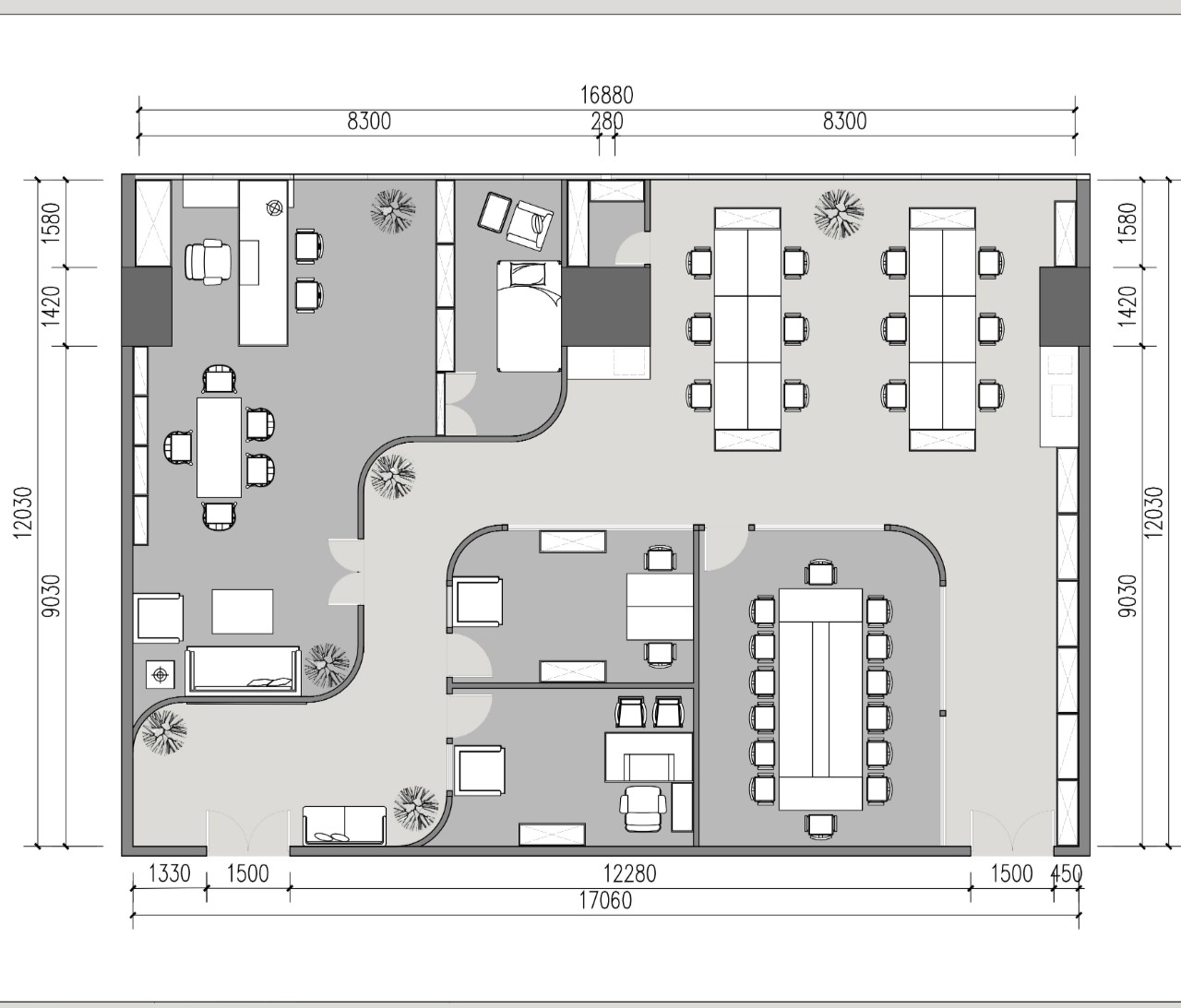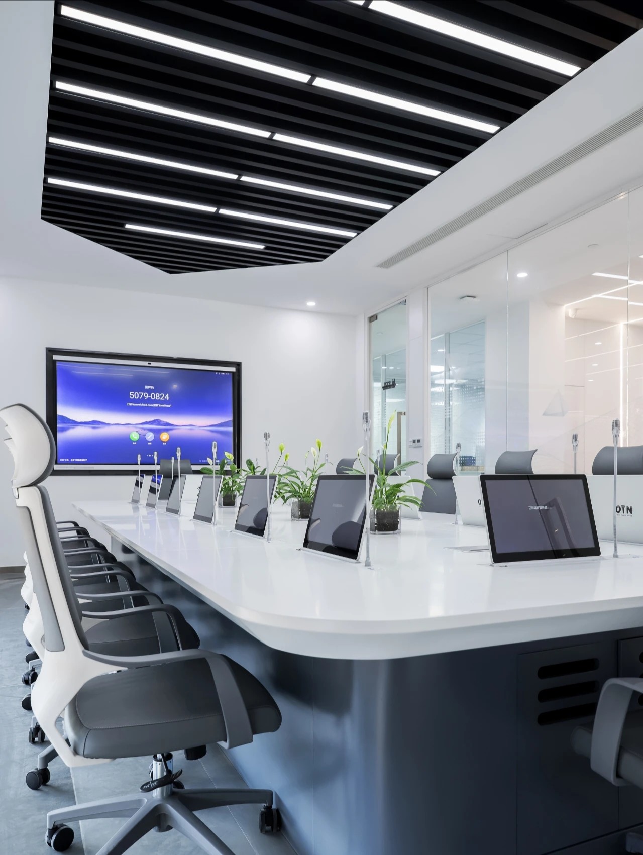 本次设计服务的对象——OTN智能科技,办公室整体的氛围和装修是传递给客户的一张名片,所以本次设计的重点是智能化×科技感,整体的设计围绕高科技元素展开,严谨锚点,呈现物联网科技发展面貌,体现企业文化与业务重心。