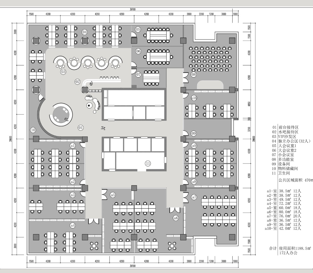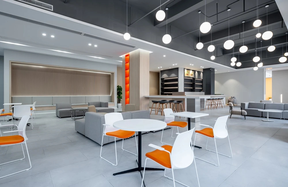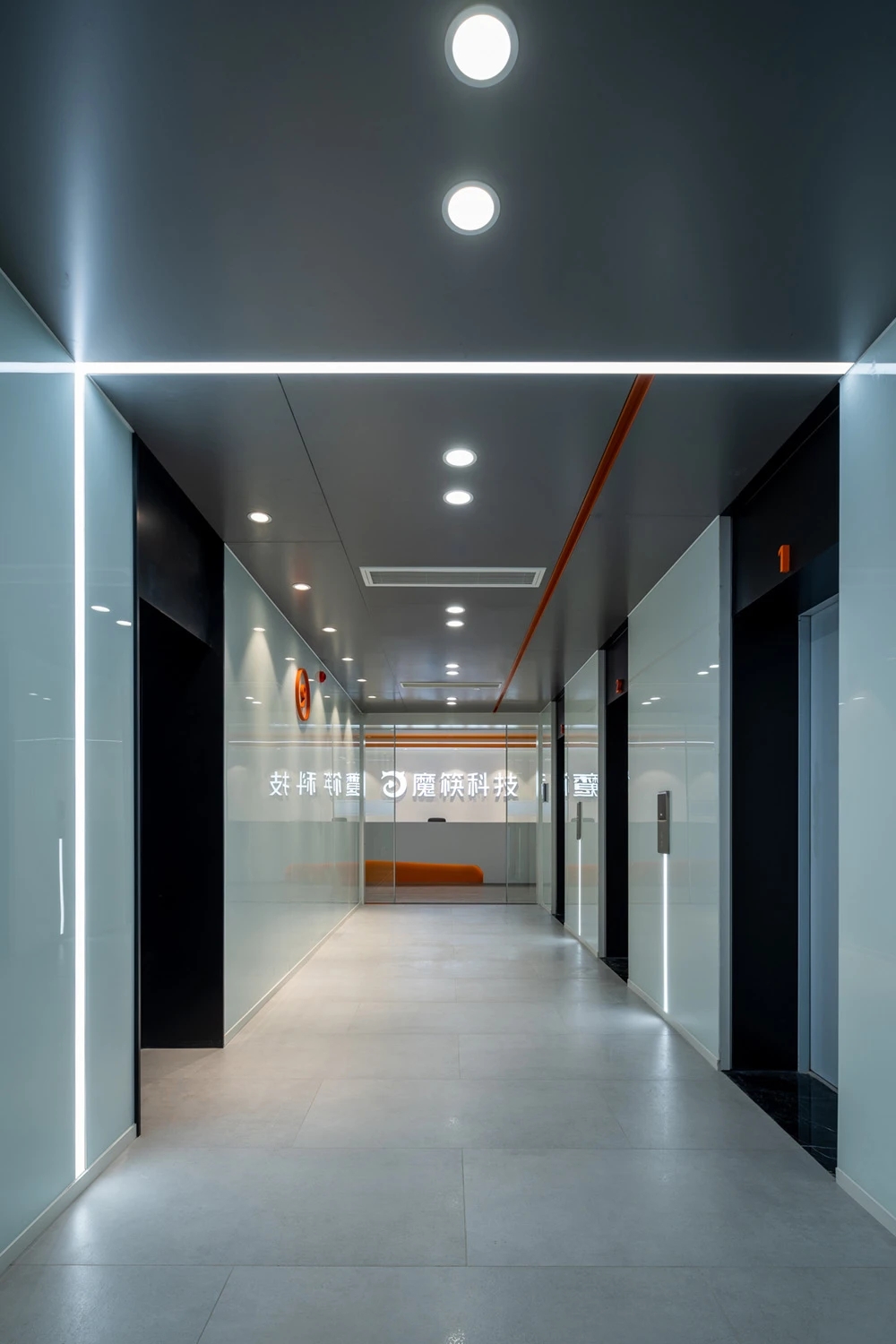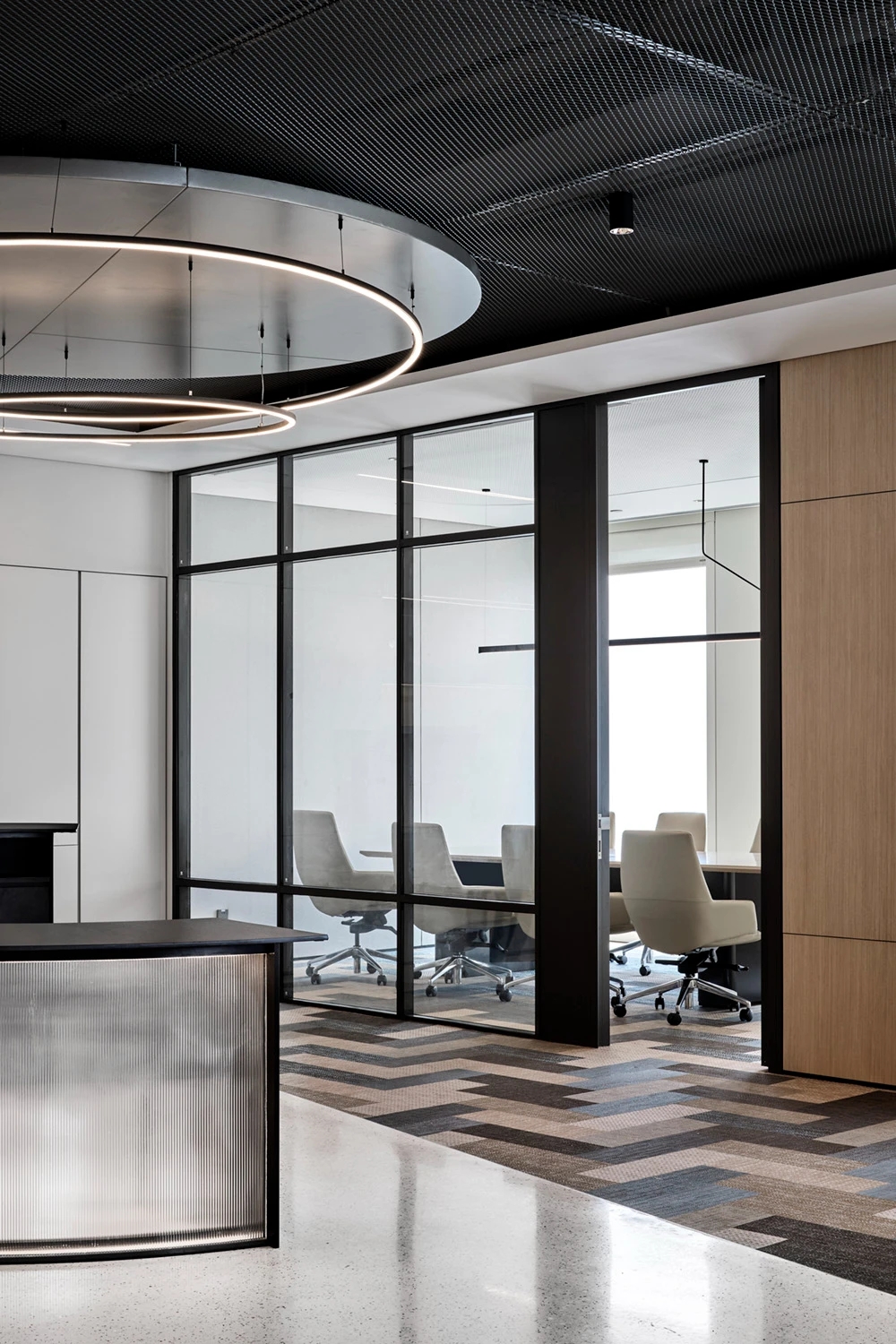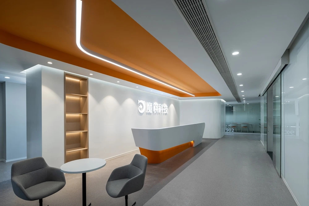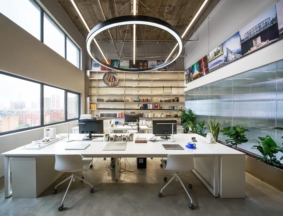 通而不透的空间立面处理上,使用通透的高隔断玻璃作为分割不同功能间与动线之间的界面,无论内外视野都得到了解放,既有利于整体办公环境的自然采光,也有效解决了不同部门之间讨论而产生的噪音问题,在保证不同部门之间的隐私之下,让人们有了更多的交流空间。