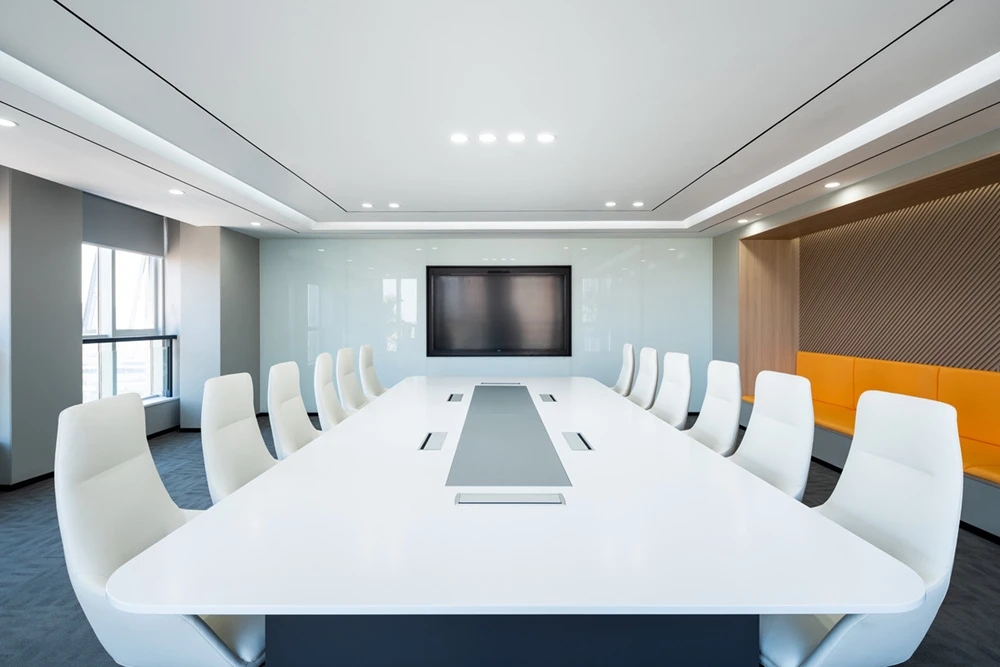 后场办公区延续了前厅ABW的办公理念,结合不同功能形式的会议室、电话间,提供了多选择的工作模式,简洁而高效。大量可再生面料的墙饰、可回收吸音板和仿生苔藓的应用,丰满了视觉层次并极大提升了空间的声学效果。