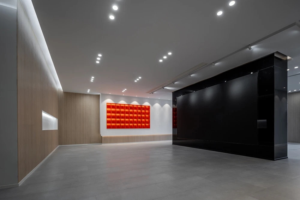 不同于投资公司的传统形象,正轩以一个圆岛吧台和开敞的自由交流区作为前厅接待场所。大量的自然光涌入室内,明净开阔。天花地面是圆转流动的曲线造型,采用水磨石地面、金属网天花、Bolon塑胶地毯等各种新环保材料,辅以色彩鲜丽的多功能家具组合、大型LED屏和随处点缀的绿植,呈现出年轻、现代、科技而又充满能量的生命气息。