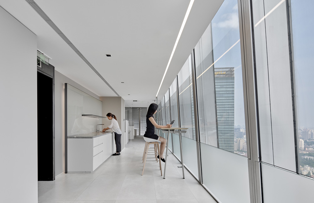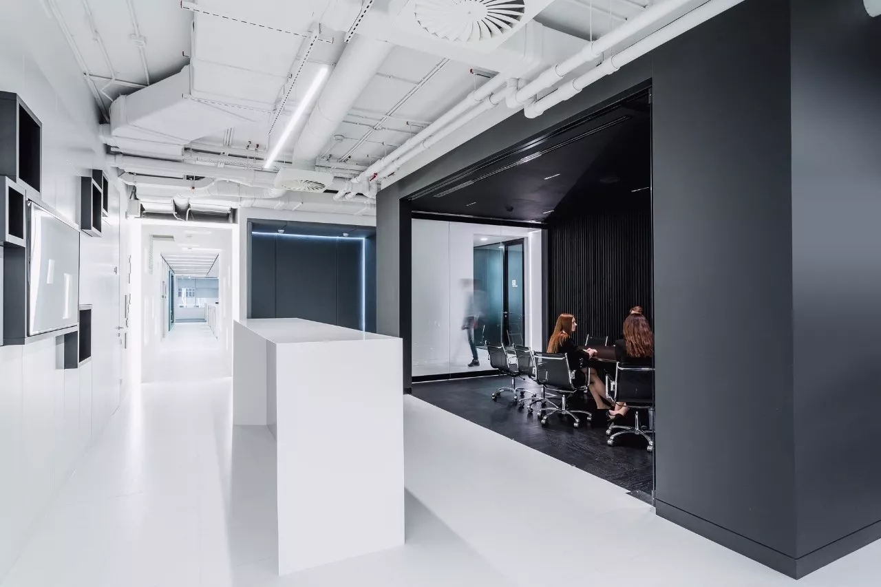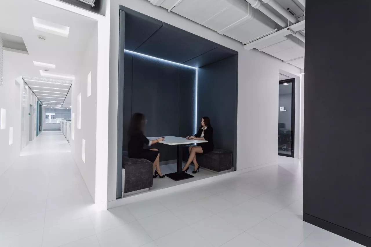除了管理团队,会议室和休憩用地的常规办公室外,办公室还设有小型会议点,可用于娱乐或与同事的短暂会议。贵宾区还设有一个会议室,可以举行与客户和公司管理团队进行更多的非正式会议 - 缓冲式家具,漫射照明,酒吧柜台,壁炉和沉重的窗帘营造出舒适的氛围,可以坐下来讨论业务以“开领”的方式。