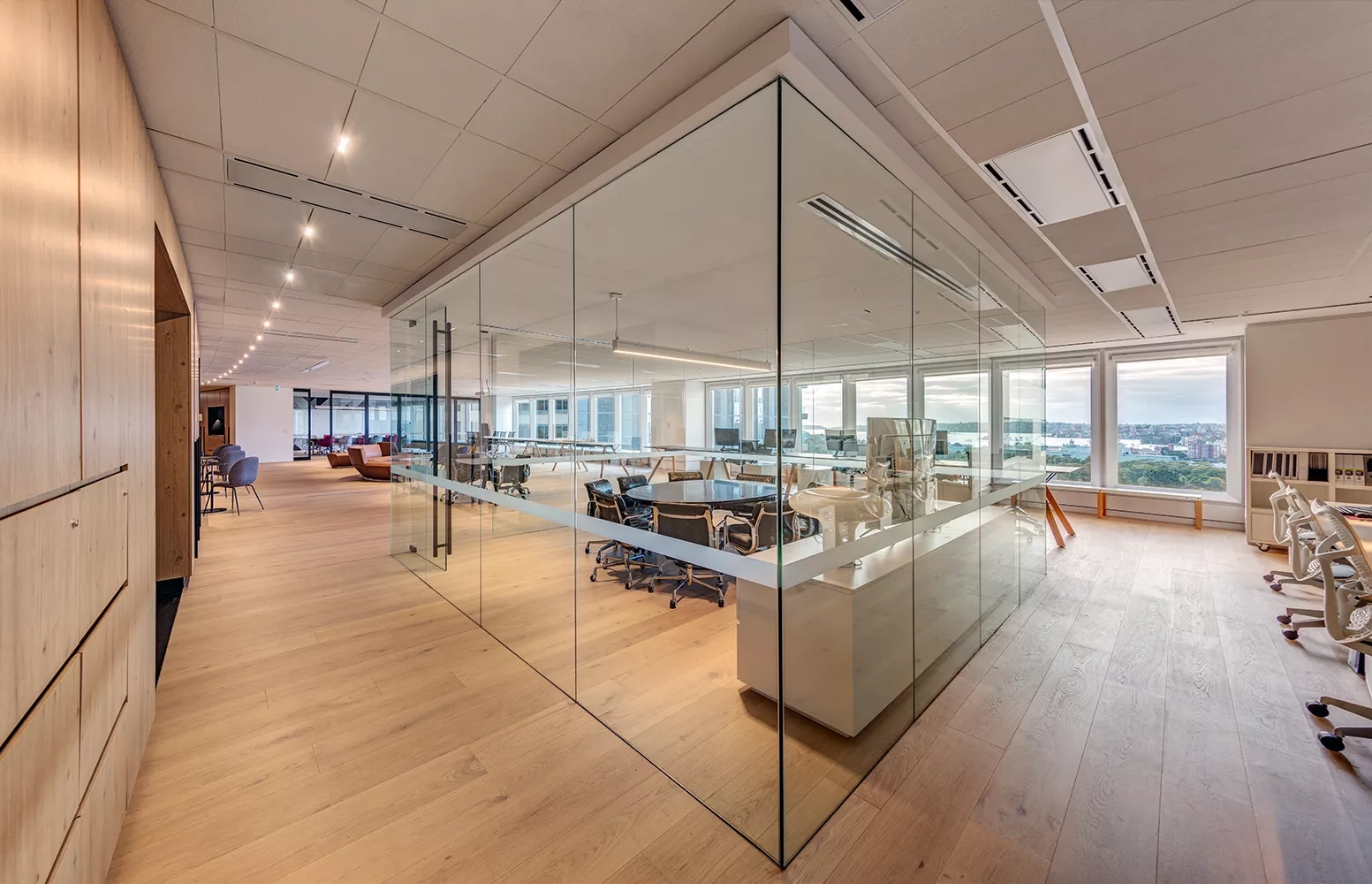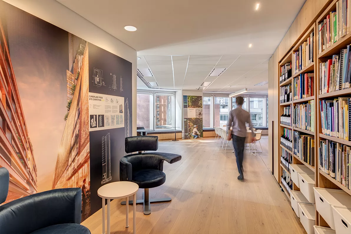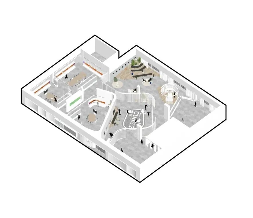 整个空间围绕大厅展开,而大厅本身用途灵活,既可以接洽客户、休闲办公、开展合作,也可以充当会议室,以便进行大型演讲和召集员工大会。