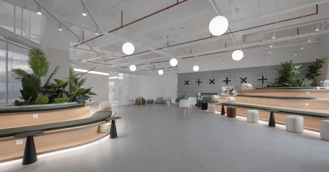 1200㎡ 的办公室中,享有最佳视野、光线和自然通风的部分,被布置为员工的探讨或休憩区域,创意生产空间则有机分布于办公区四周,以鼓励更多的创意和合作在此自然而然地发生。