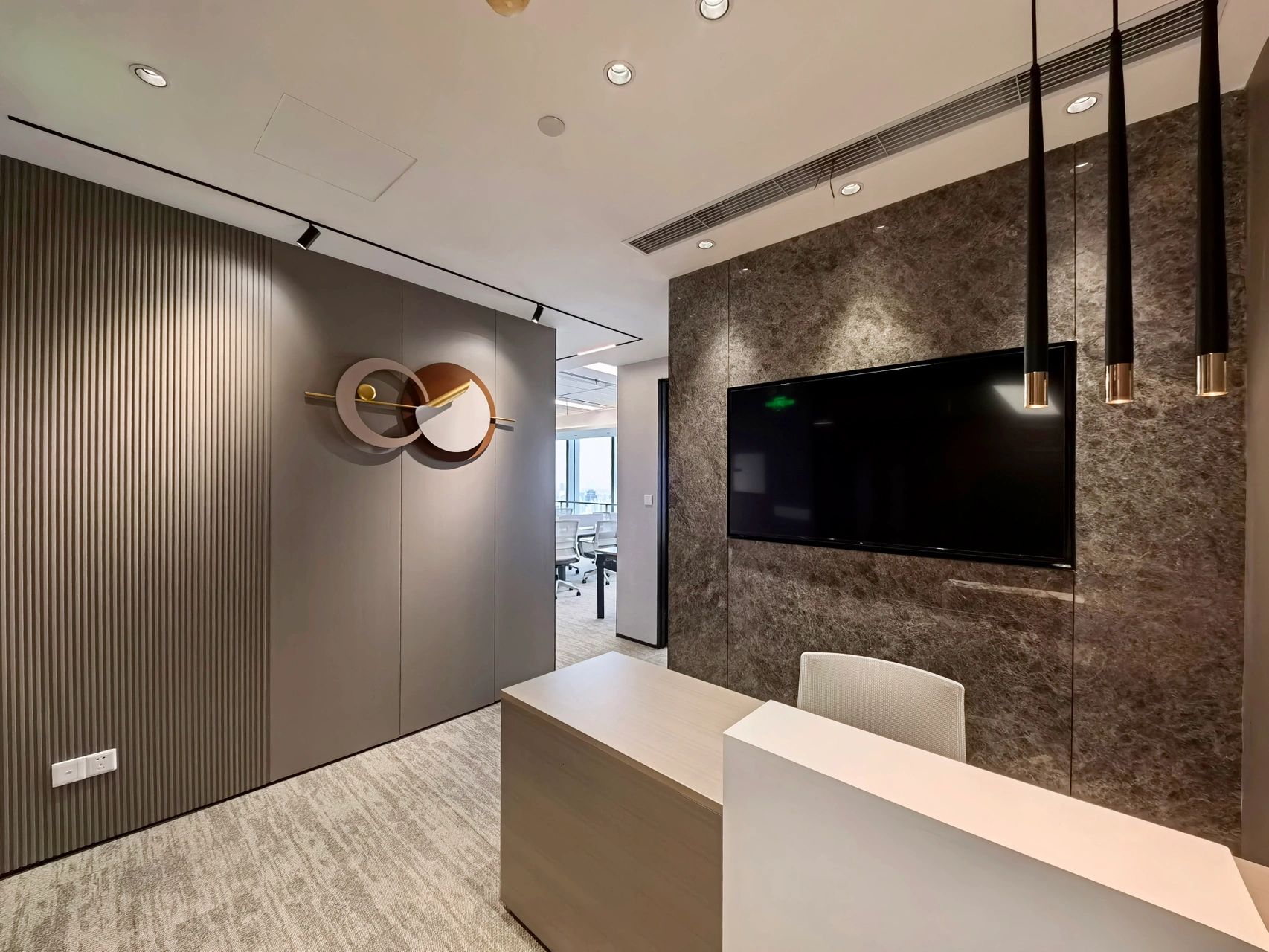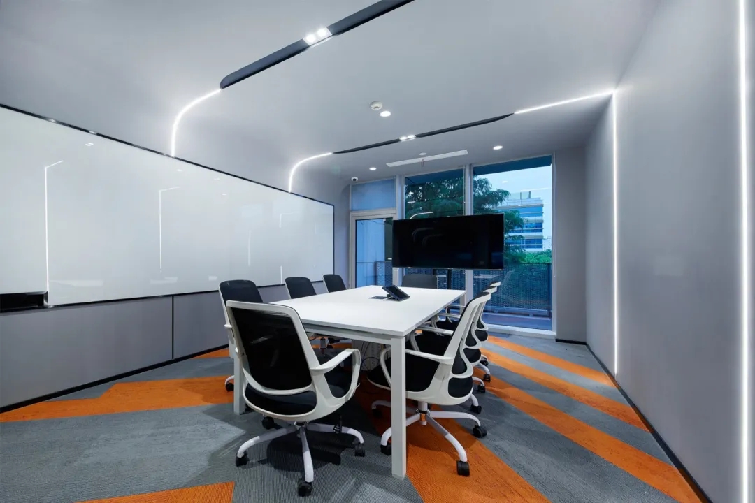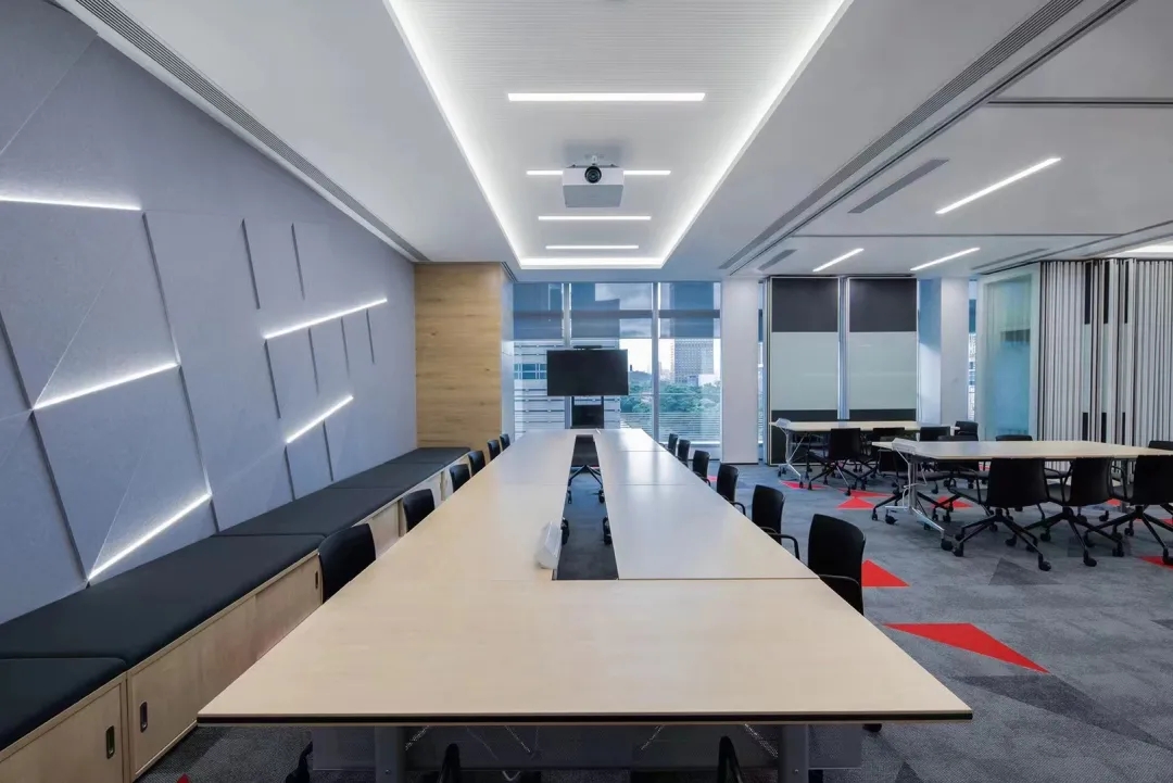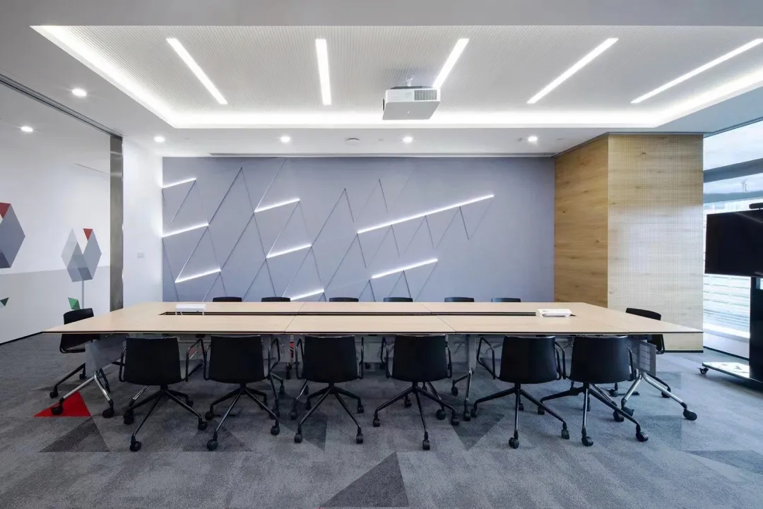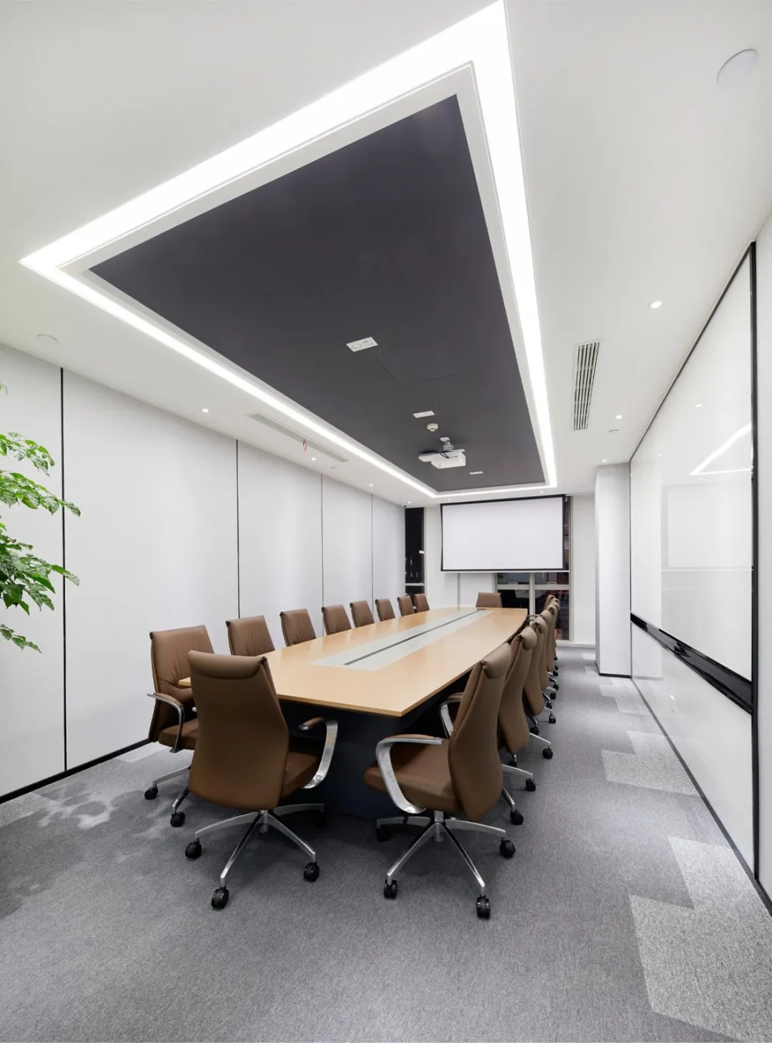 无论是培训室还是会议室,都有清晰有序的线条元素呈现在我们眼前,除了在视觉感官上带来的良好体验,还不乏设计闪现的光影,使得整个空间简洁时尚更具商务感、时代感,从而传达干净简洁的设计理念。