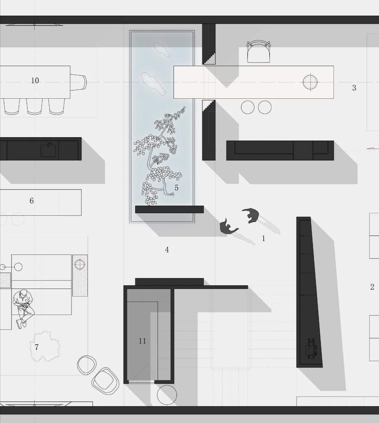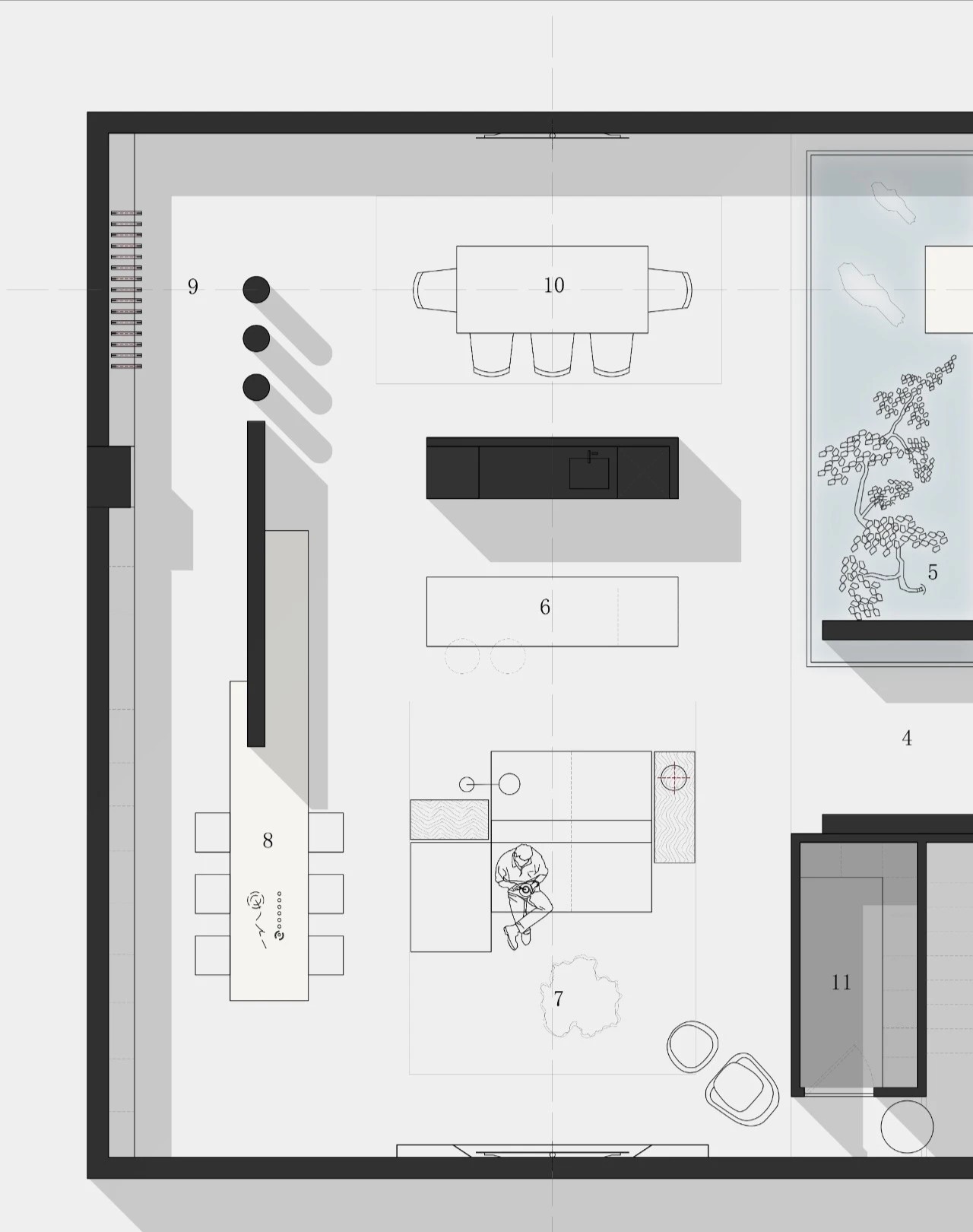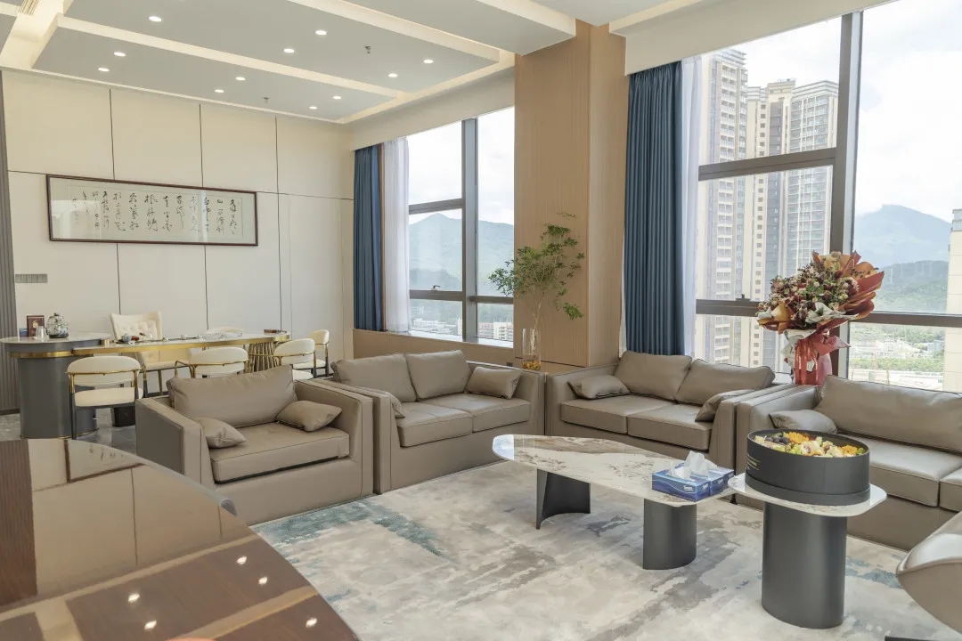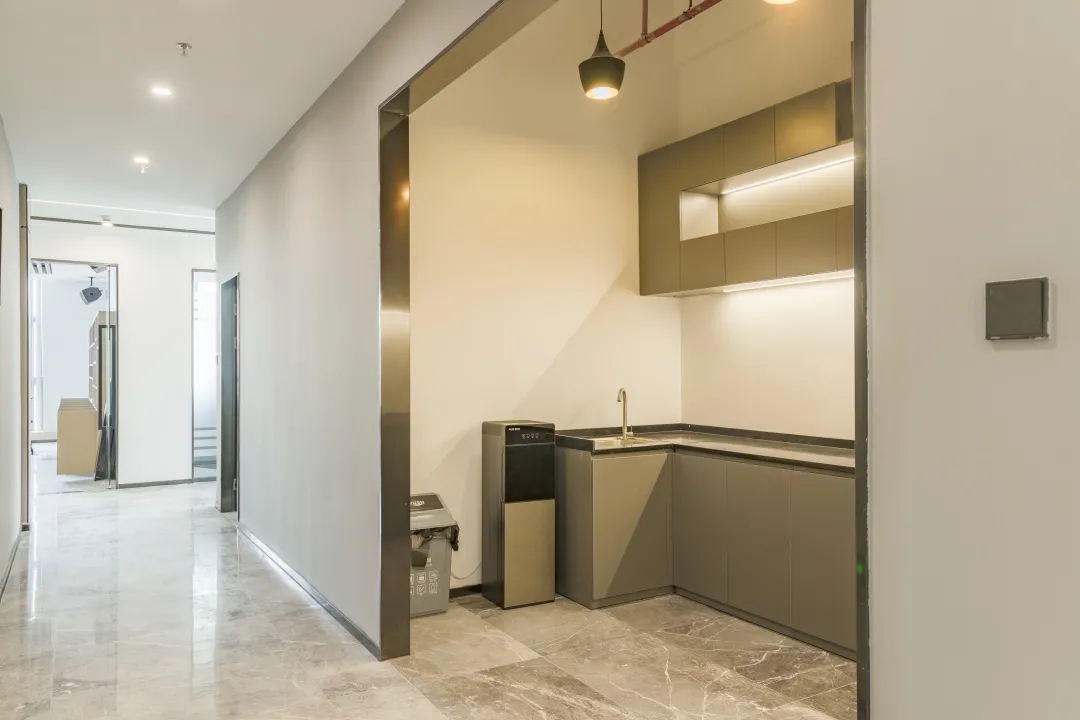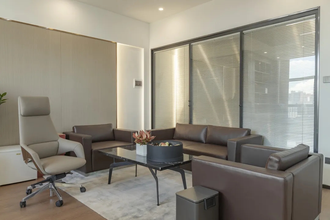 办公室延用了深沉色系来搭配办公家具,打造空间统一调性。