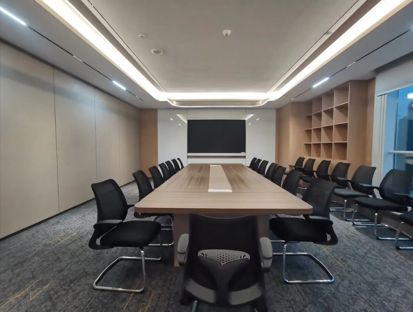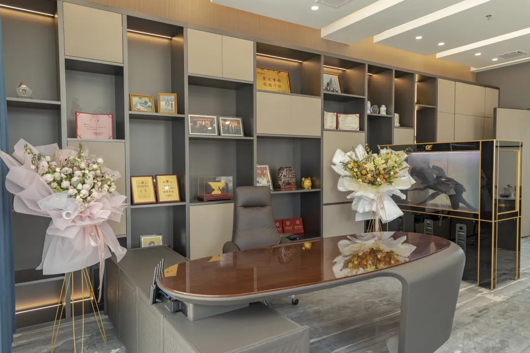 深棕、胡桃木、墨绿、红棕的颜色搭配能够制作办公空间的严谨感,能够让整体空间更加沉稳,帮助办公使用者保持更加冷静的办公态度。