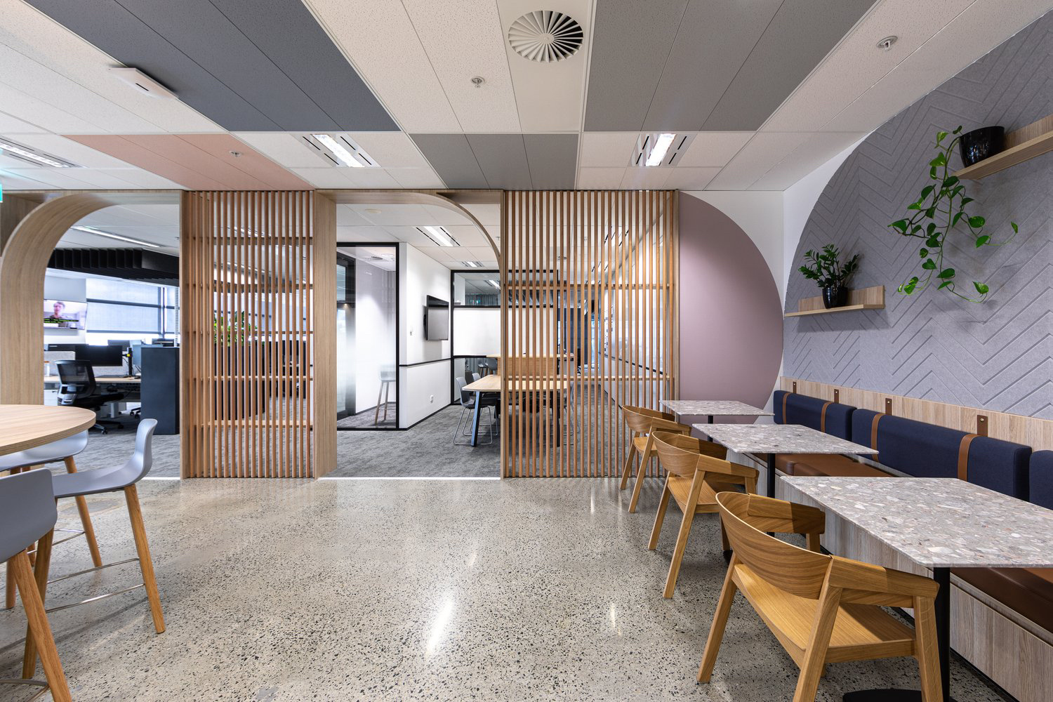 开放办公区以一种多功能的包容属性接纳每一个不同的独立的个体,将碎片化的生活与工作串联起来,在满足功能的基础上赋予更多场域体验。