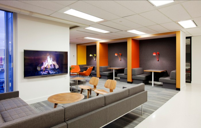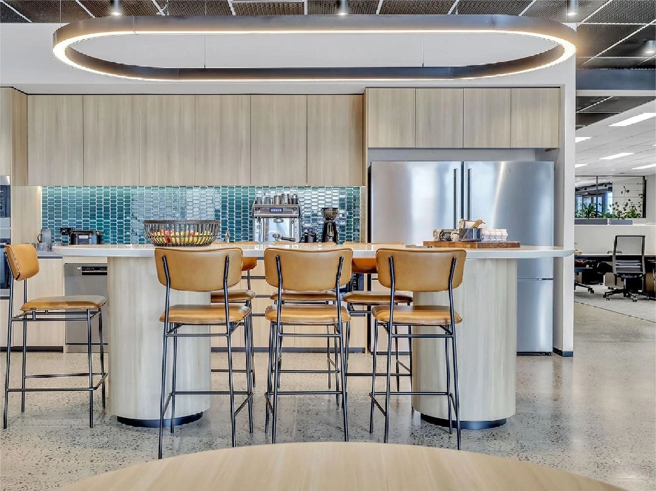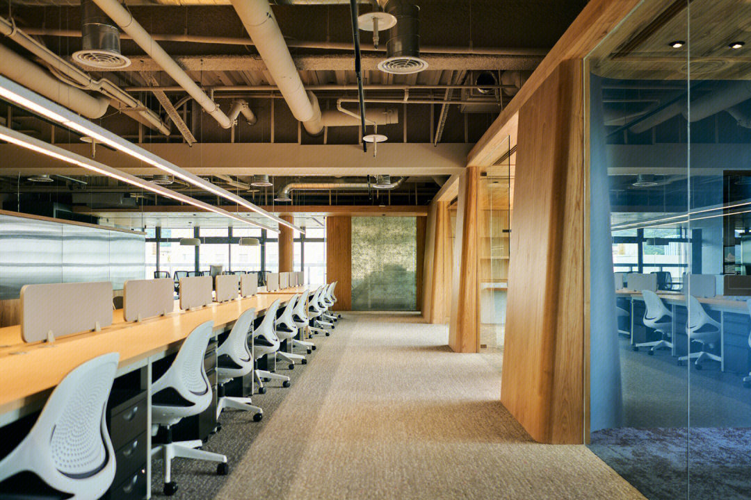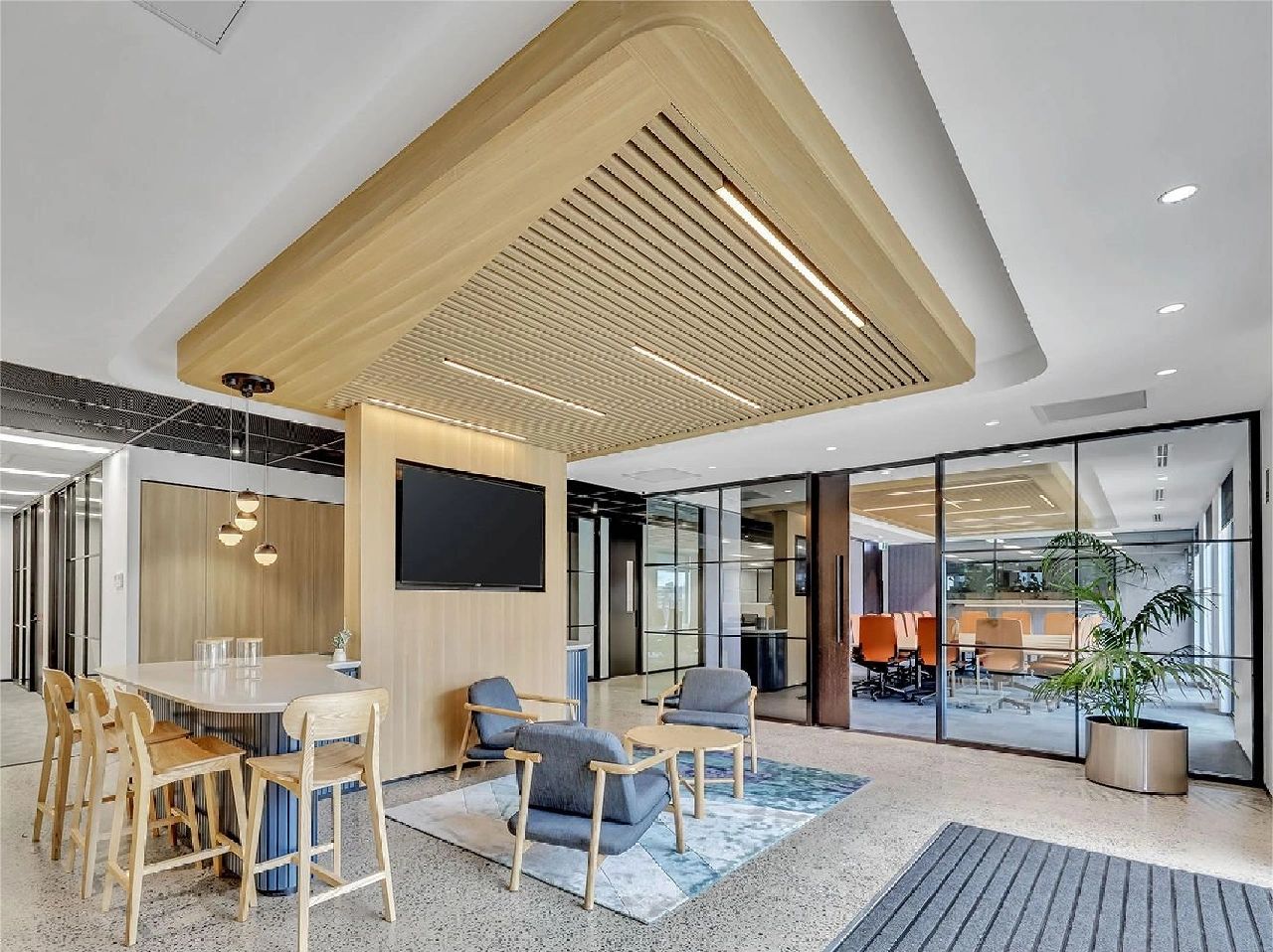现代办公室设计的参考资料,结果是一个经典的和现代的空间,一个方向的选择创造一个永恒和几乎温馨舒适。这种审美是*明显的大堂,设有柚木墙板,卡拉拉大理石前台,白天吸和中世纪的客厅家具从小山工作室。休息区特色的习俗感到排摊位,从而为酷的社交活动和安静的会议空间。