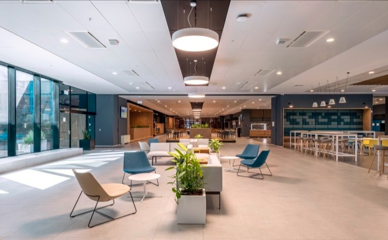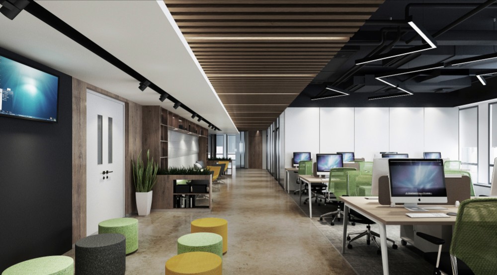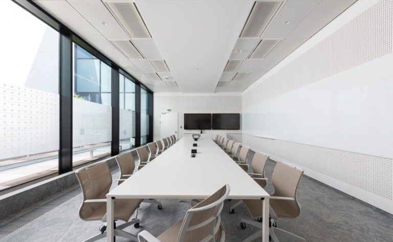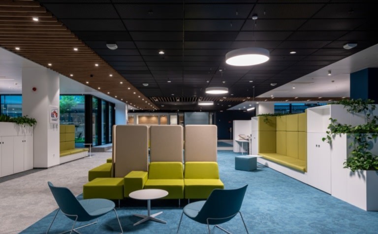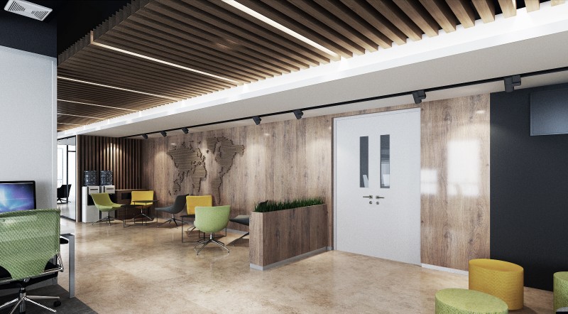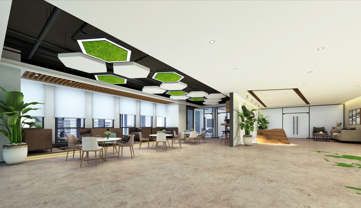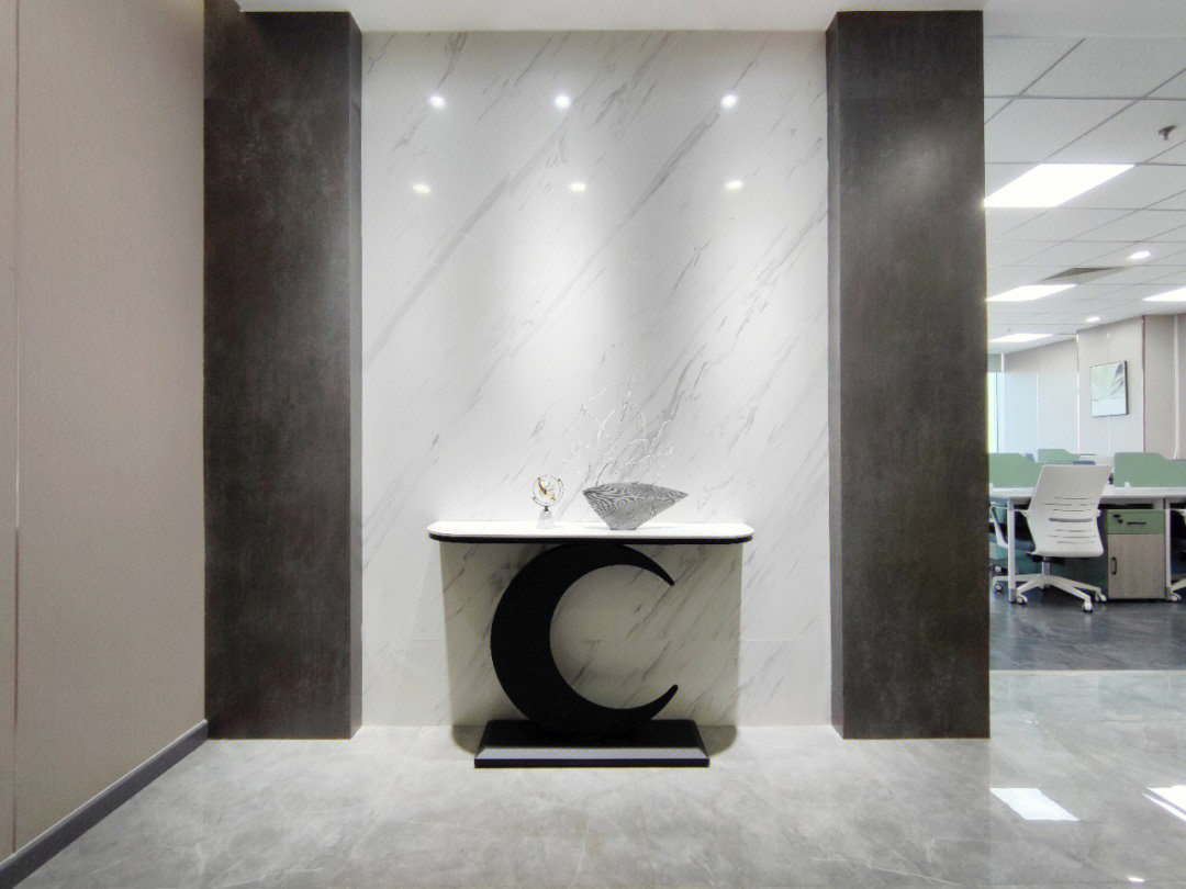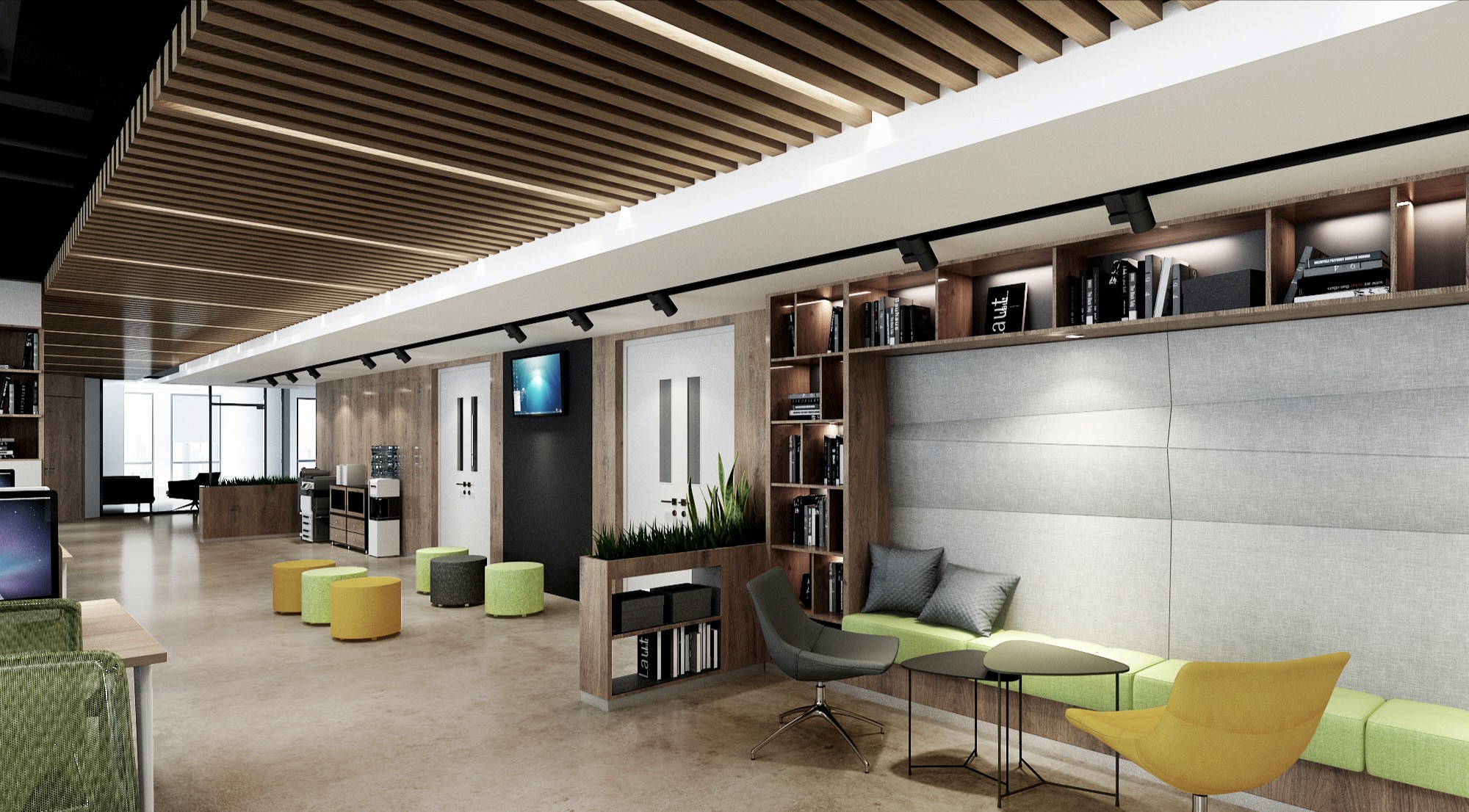 “开卷书”的概念是用弧形墙壁表达的,代表着热烈的欢迎,并为到达区提供了顺畅的流动。“灯泡时刻”的想法成为接待处的特色灯,反映了创新的想法。这两个元素结合在一起,象征着创造力、智慧和知识,并成为一种图形表示,作为隐私图案被使用和安装在所有玻璃隔断上。