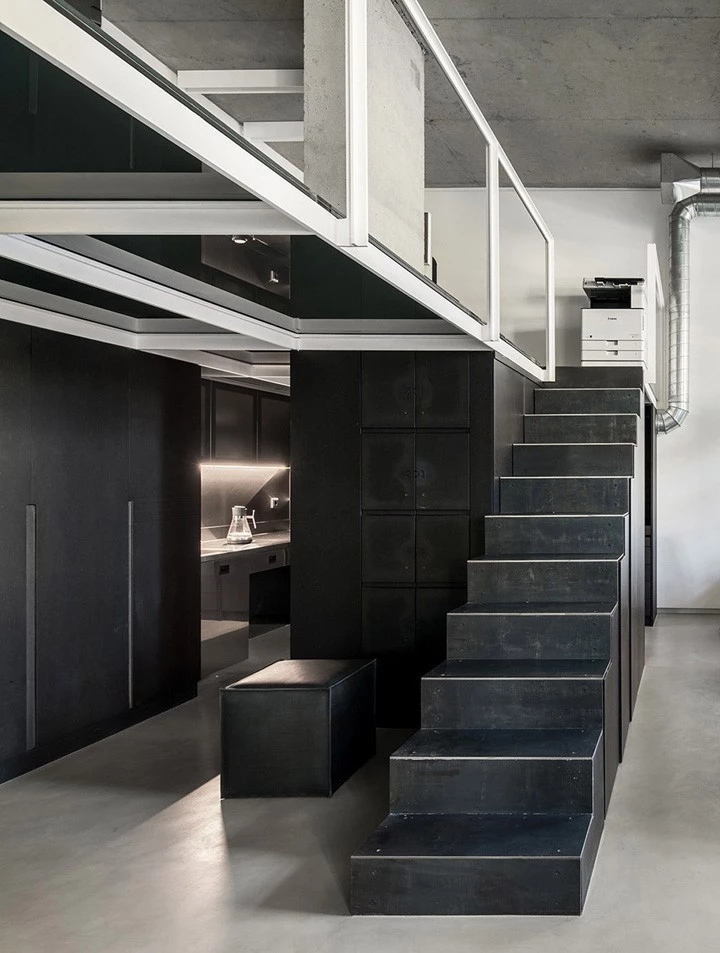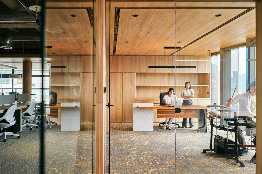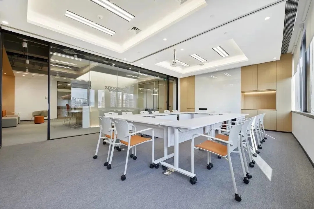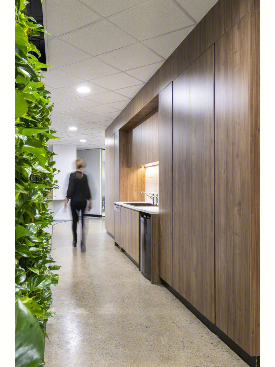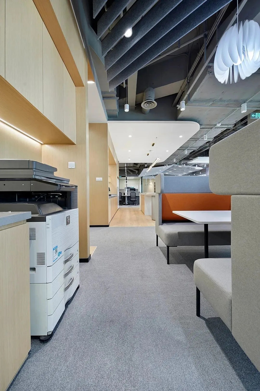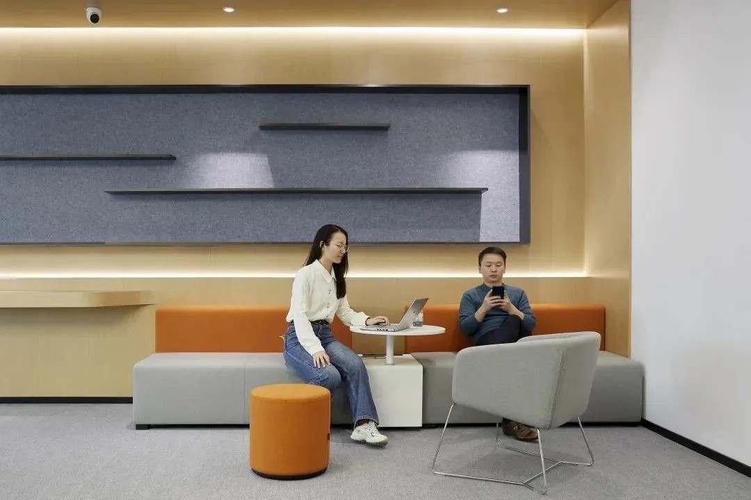 企业已经开始关注久坐不动的工作方式所带来的健康问题。因此鼓励员工流动起来,增加活动量也是本案的一个重点,设计师在开放员工区周围配置了各种休闲的座椅、沙发和桌子、吧台、还有高度可调的办公桌、人体工学座椅、健身器材及可自由组合的办公家具,这里员工可以根据自己的工作需求选择最舒适的工作方式,鼓励员工不定时在办公室里走动,以促进健康的工作方式,这也正体现出康稳关爱员工身心健康的企业文化。