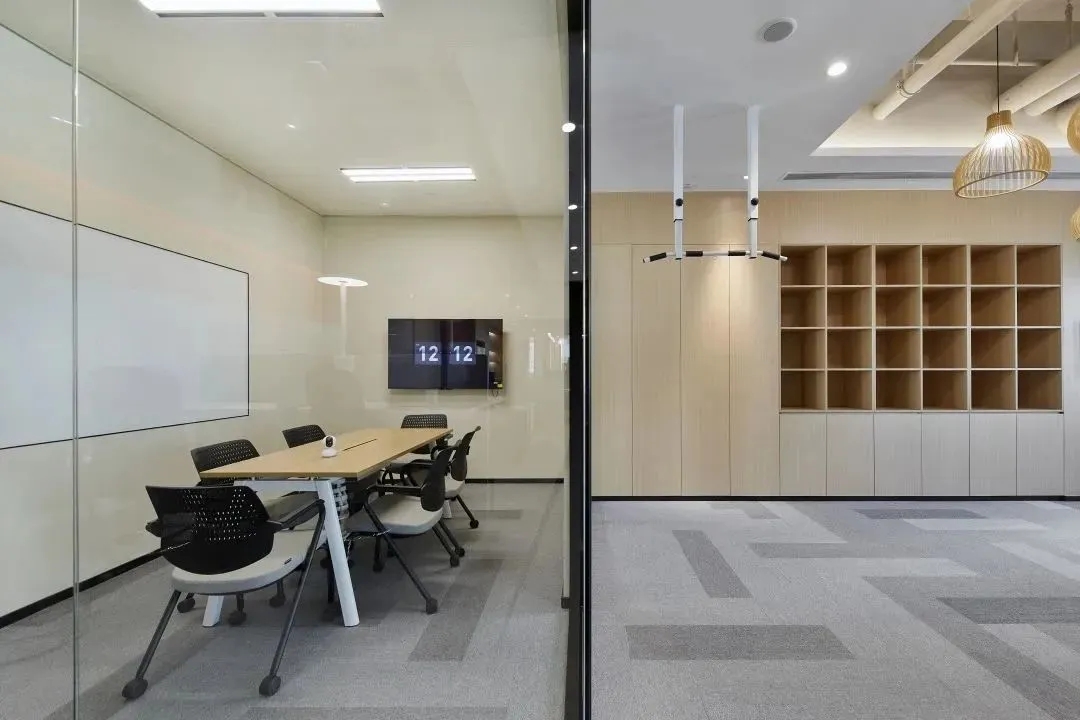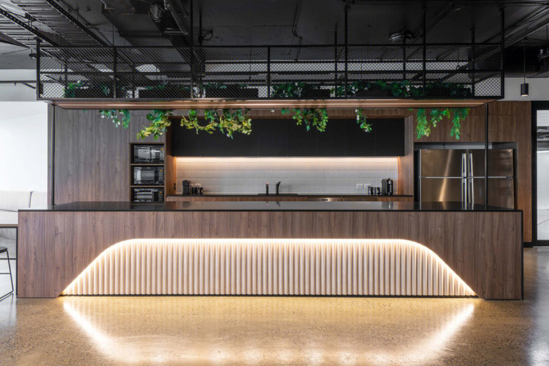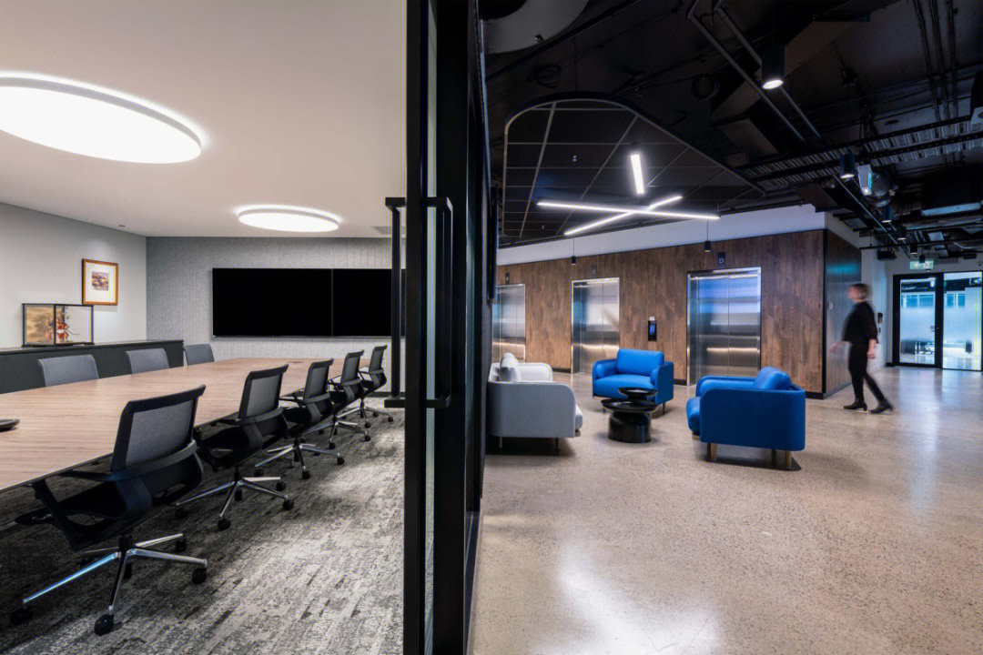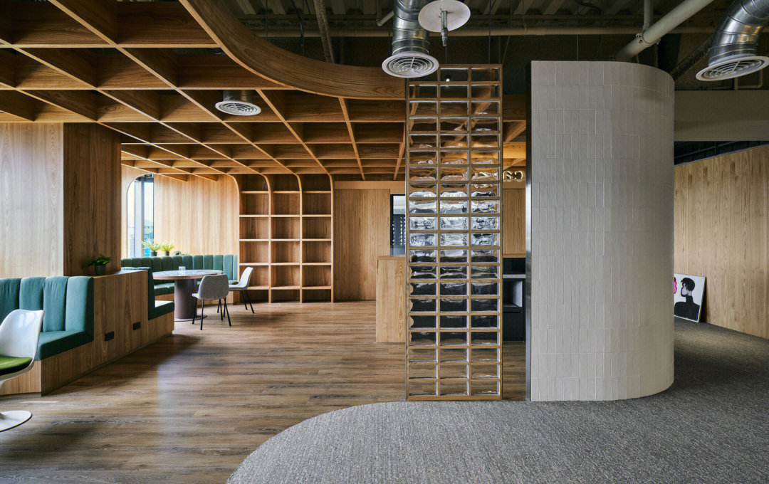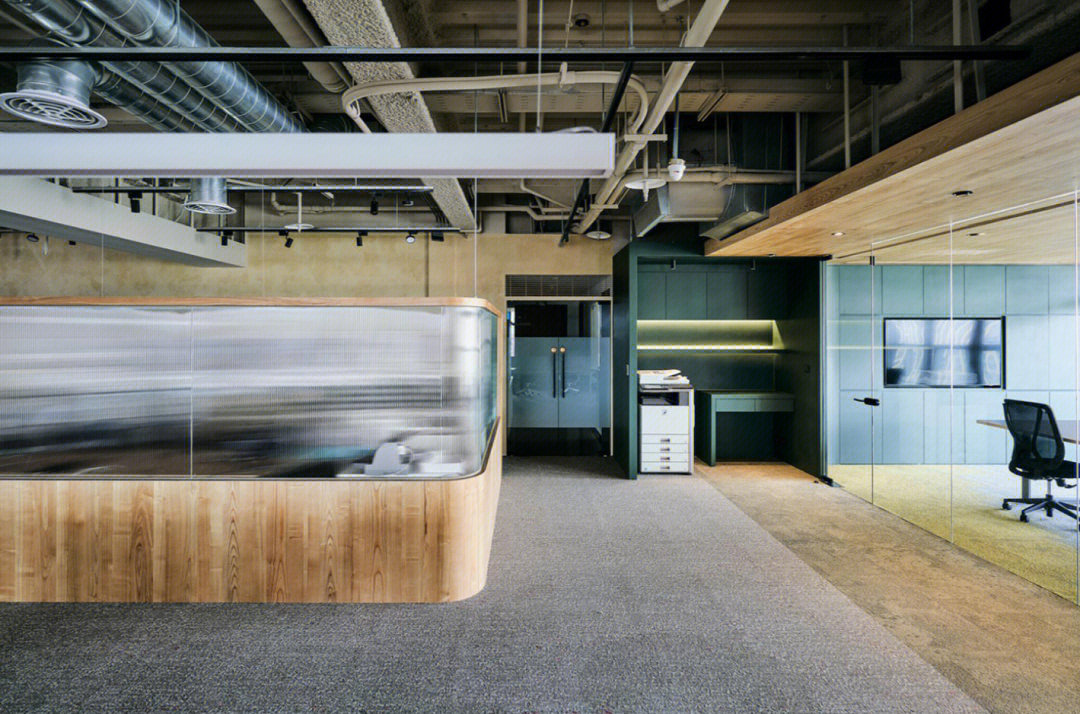 进入前厅给人开阔的视觉效果,透明玻璃隔墙在空间里营造通透纯净而理性的视觉感受,让整个空间得到视觉延伸,同时这里弱化了传统的前台的特性,取而代之的是加长的接待台同时亦是吧台,各种柔软舒适的沙发为访客等候创造轻松的氛围,空闲时也可以作为员工的社交休闲空间。