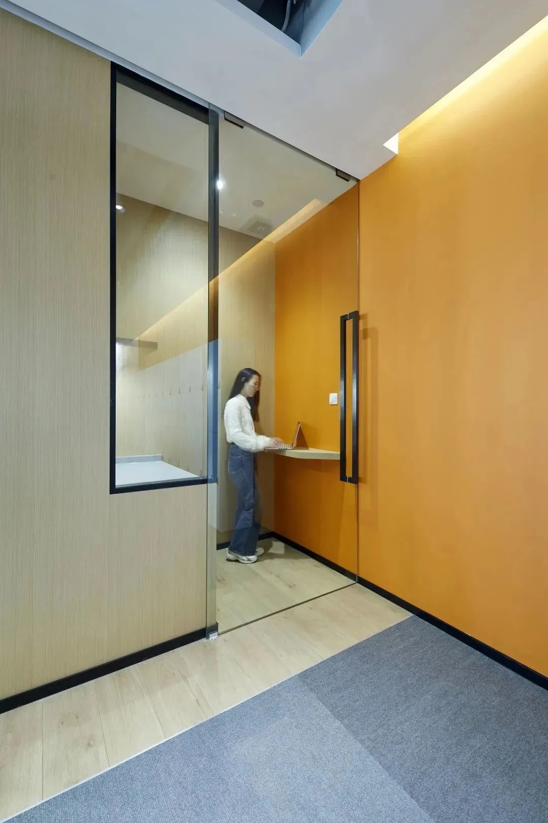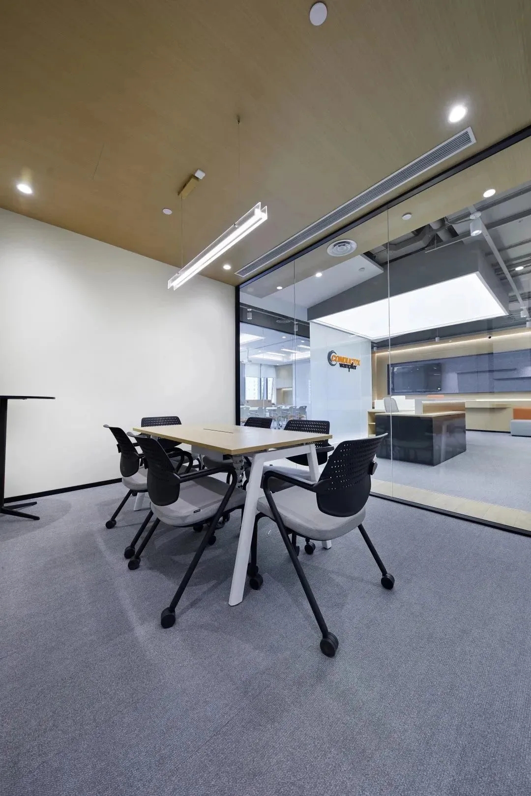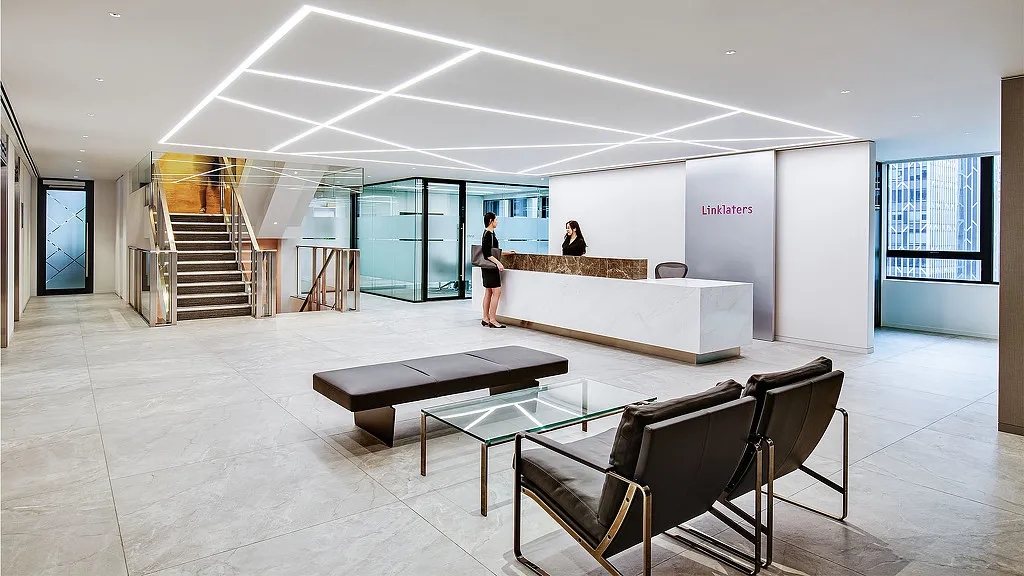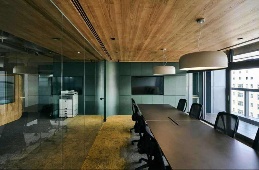 进入前厅给人开阔的视觉效果,透明玻璃隔墙在空间里营造通透纯净而理性的视觉感受,让整个空间得到视觉延伸,同时这里弱化了传统的前台的特性,取而代之的是加长的接待台同时亦是吧台,各种柔软舒适的沙发为访客等候创造轻松的氛围,空闲时也可以作为员工的社交休闲空间。