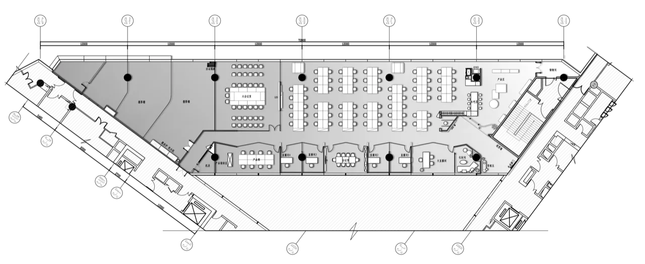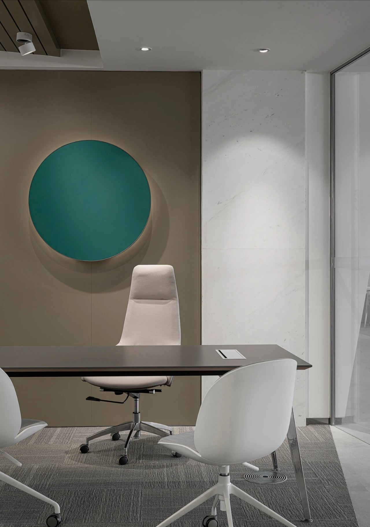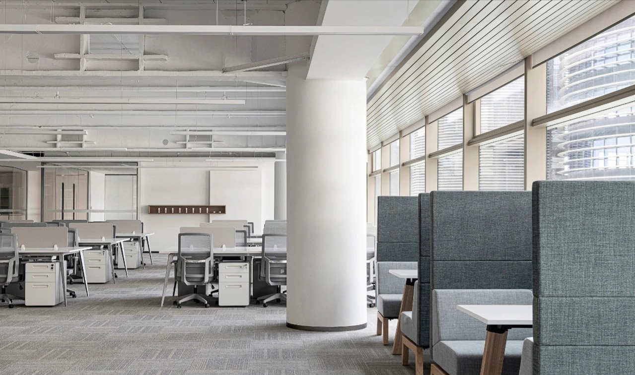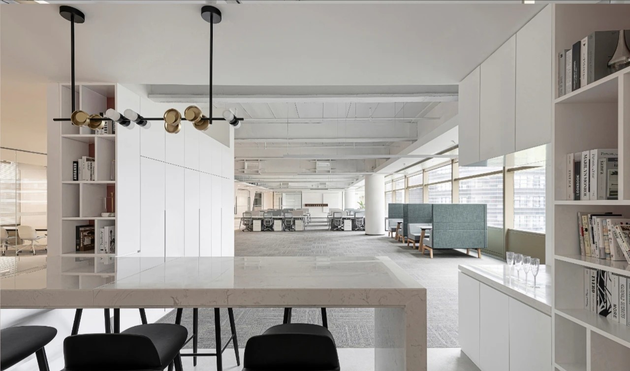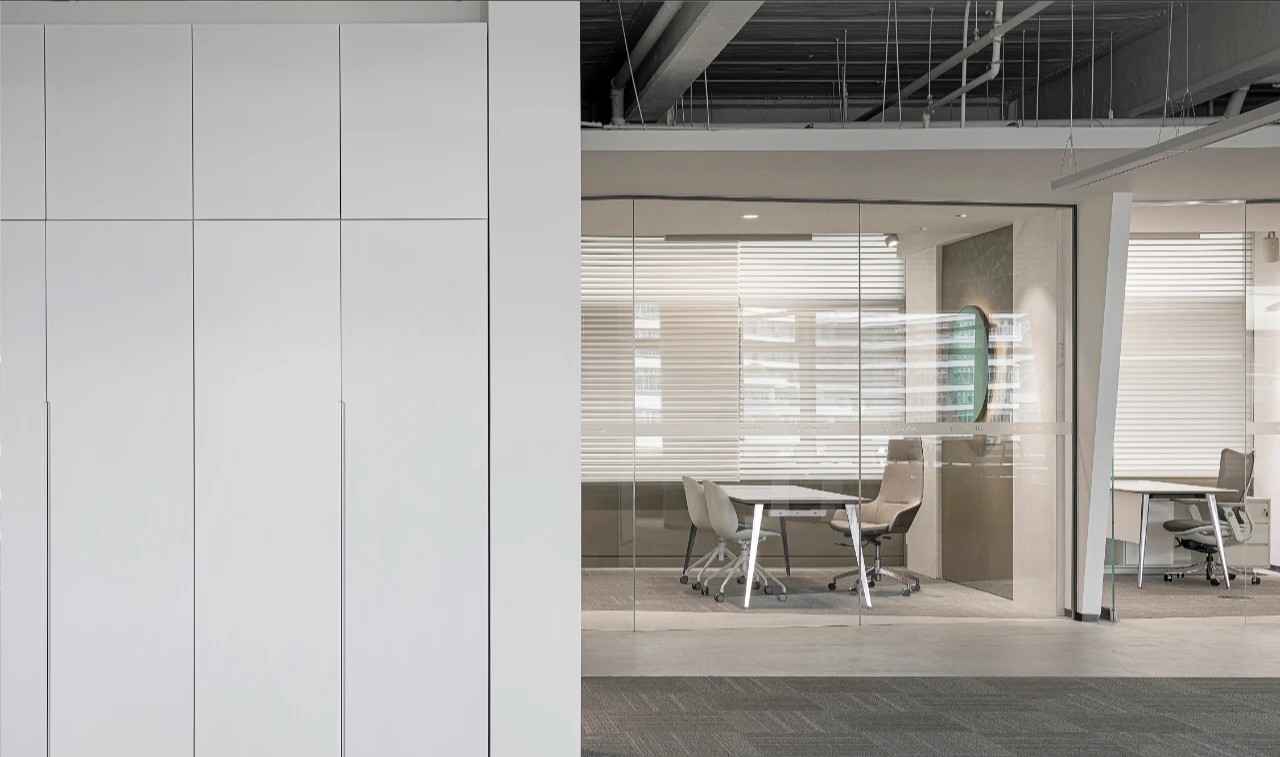 考虑到办公的形式不同,设计寻求了部分独立部分开放的空间以建立更系统且完善的办公秩序。在将会议室、开放办公区和卡座进行布局时,合理划分了功能分区,各自在同时段运行也处于互相无干扰模式。