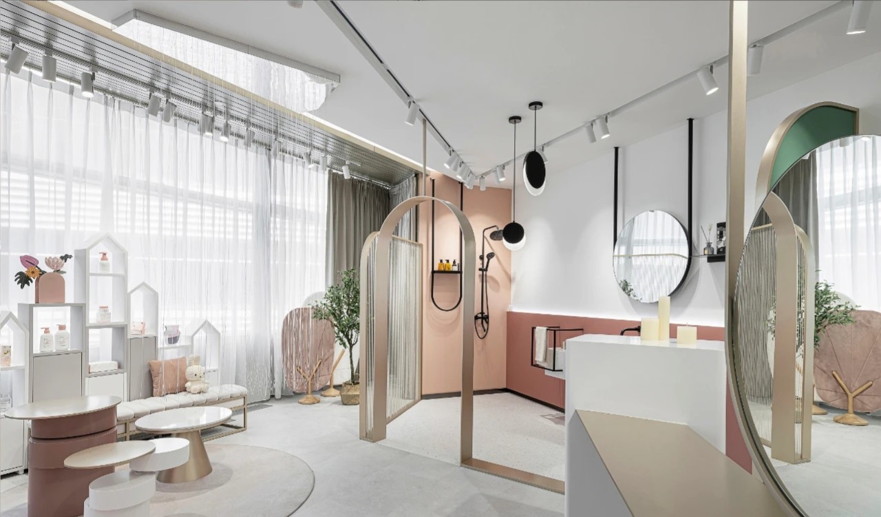 攸妍品牌希望空间可以诠释与产品理念相一致的价值观,在功能上涵盖沉浸式品牌体验馆、带货直播间、新媒体培训室、办公区、摄影基地、大型会议室等空间于一体,并最终效力于攸妍品牌新业务的开拓和品牌宣传。