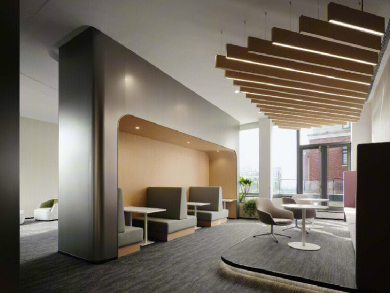 工作与生活相结合办公与休闲相交融这是项目所要打造的空间设计导向主张“心情释放 绿色办公”的设计理念空间严谨整齐 堆叠有序白黄灰三调交相呼应