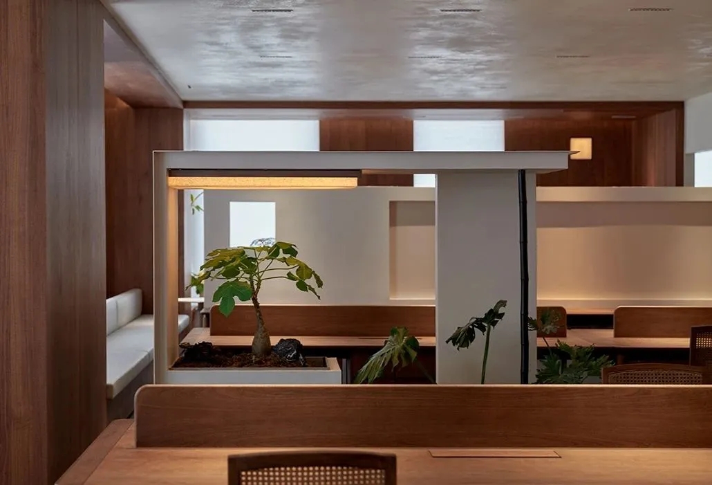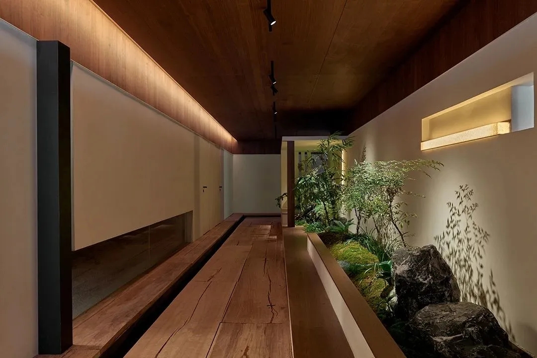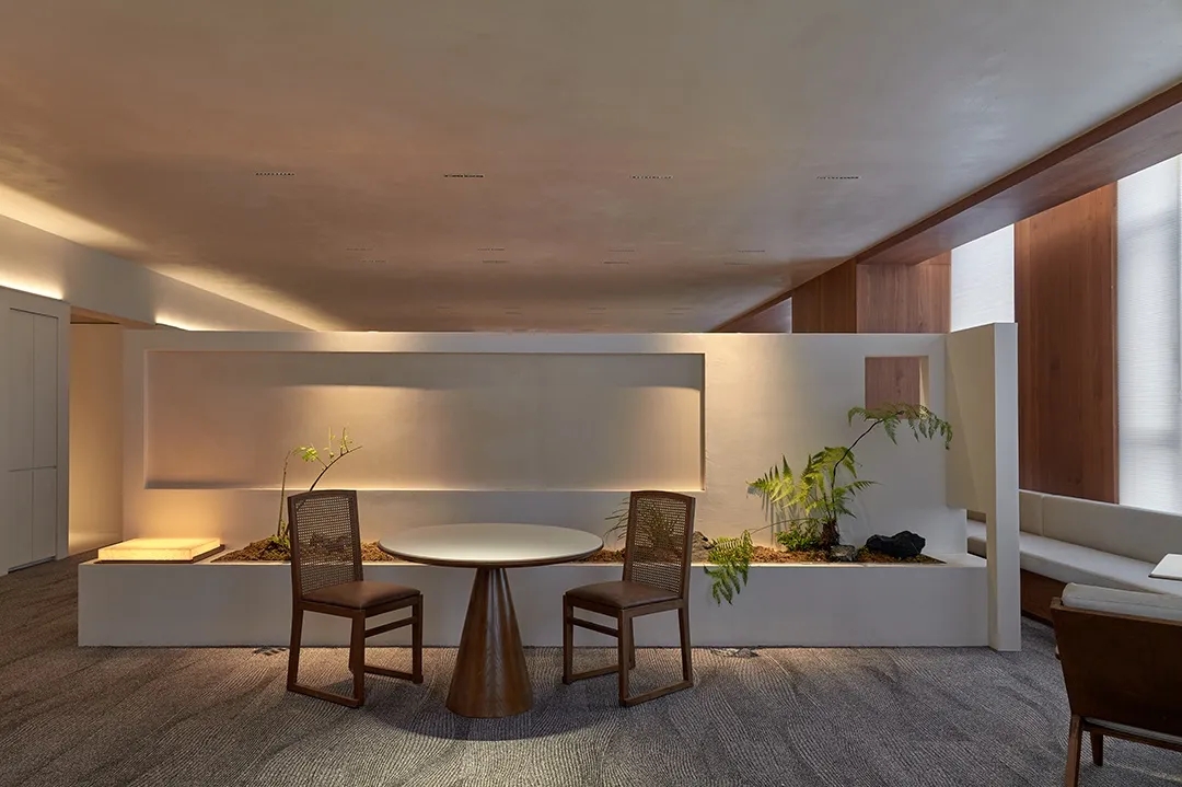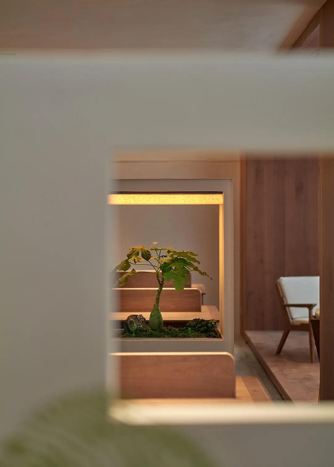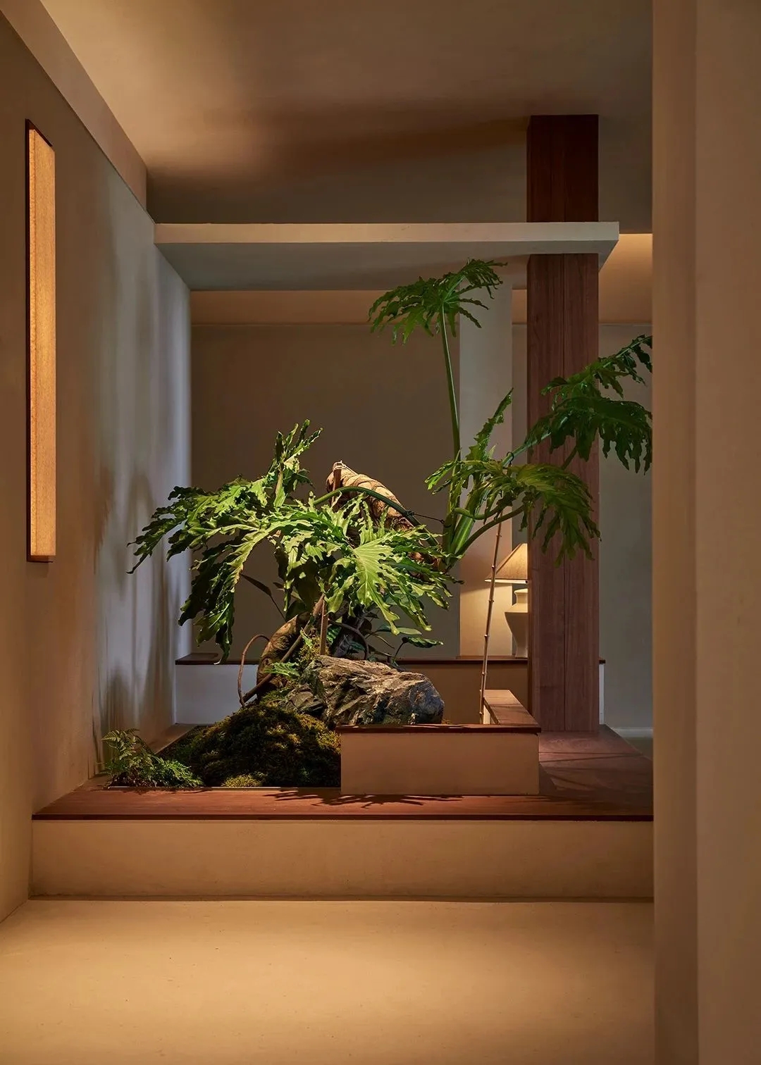 折一枝曲高和寡半消磨二月垂杨不破即不立 动辄生乱影绿植的着色使得空间更加灵动柔和 生机尽禅