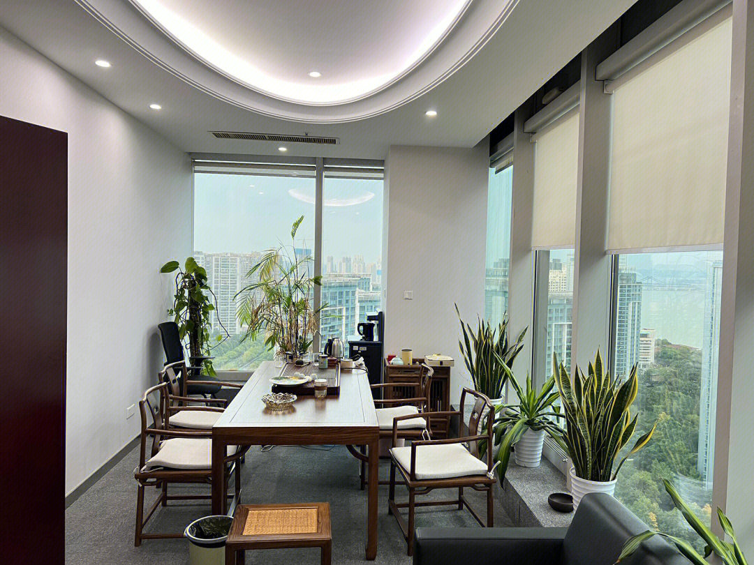 点线面的表现及灯光色彩的运用亦传达着每个空间的个性与共性。小会议室采用局部吊顶的形式,将几何造型贯穿于整个空间,在蓝色与亮黄色的对比中,呈现出舒适优雅且充满活力的办公氛围,从感官上,促进会议中的积极互动。