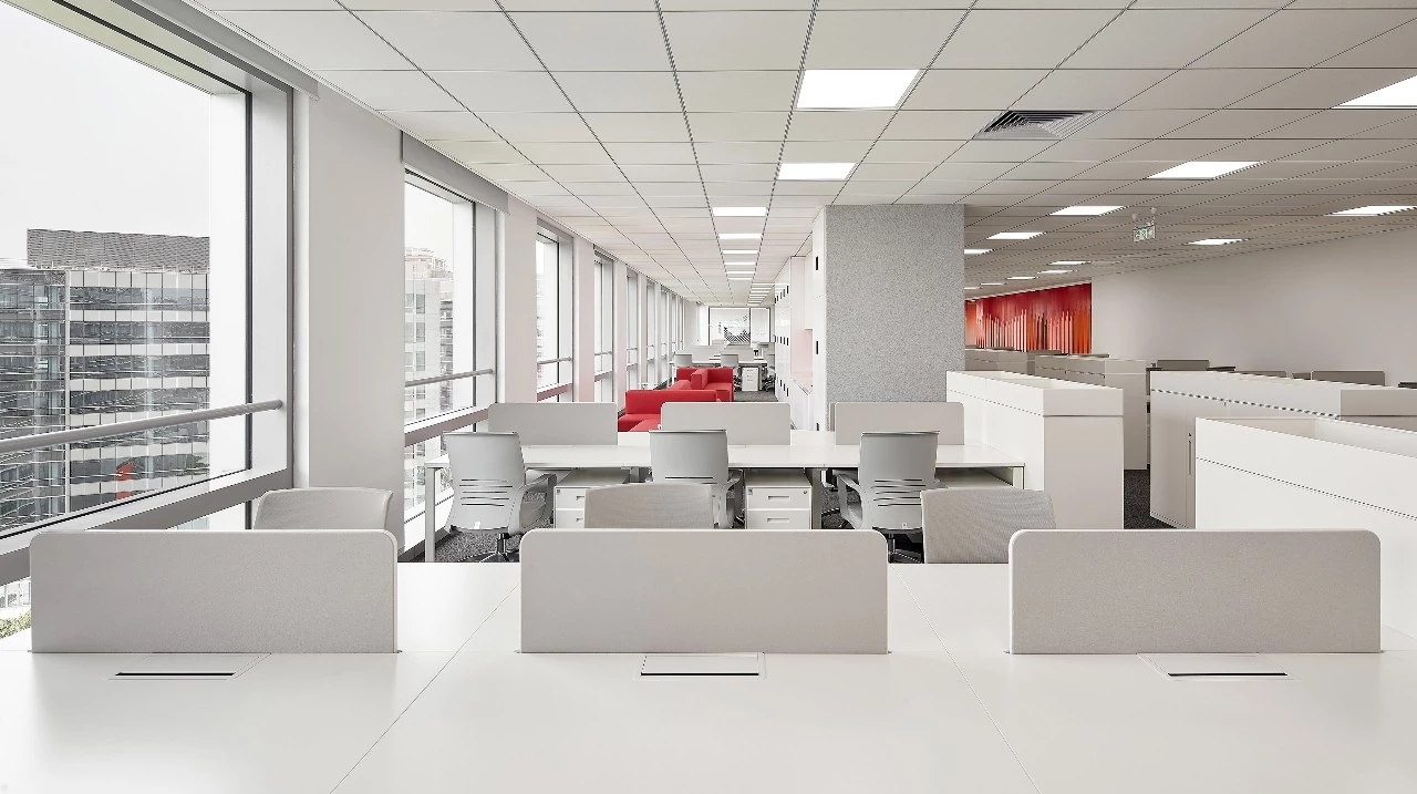 建筑与自然之间的有趣的边界称之为灰空间,休闲用餐区正是这样的模糊边界空间。空间中心植入鲜活的绿植,以玻璃围合,浸染在虚实交错的绿植之中,瞬间多了一分跳脱活泼之美。此空间让员工舒适地思考、放松与创造,提升工作品质与员工对工作环境的满意度。