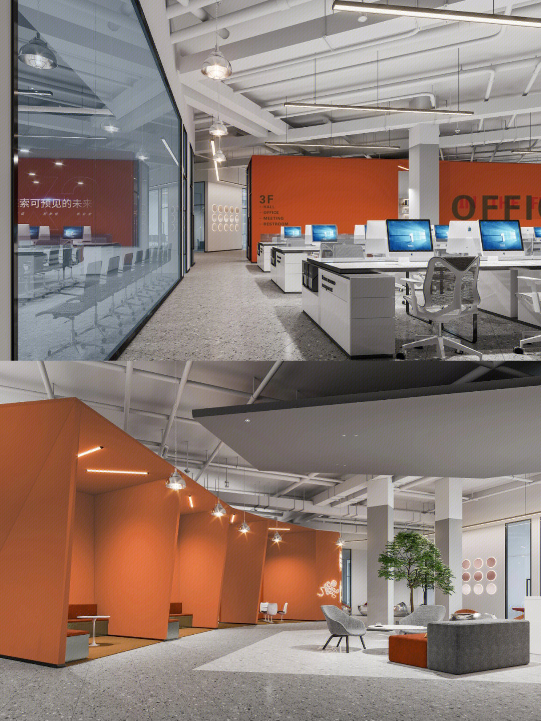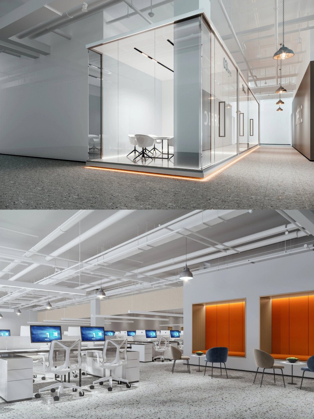 建筑的第三层专门服务于公司的创意团队,不同类型的会议室以及带有3D打印空间的工作室都是遵照相同的逻辑来设计。该楼层同时还包含管理层办公室、一个开放办公区和主会议室,其中主会议室采用了落地式玻璃墙,以张扬的姿态回应了该楼层5米的净空高度。