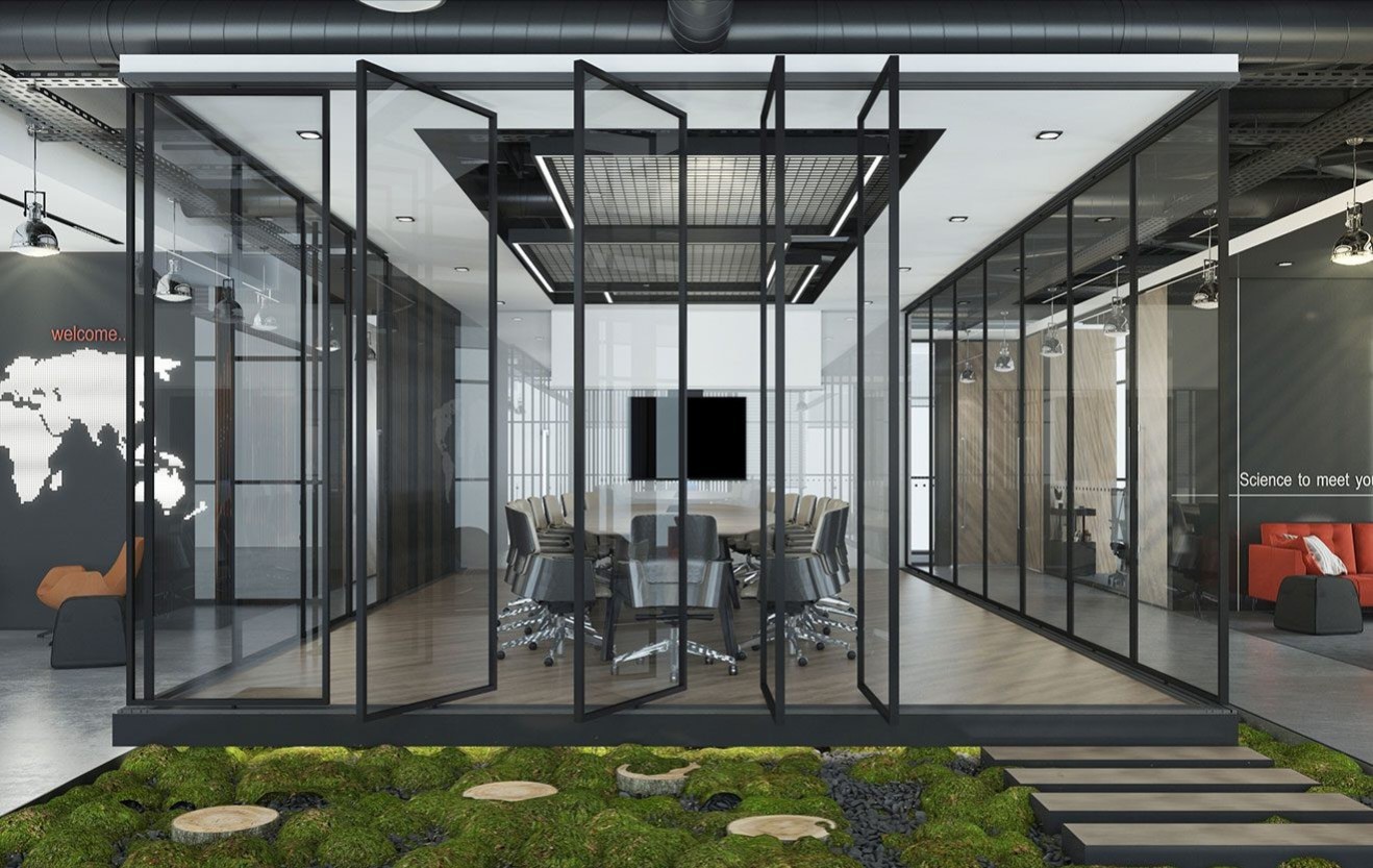 在这里,可听叠水潺潺,观树影婆娑,是瞬间能让心灵回归到大自然的幽静之所。围绕“海岛”四周,LED大屏展示区、沙发接待区等功能区依次展开。