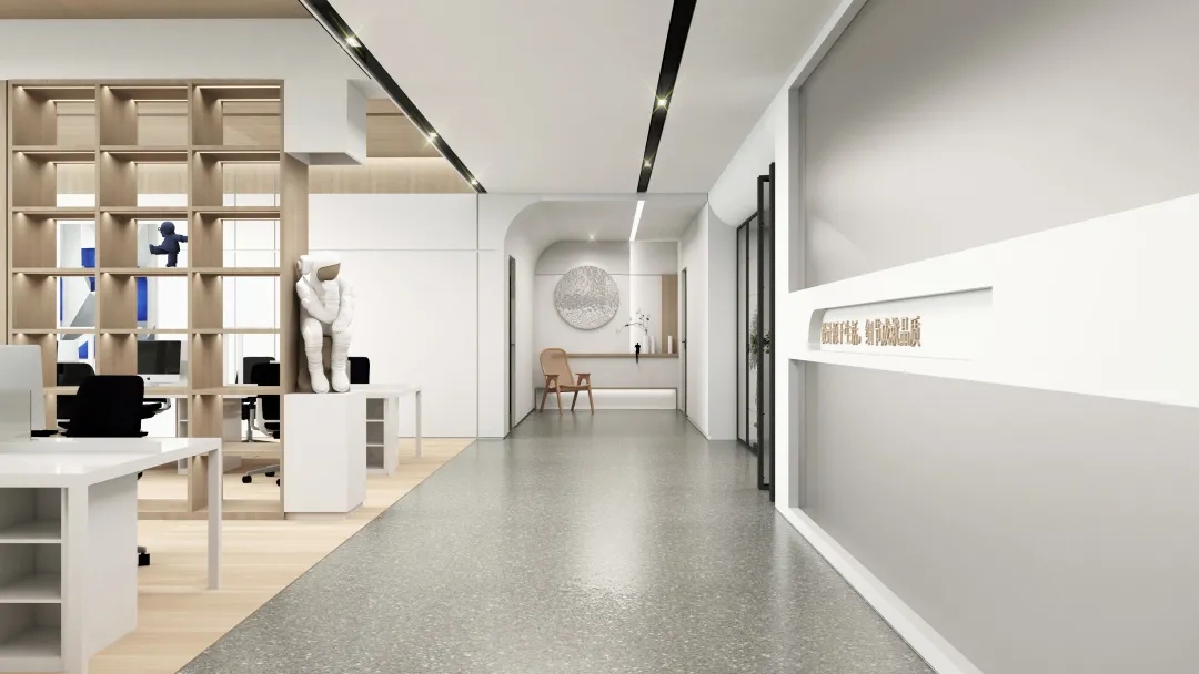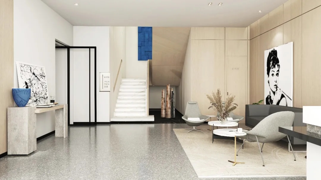 灰色水磨石,对立而统一打破边界,探知未来开放自由的动线布局赋予空间“生长”性打破刻板拘束的工作环境实现更具想象力与生命活力的留白空间