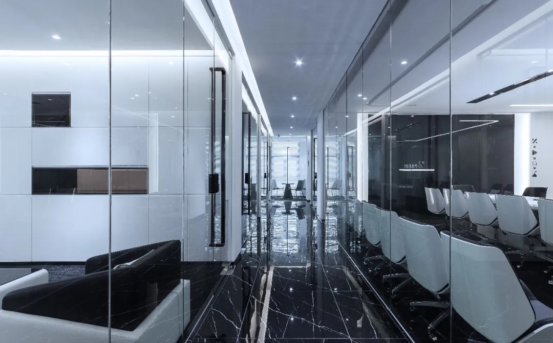 灰度玻璃盒子半透的方式,让置身其中的人奇妙的拥有了一层保护色。而品质感极优的玻璃,赋予绝佳使用体验感,以莫名提升协作的磁场默契。