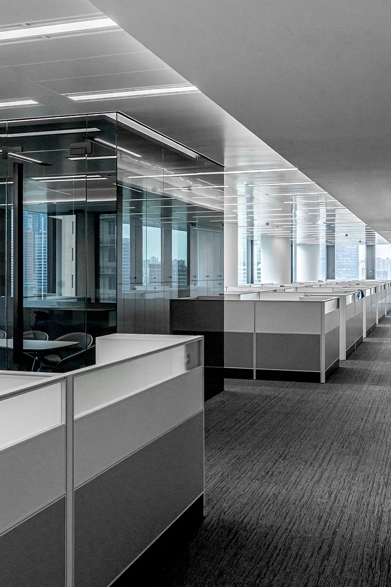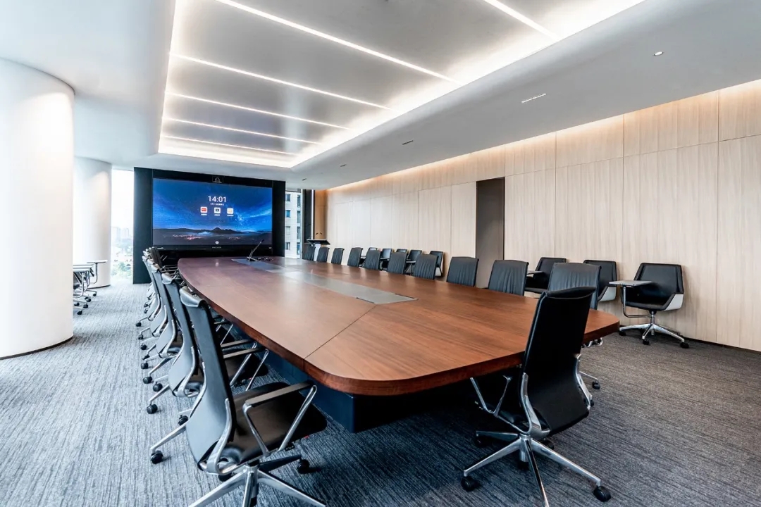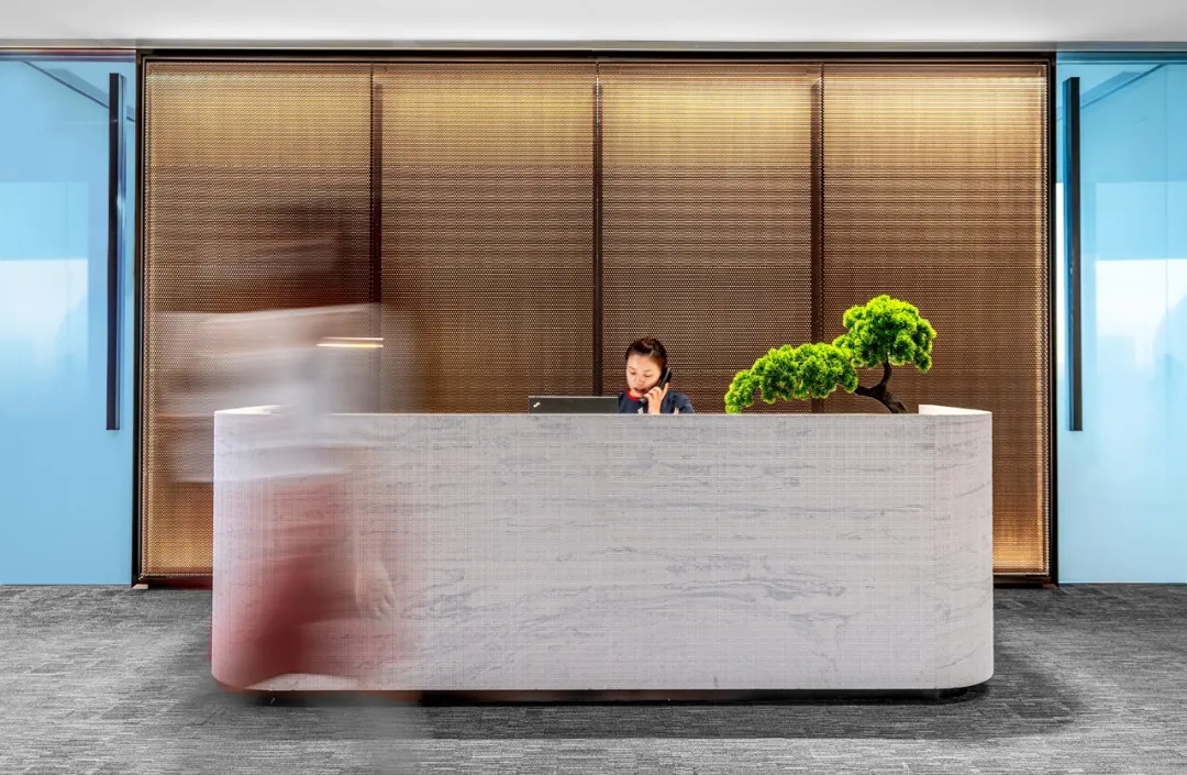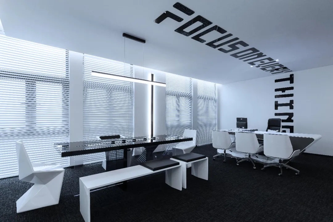 专注控股的核心目标是为公司及其工作人员打造一个既振奋人心,又彰显企业在专业领域地位的办公空间。前台造型以半椭圆截面,构造无棱,弧曲圆浑之势,将动感的“流线”引入静止的空间,墙面造型以简洁流畅的线条蔓延,一种无垠广阔的空间感悄然生发。用简洁的表现形式来满足人们对办公空间环境感性的、本能的和理性的需求,将空间构成与灯光应用相互结合,极简的设计语言和家具所营造的氛围,打造出一个具有个性又内敛的办公环境。