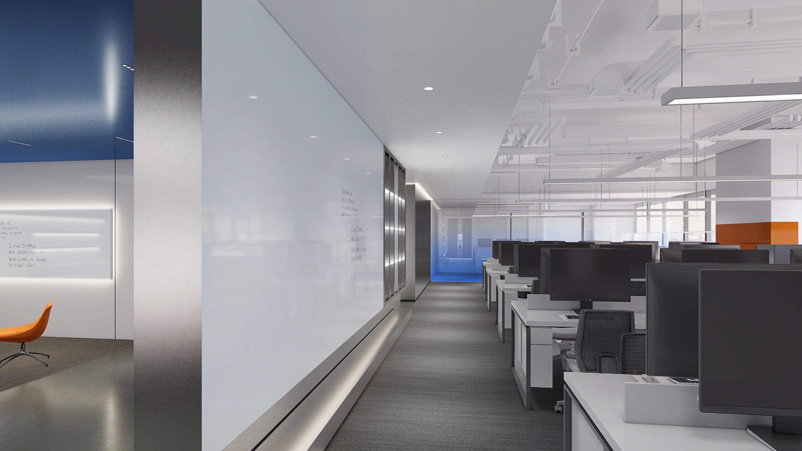 科技活力是现代办公楼的重要发展趋势,结合网络技术与数字化功能的发展,合理布局空间平面,延展属于客户自己的工作赋能空间。主要从“艺术”、“创意”、“文化交流”表达“多元”、“时尚”、“科技”的办公体验,灵活的开放空间和精心设计的照明系统使这个空间不仅成为日常工作的场所,不仅满足了日常办公需求,也成为一种崭新的空间艺术体验,引领着未来办公空间的潮流方向。