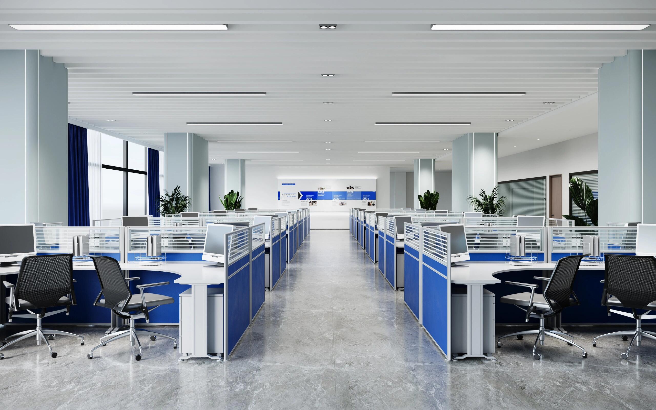 空间抽取网络光纤元素,配合建筑多层分割的手法,使用代表网络的蓝色调性以及代表科技的金属铝板为空间主要构成点,规整而富有层次感的空间规划,营造一个科技,年强又具有时尚感的空间环境。融入企业理念和价值观,体现企业的高新属性。