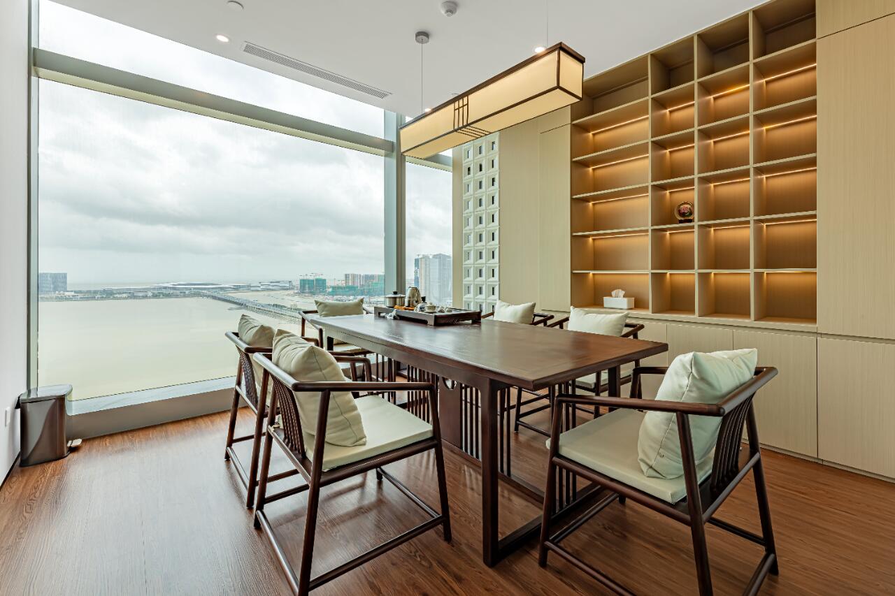 纯净的白色大理石纹理,丝丝生动的斜纹覆盖其上,搭配立体灯光设计,赋予大厅“艺术展厅”般的格调。