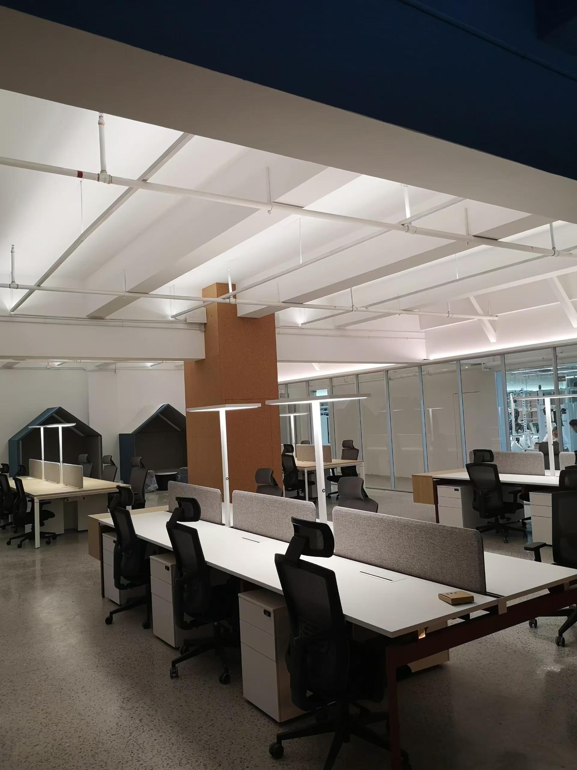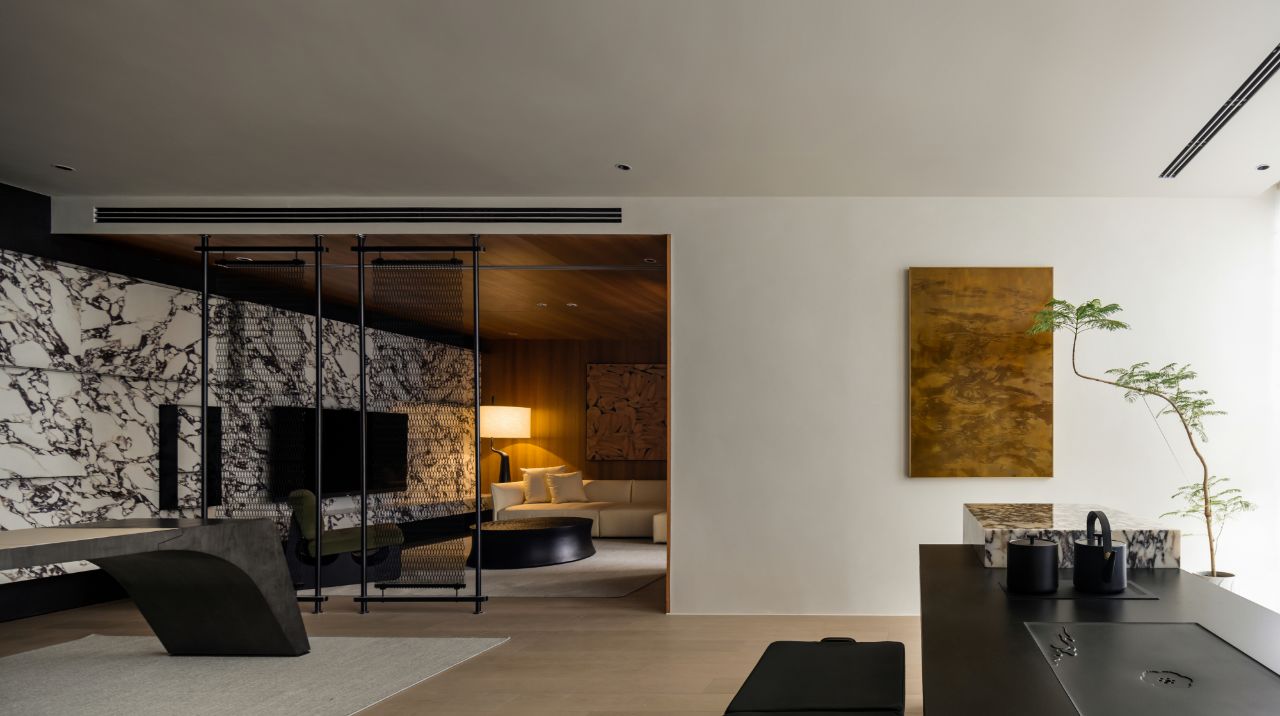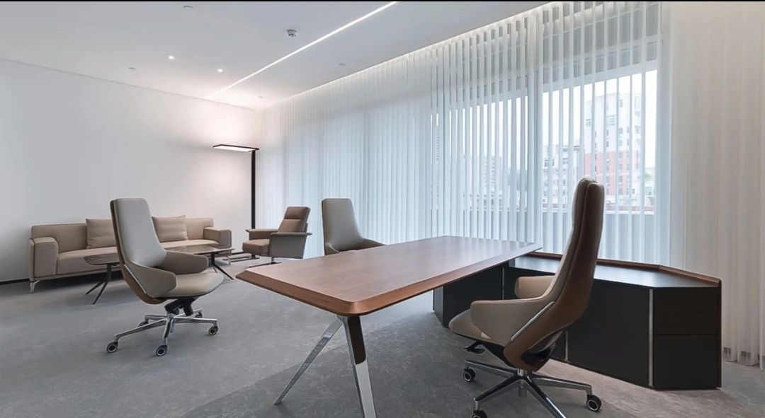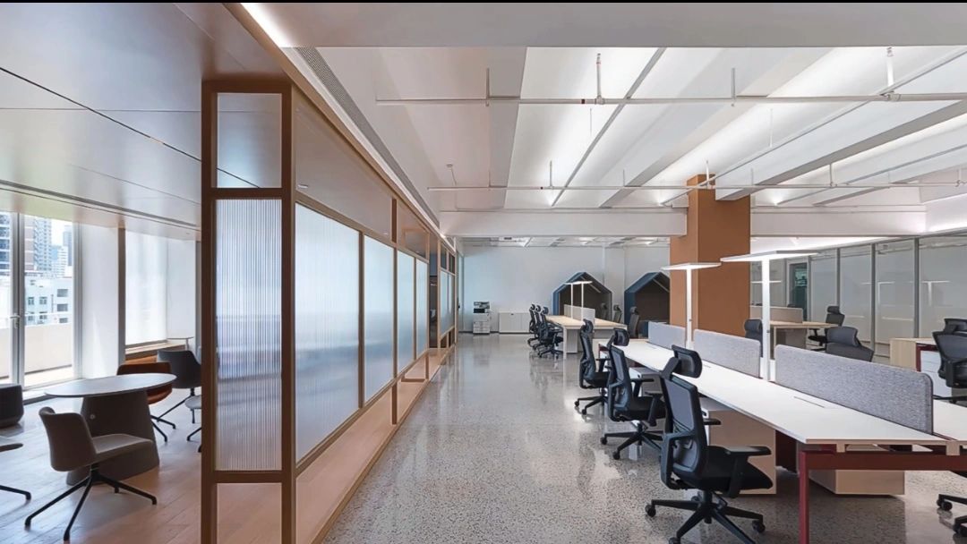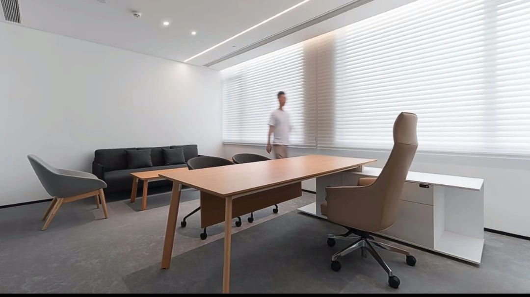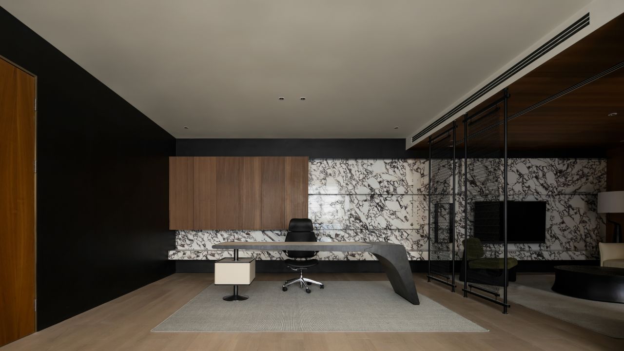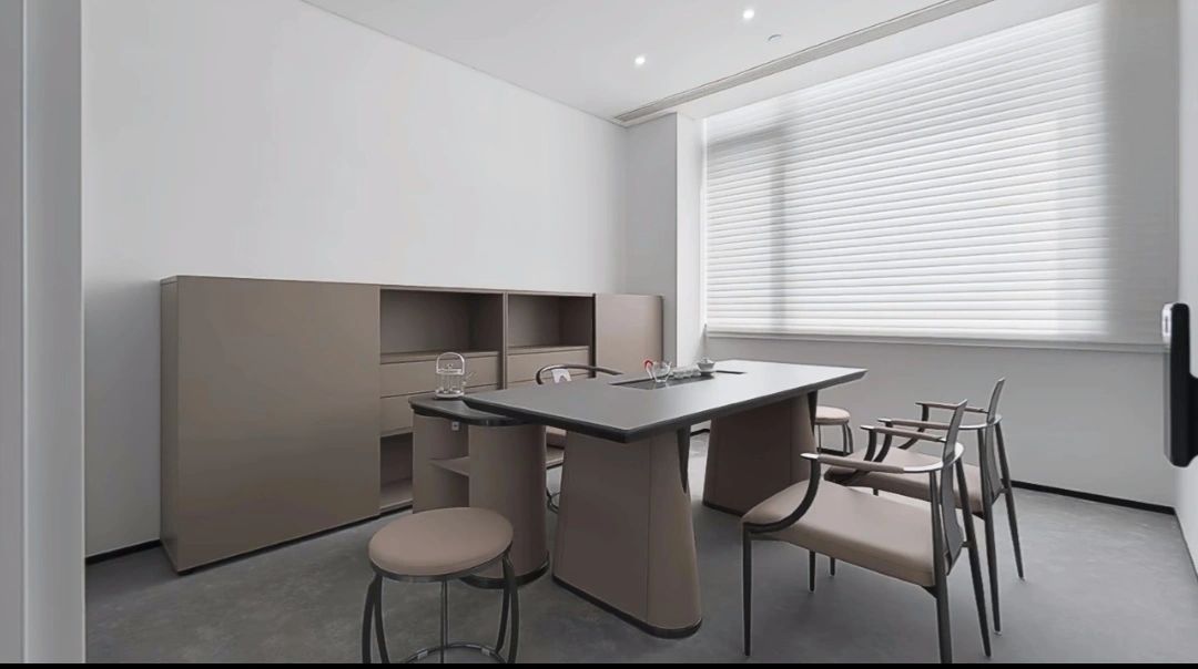 空间整体采用现代简约的装饰风格,以明快的灰白调为主。选用了大量石材、原木等天然元素,与玻璃、金属等材料相结合,同时根据空间功能,辅以红、橙、黄等色彩与植物,为空间注入生机和活力。办公空间兼顾通透性与实用性,将律师的工作场景与现代都市生活有机融合。会议接待层主要展现了企业形象,印制在接待前台大理石上的印章,系著名书法篆刻家作品,于无声中传达出一份富有温度的信任,一份沉甸甸的责任与承诺于方寸之间,讲述着企业的理念,法治兴邦,知行于信,大道向阳。该楼层设置有大小不一、功能多样的会议室,可以满足多样化的工作场景与使用需求。头脑风暴室,配置了富有创意的办公设施,构筑了一个流动交互、多模式的弹性空间。VIP会议室,家具及陈设典雅、考究,全方位匹配来访者的尊贵身份,并在私密性等方面具有十分严格的要求。董事会议室主要用于开展较高规格的双边会议及洽谈等场景。花园走廊是一处开放的自由交流空间,开敞与通透的布局,玻璃墙的应用,最大限度地增加了工作区和休息区的阳光洒入,窗边望去,可以看见上海传统的石库门里弄和摩登的现代建筑交汇融合。在花园长廊末端,是一间讲述着东方美学的茶室,人们在这里品茗、论道。在接待吧台与等候区,营造了一处具有温度的空间,来宾可以于繁忙的工作中感受那一缕独属的阳光。等候区的另外一侧,是四合一多功能培训室,培训室的功能和大小可以由使用者自由定制。在封闭与开放之间,空间的使用变得灵动且高效。从三五个人的会议交流,到几十人的学习培训,再到上百人的论坛活动,都可以定制化开展。