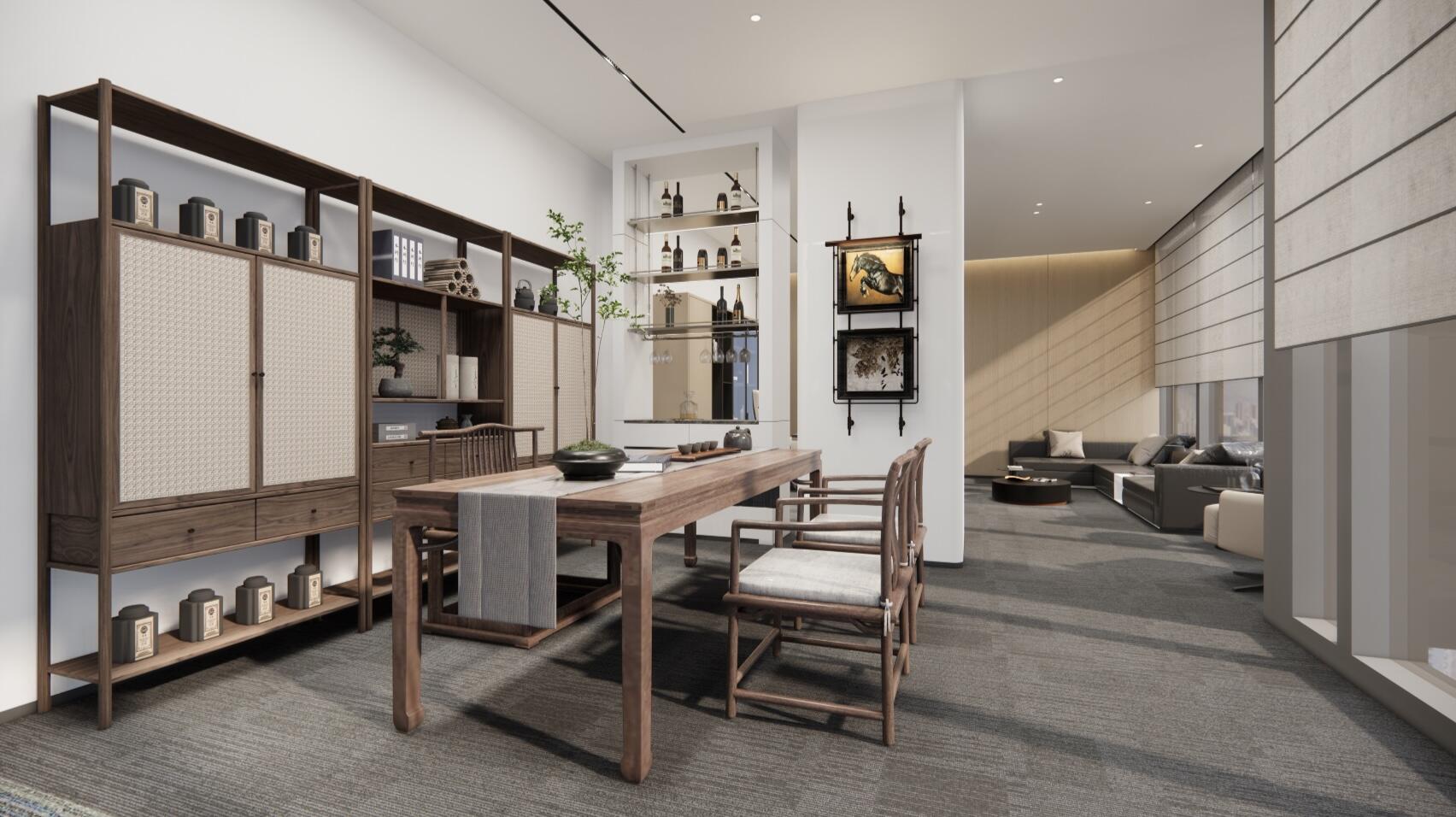 项目设计灵感来自“权衡”。权衡取其平,平者乃公道之谓也。称重量的器物,名曰衡器,衡为杆,权为砣。黑色条形石材台如秤杆横跨接待区,连接Logo墙。前台绿大理石象征石权。石权,俗称秤砣,是古代讼师追求法治公正的标志。方格天花造型,漫反射灯光均匀而和谐。整体设计体现空间的正气和秩序感。