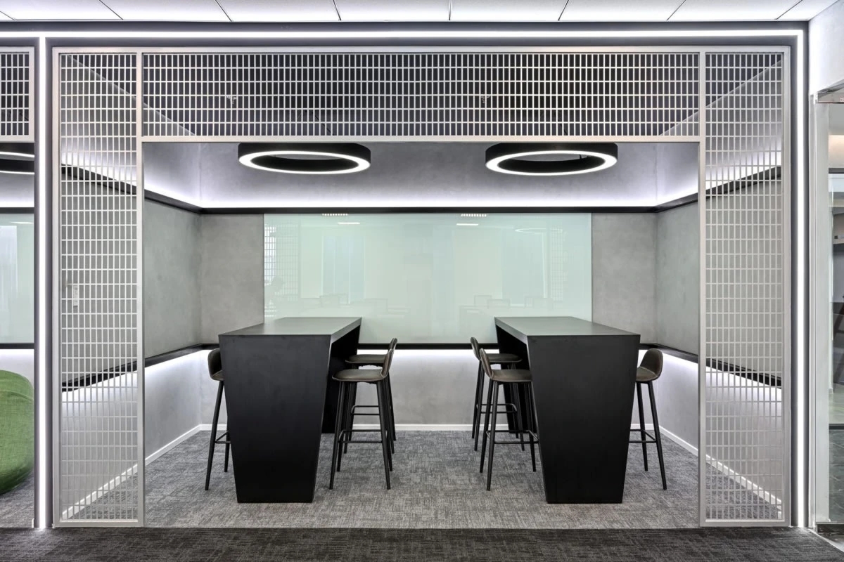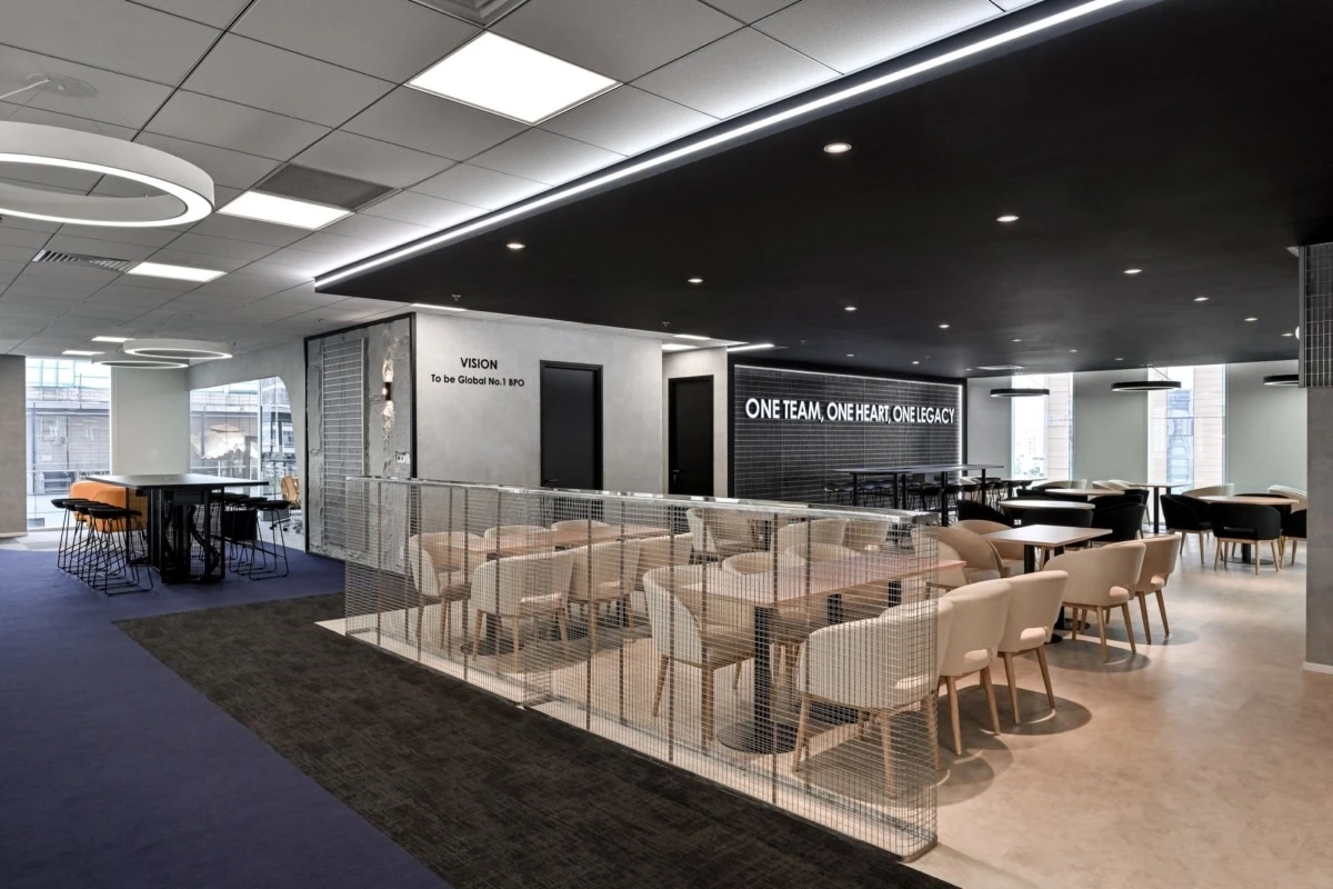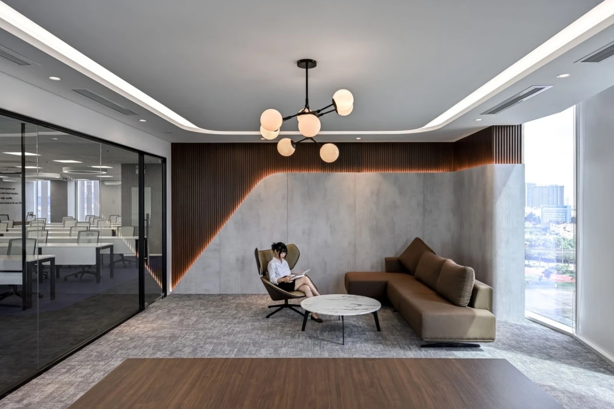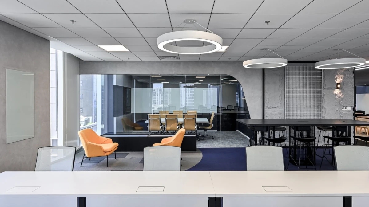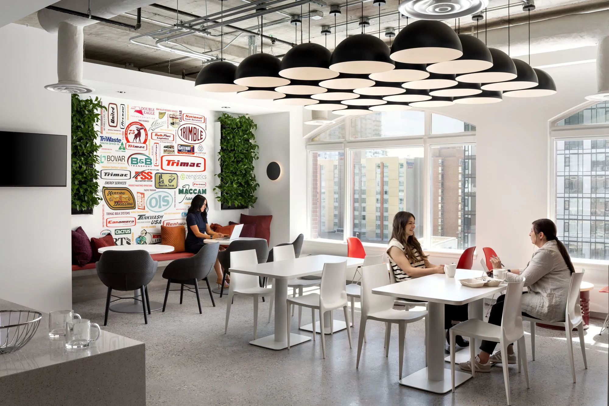 该项目包括将三层楼的办公空间整合为 14,000 平方英尺,利用现有家具,同时强调 Trimac 的品牌和文化。新空间的设计旨在促进创新、协作和灵活性,采用了各种设置,如宴会座椅、分层座椅和非正式小桌。每个区域都配备了内置电源和数据点,使整个办公室都能实现无缝工作。
