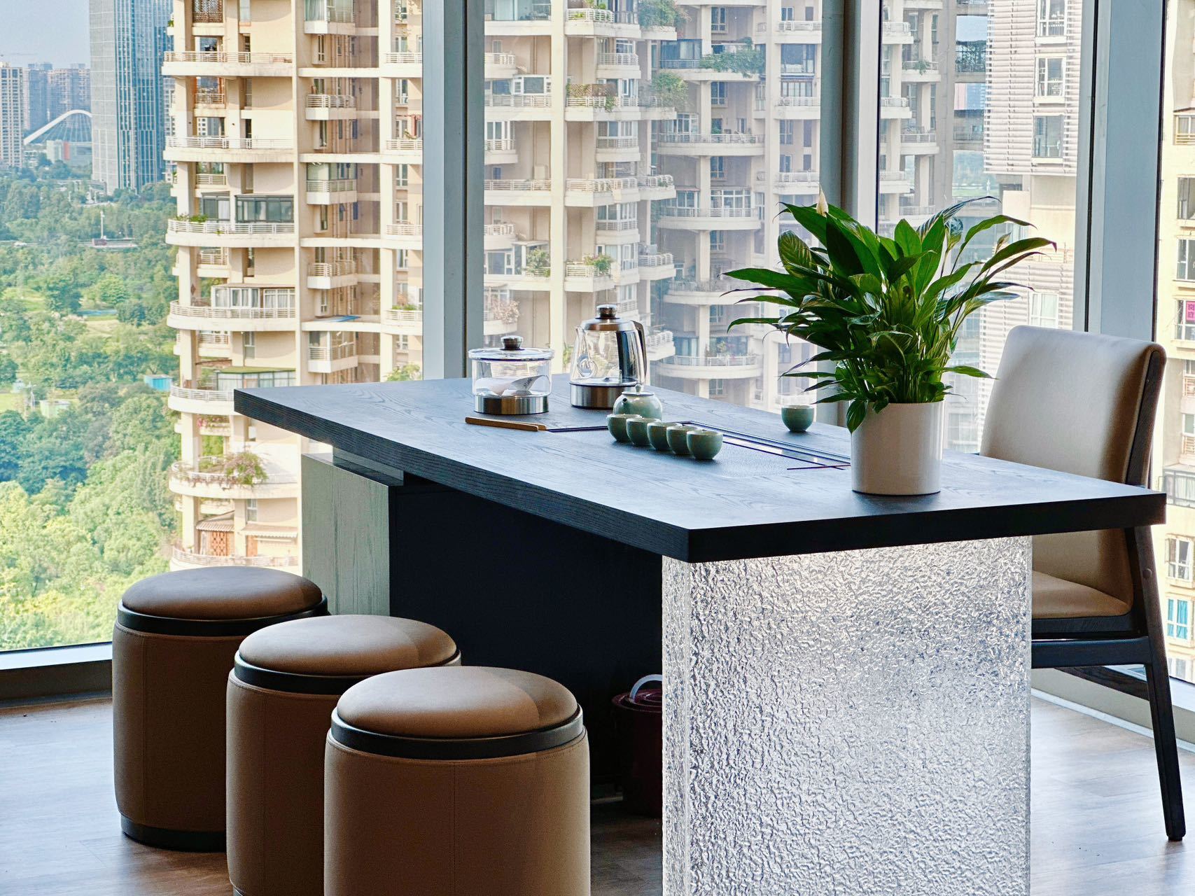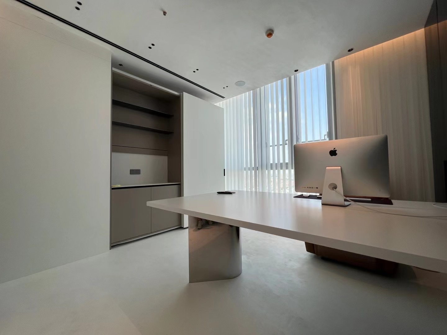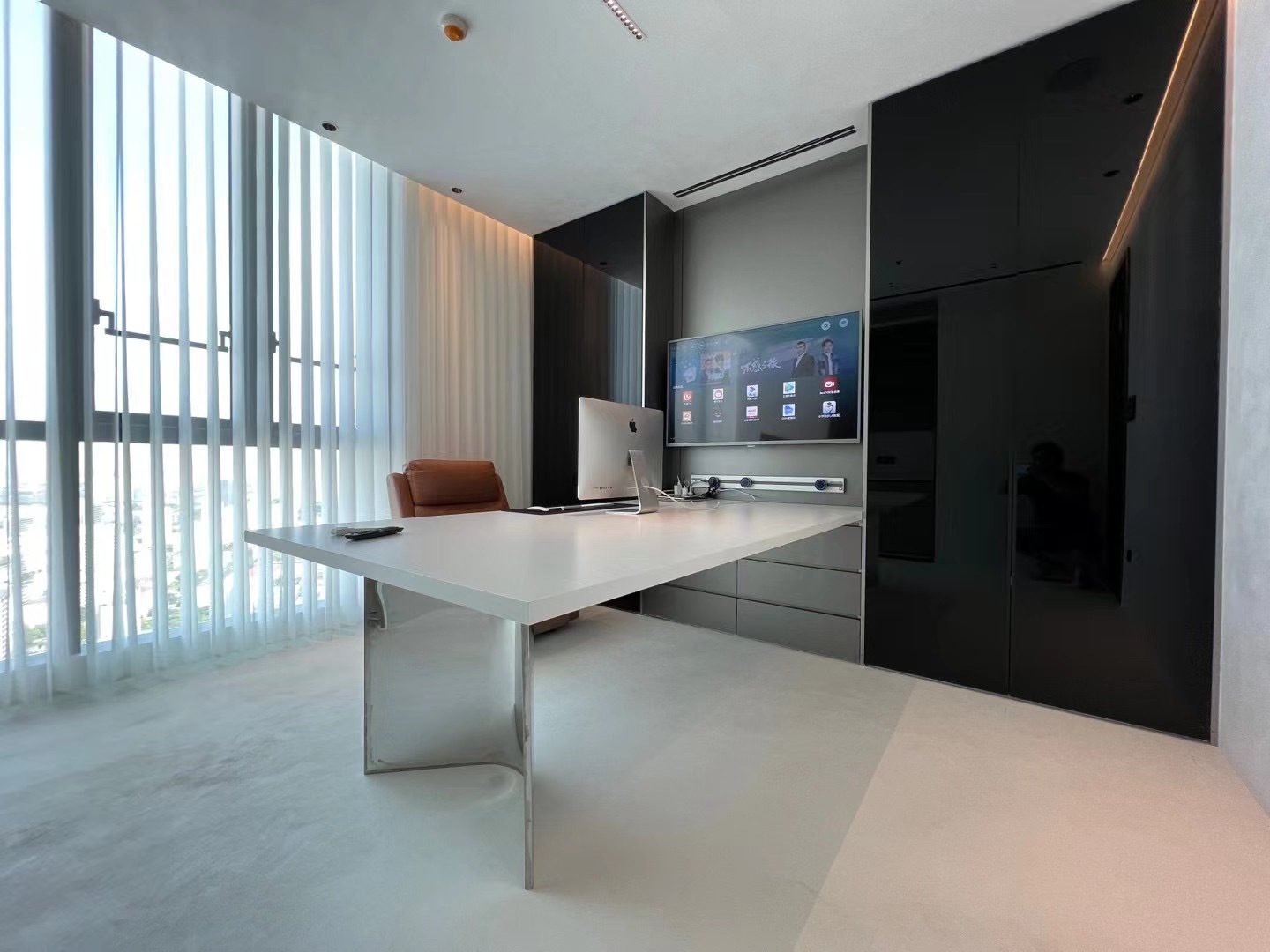 接待区的中心,是一个引人注目的面形接待台。这个接待台本身就是一个建筑宣言,其大胆的几何形状与光影交织,形成了一幅动人的画面。桌子的线条干净利落,与空间的无缝融合,体现了整体设计理念中的精确与克制。游客在这里不仅能够感受到公司的热情与专业,更能深刻体会到建筑设计的魅力与力量。一楼除了接待区外,还为行政办公室提供了更加私人和亲密的体验。这些办公室以精心制作的内饰为特色,优先考虑豪华与功能的完美结合。在这里,设计呈现出更加安静、更加精致的色调,柔和的照明、优雅的家具和高品质的饰面共同营造出一种宁静而高雅的工作氛围。从公共到私人的过渡在这里是无缝的,但开放性和物质性始终保持不变,确保了建筑语言的连续性,使得整个一楼空间既统一又富有层次感。