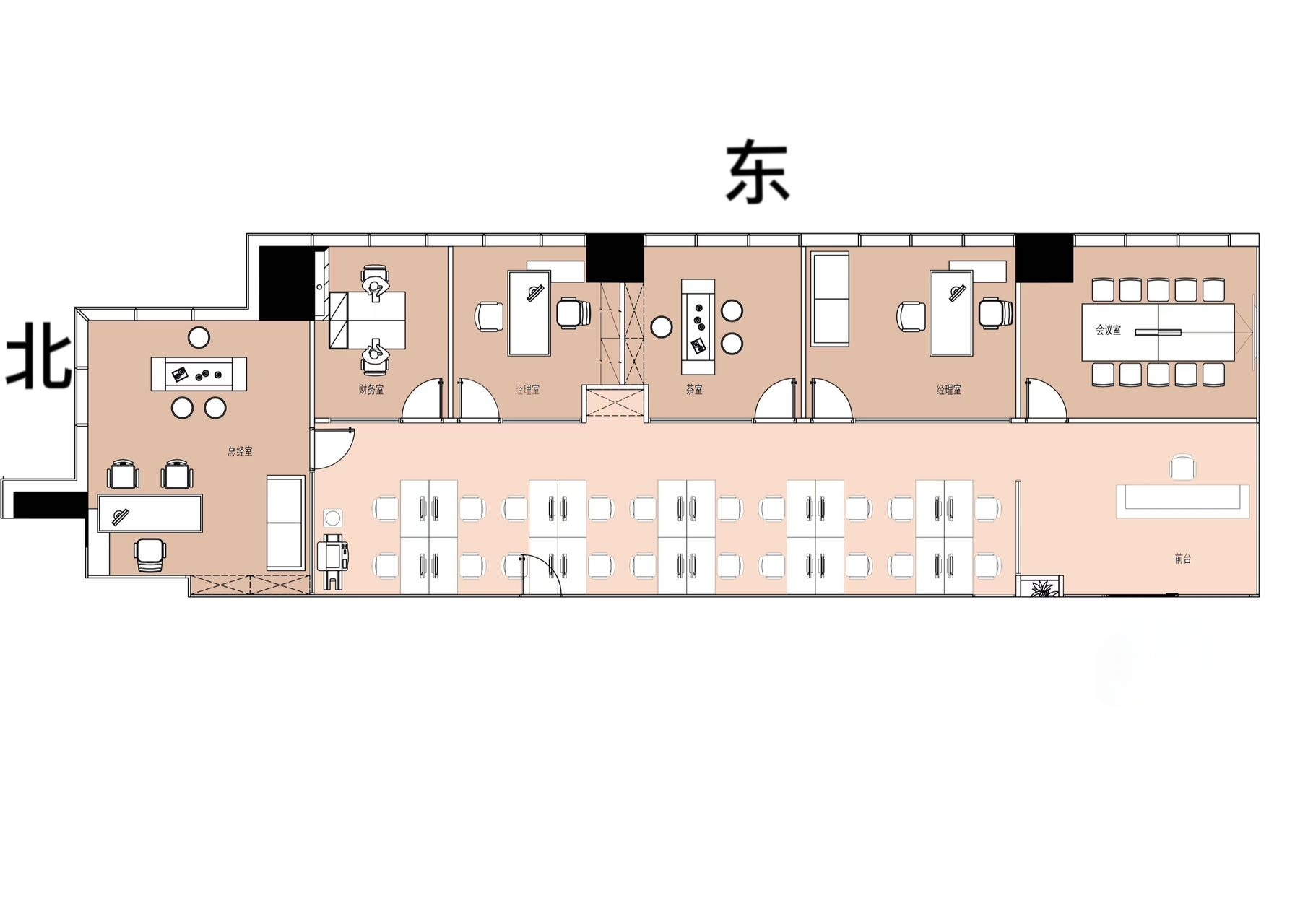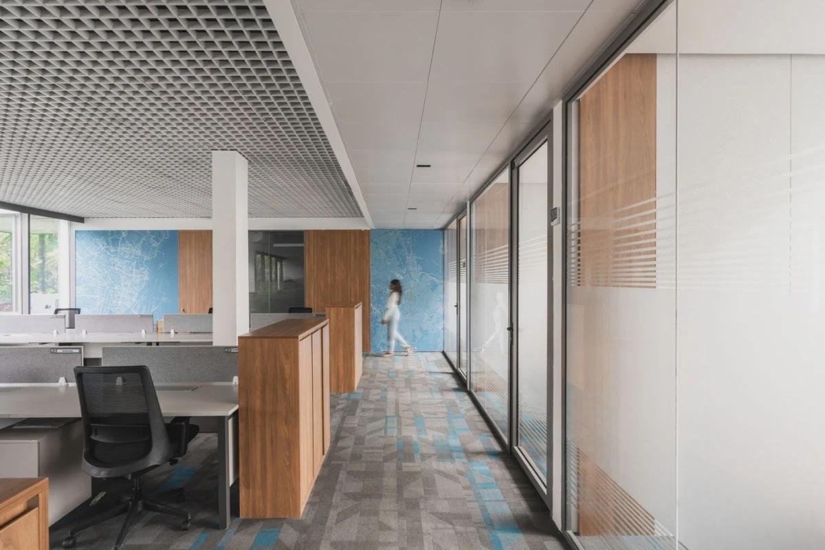 当步入二楼时,可以感受到设计风格的微妙变化。二楼主要负责后端操作,因此设计转向了更实用的方法。然而,这并不意味着对细节的承诺有所减少。相反,这里的工作空间依然保持着对材料和照明的同样关注,只是更加侧重于满足日常操作的效率和流动性需求。开放和协作的工作环境确保了团队成员之间的顺畅沟通与合作,同时最大限度地利用自然光,创造了一个充满活力的工作空间。这种设计不仅提高了工作效率,更让员工在忙碌的工作中也能感受到与周围环境的紧密联系。