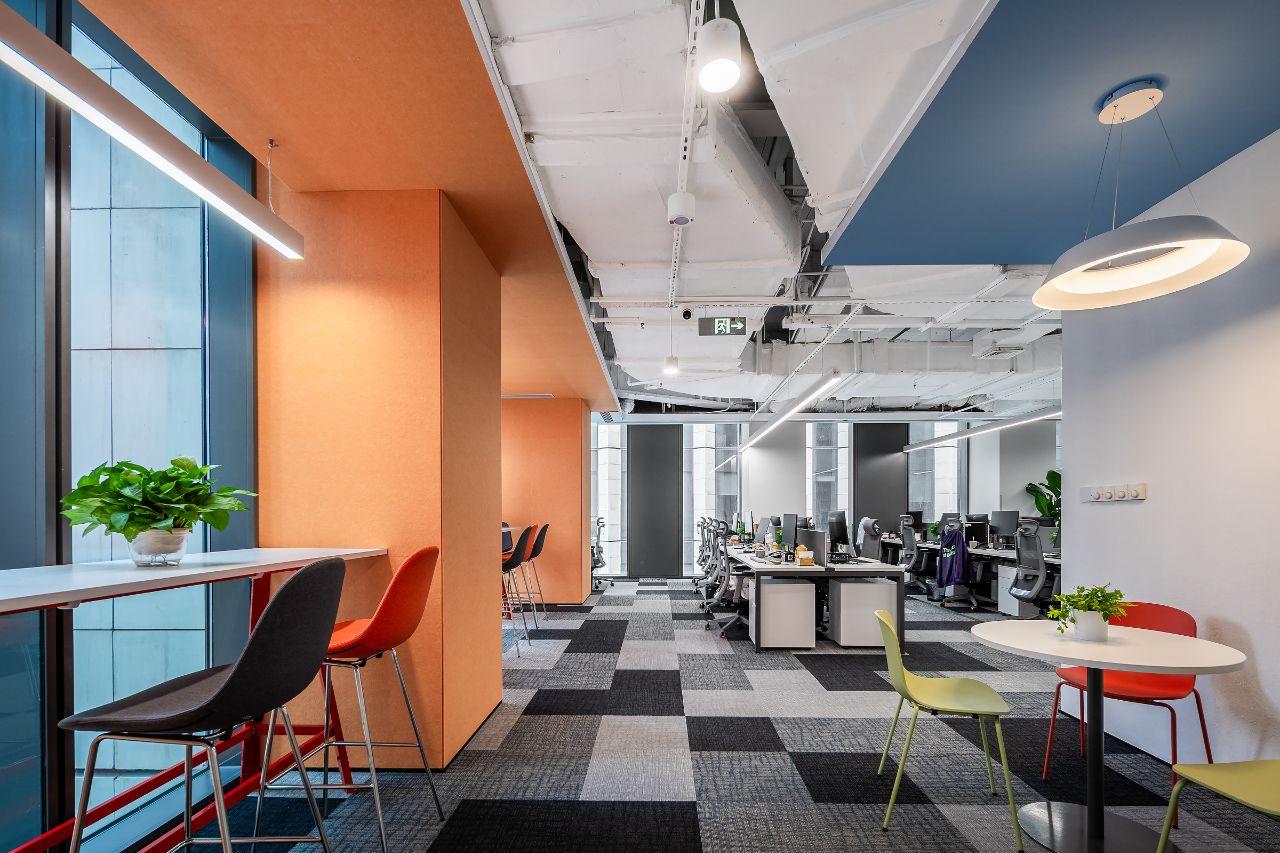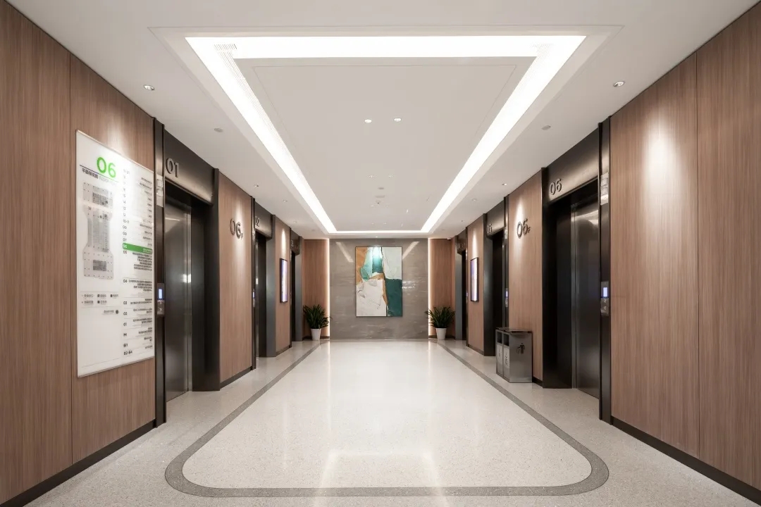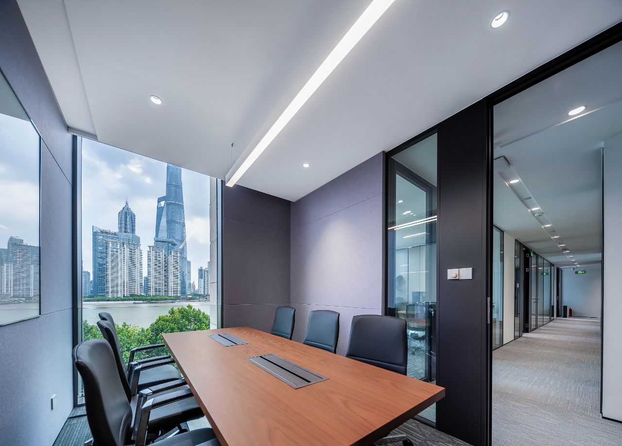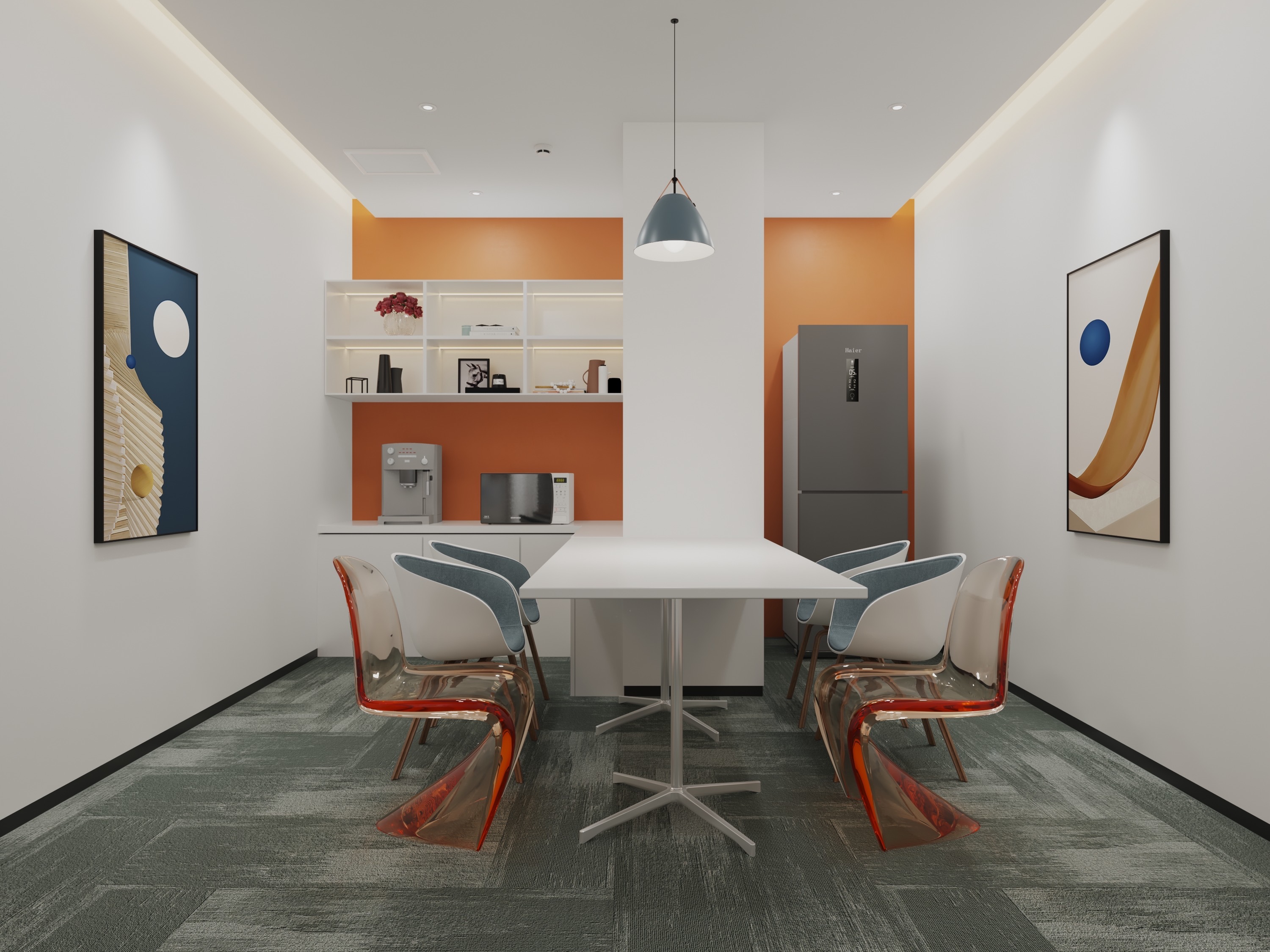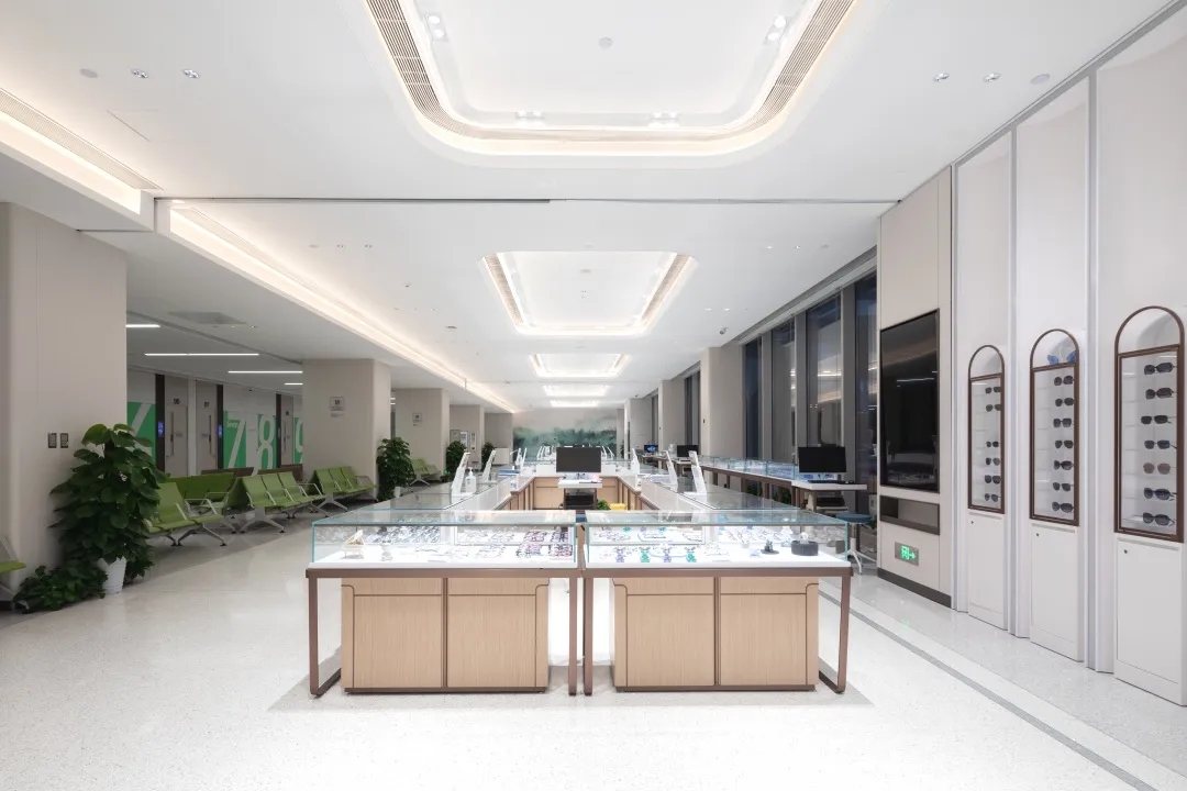 颠覆以往传统守旧的办公场所设计,从品牌理念与视觉设计到品牌体验空间的创建,打造国内眼科医疗领域的高阶办公地。从实用性与人性化角度出发,通过明亮的金属、轻盈的玻璃,带来多元空间体验,实现安全、高效、健康的办公环境,与简约大方、沉稳宁静的整体氛围。精心设计且具有视觉吸引力的大堂可以让人快速感知企业文化,直接影响着客户的第一印象,明亮宽阔的开放式办公区,便于交流沟通,面与面的隔开,保证一定的隐私性,融入绿灰色元素减少整个空间的压抑和枯燥,提高工作效率。大会议室前厅设有休闲区,在繁忙的工作之外能放松一下身心,劳逸结合,地毯使用绚丽的色彩来丰富整个休闲区域,增添活力。灯光多借助自然光,摆上舒适的沙发,简单的茶几,阳光穿过玻璃,无论是工作还是休息都会比较舒适惬意。大会议室注入了鲜明的活力,大面积线条感吊顶增加了氛围感,整铺地毯减少噪音,位置摆放具有结构性,方便出入也不显得拥挤。