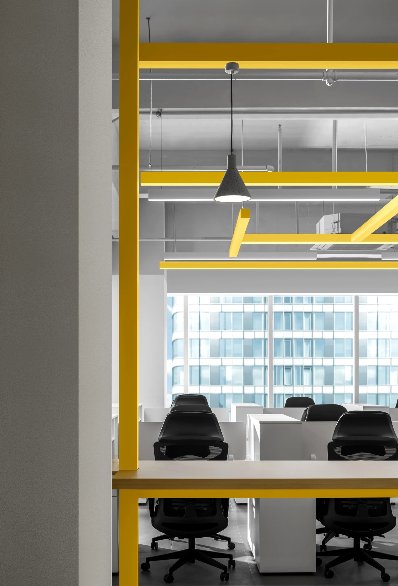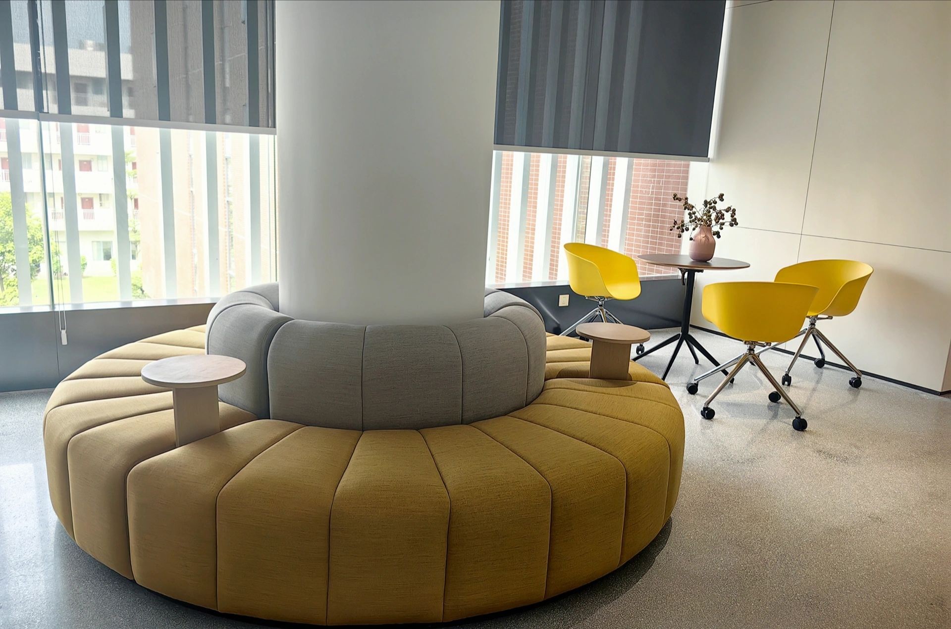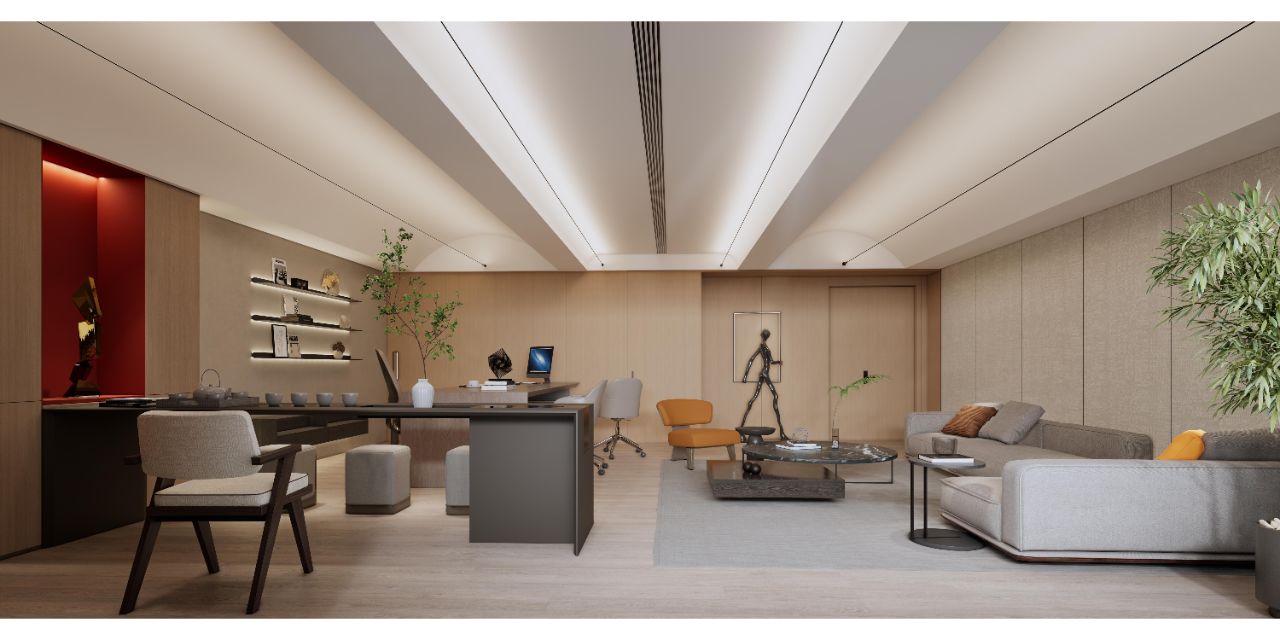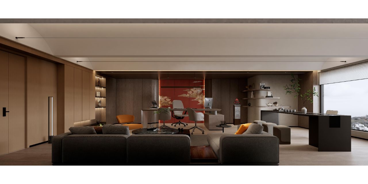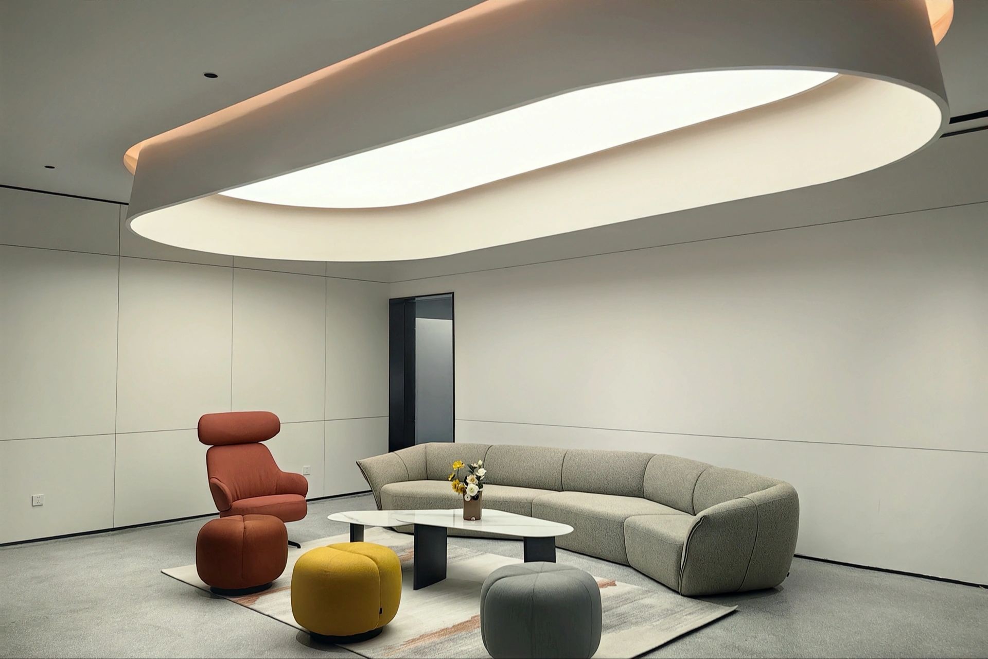 明黄的活泼、暖黄的温馨、中灰的沉稳,这三者在空间中交织共舞,如同从晨光到黄昏的自然过渡,赋予场所以时间的流动感和生命力。休闲区成为了一种生活态度的具象化,它不仅仅是色彩与形式的组合,而是一种情绪的延伸,一个让心灵得以释放的庇护所。