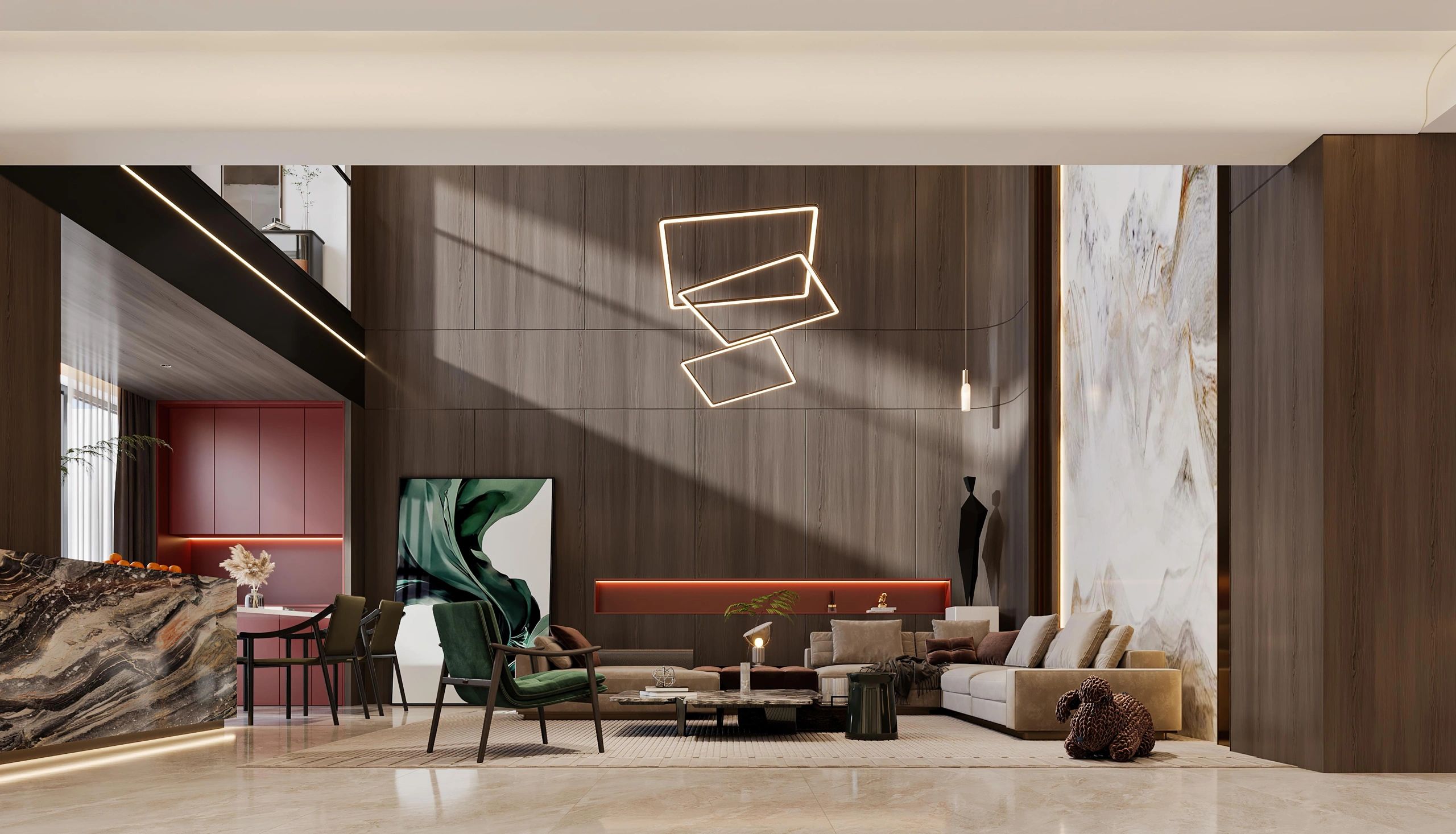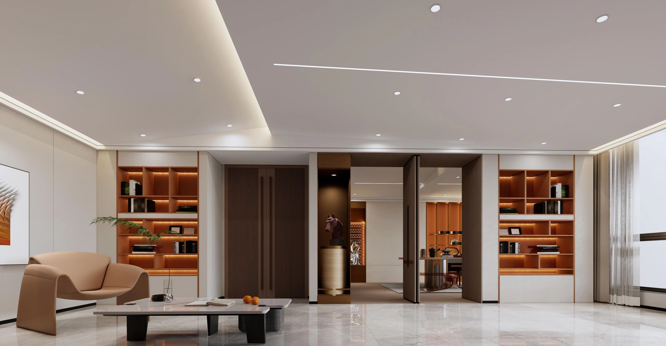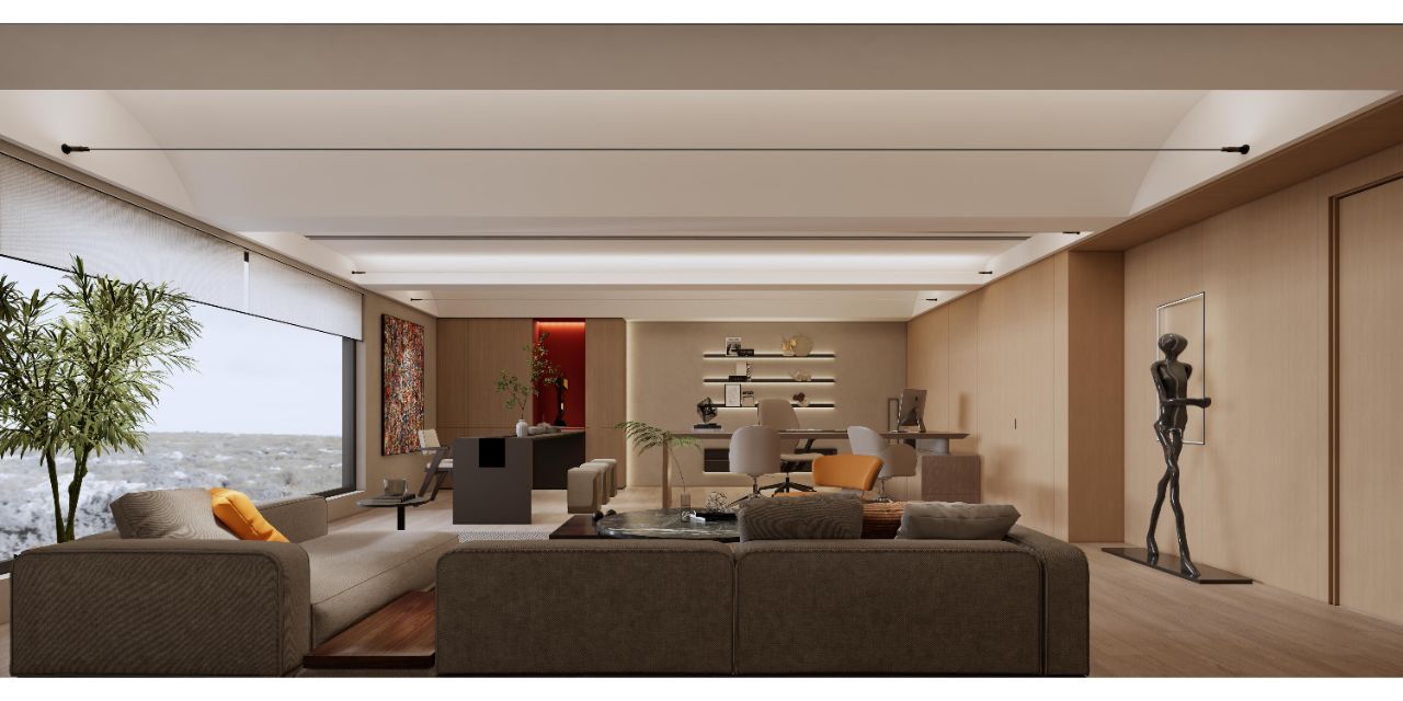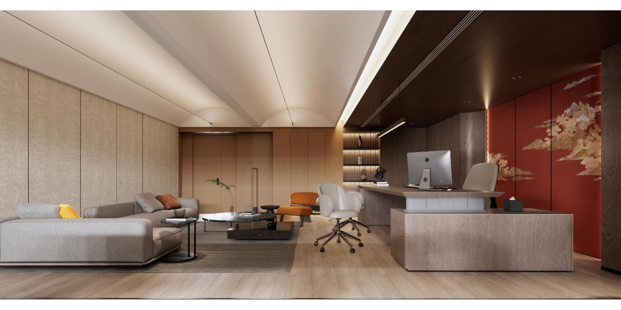 明黄的活泼、暖黄的温馨、中灰的沉稳,这三者在空间中交织共舞,如同从晨光到黄昏的自然过渡,赋予场所以时间的流动感和生命力。休闲区成为了一种生活态度的具象化,它不仅仅是色彩与形式的组合,而是一种情绪的延伸,一个让心灵得以释放的庇护所。