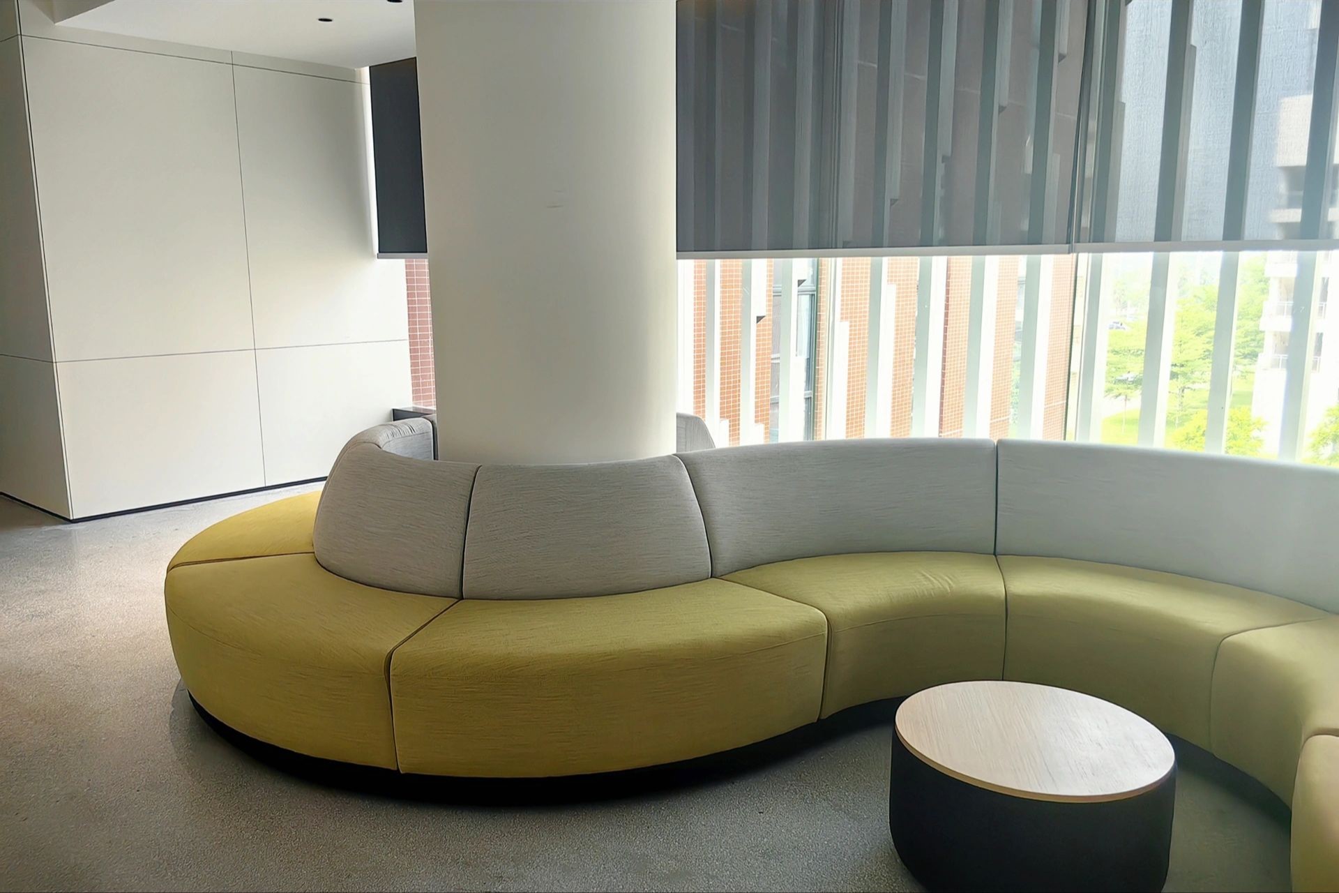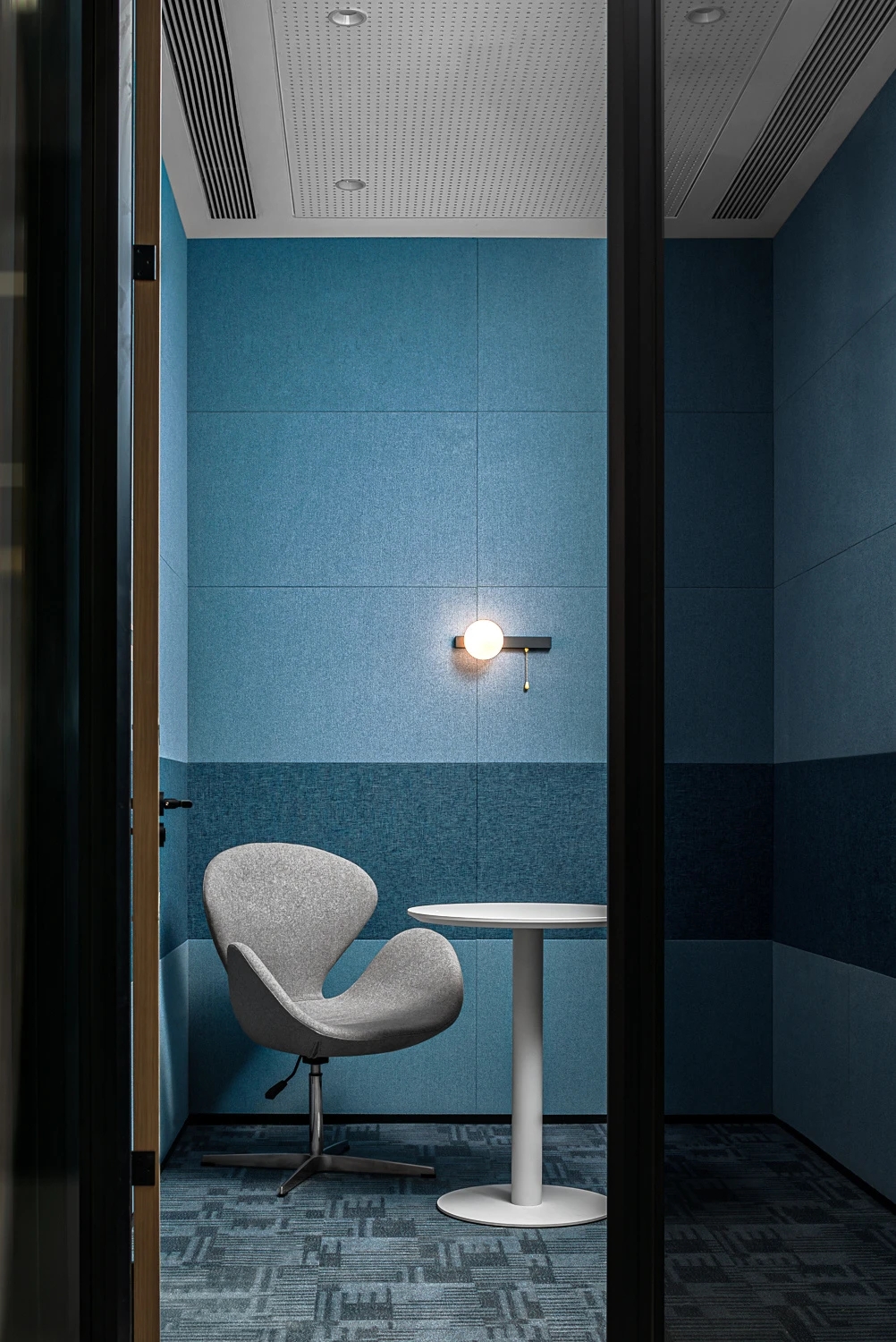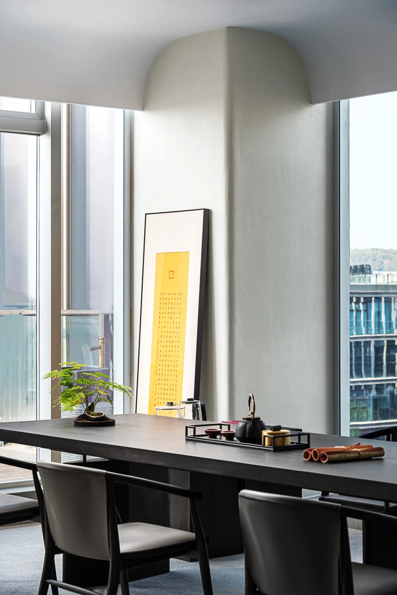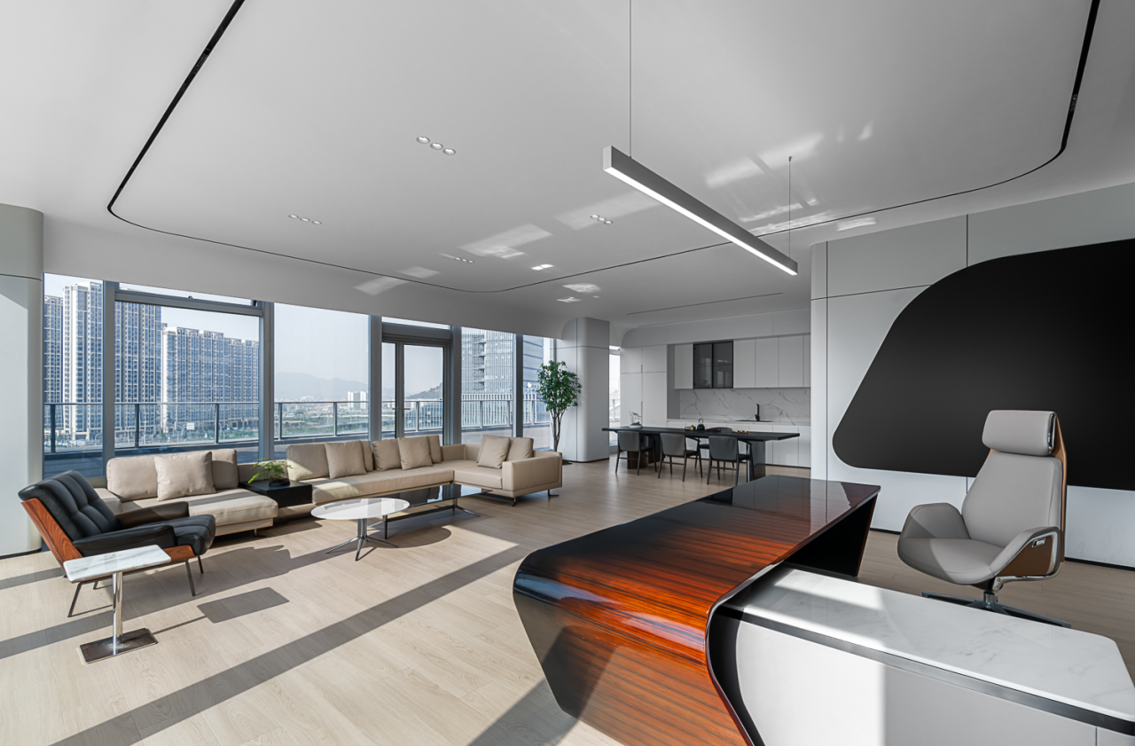 明黄的活泼、暖黄的温馨、中灰的沉稳,这三者在空间中交织共舞,如同从晨光到黄昏的自然过渡,赋予场所以时间的流动感和生命力。休闲区成为了一种生活态度的具象化,它不仅仅是色彩与形式的组合,而是一种情绪的延伸,一个让心灵得以释放的庇护所。