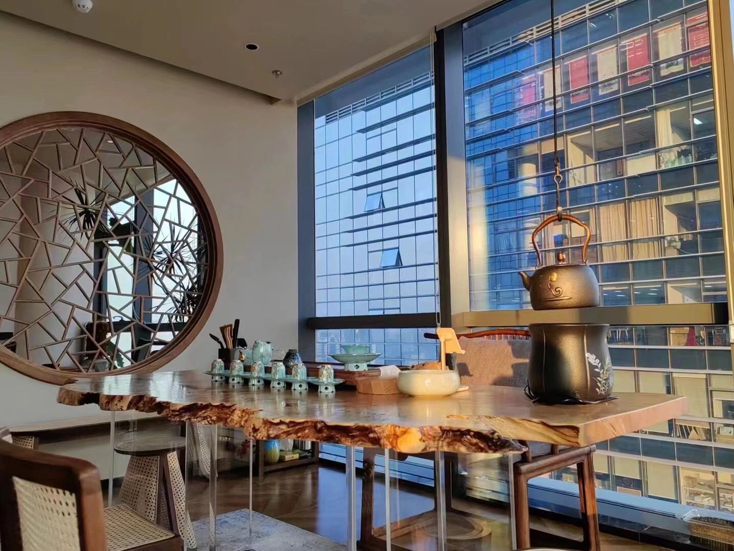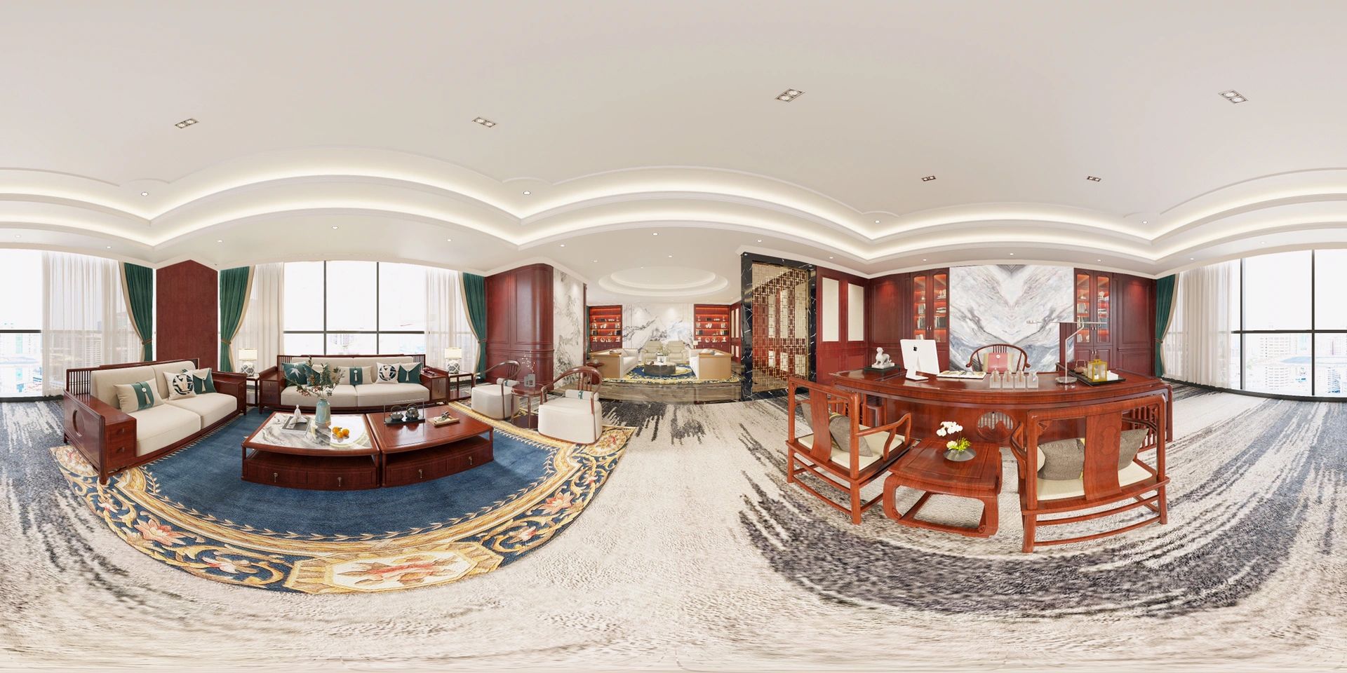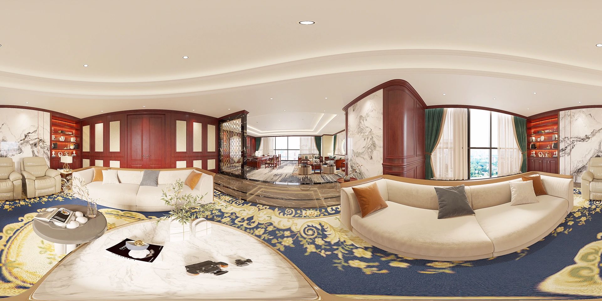 前厅的设计运用了弧形、充满张力的结构线条,将质感、通透、华贵的设计注入空间。大理石地面对应圆形的穹顶,让人仿佛置身天地之间,石材的肃静美妙与木纹的岁月生机之间保持了风格上的衔接,并以华贵的金属质感贯穿整个空间装饰设计,以流动的曲线连接起每个空间,又让每个空间有独特的亮点。