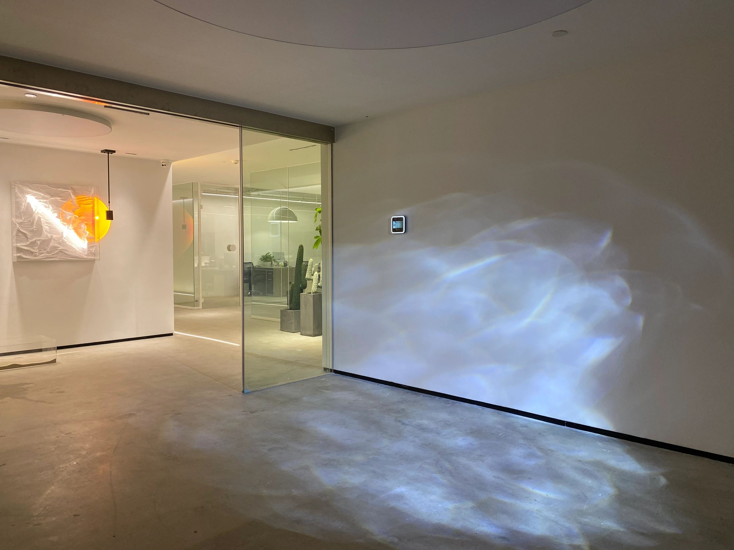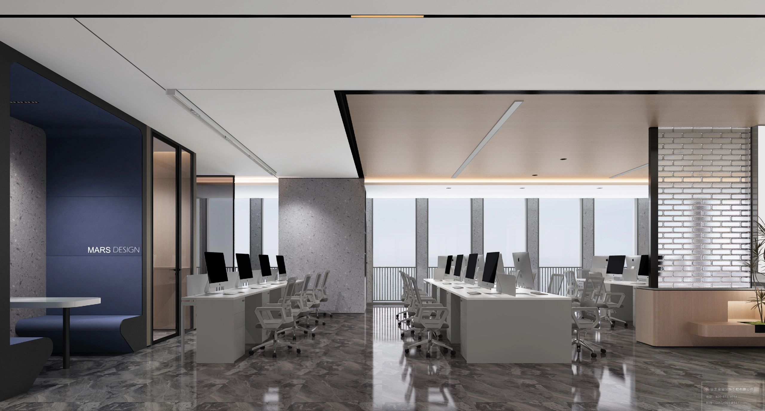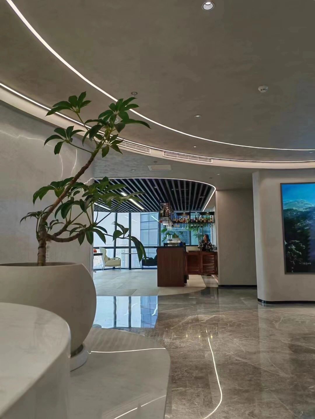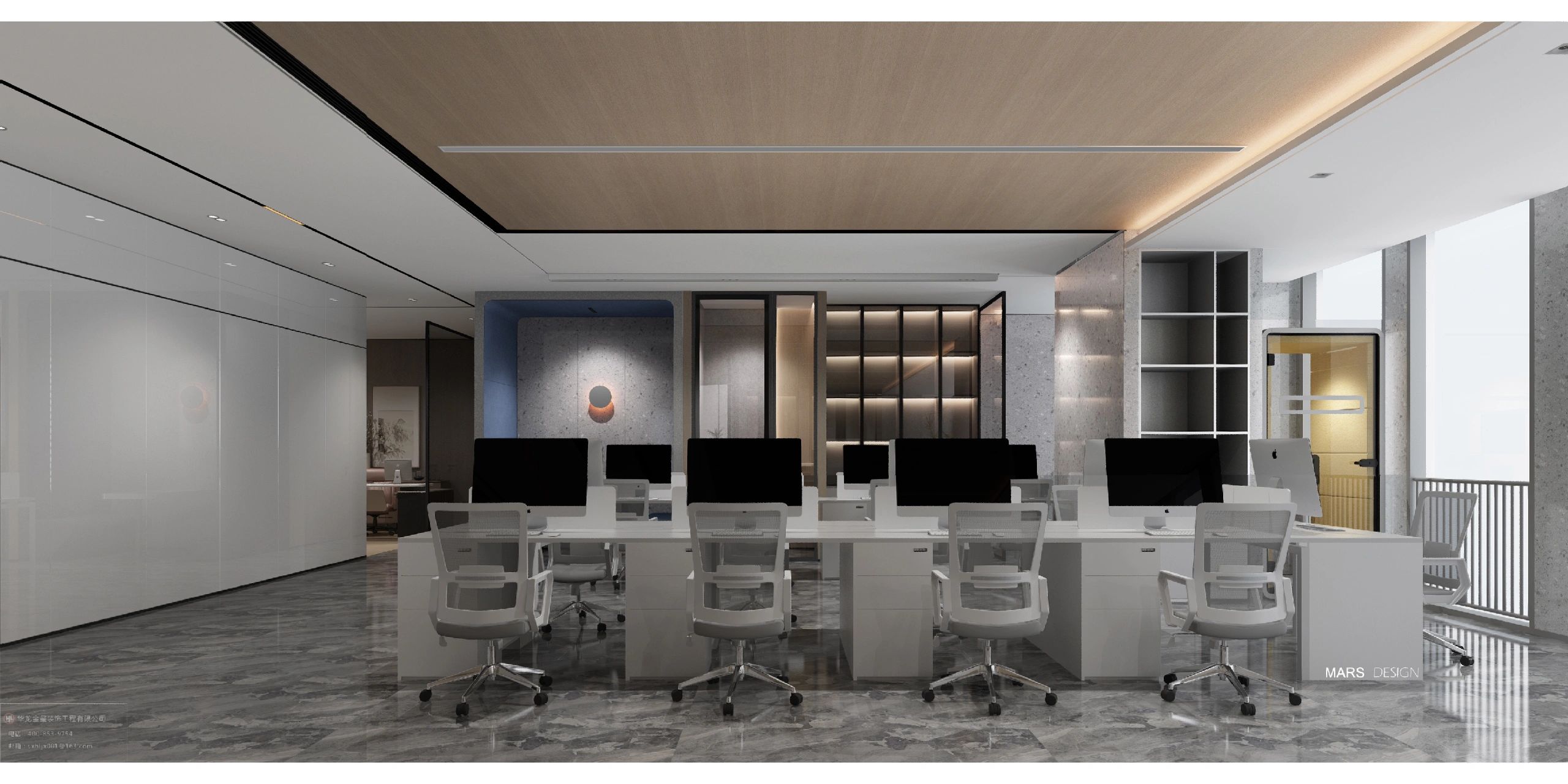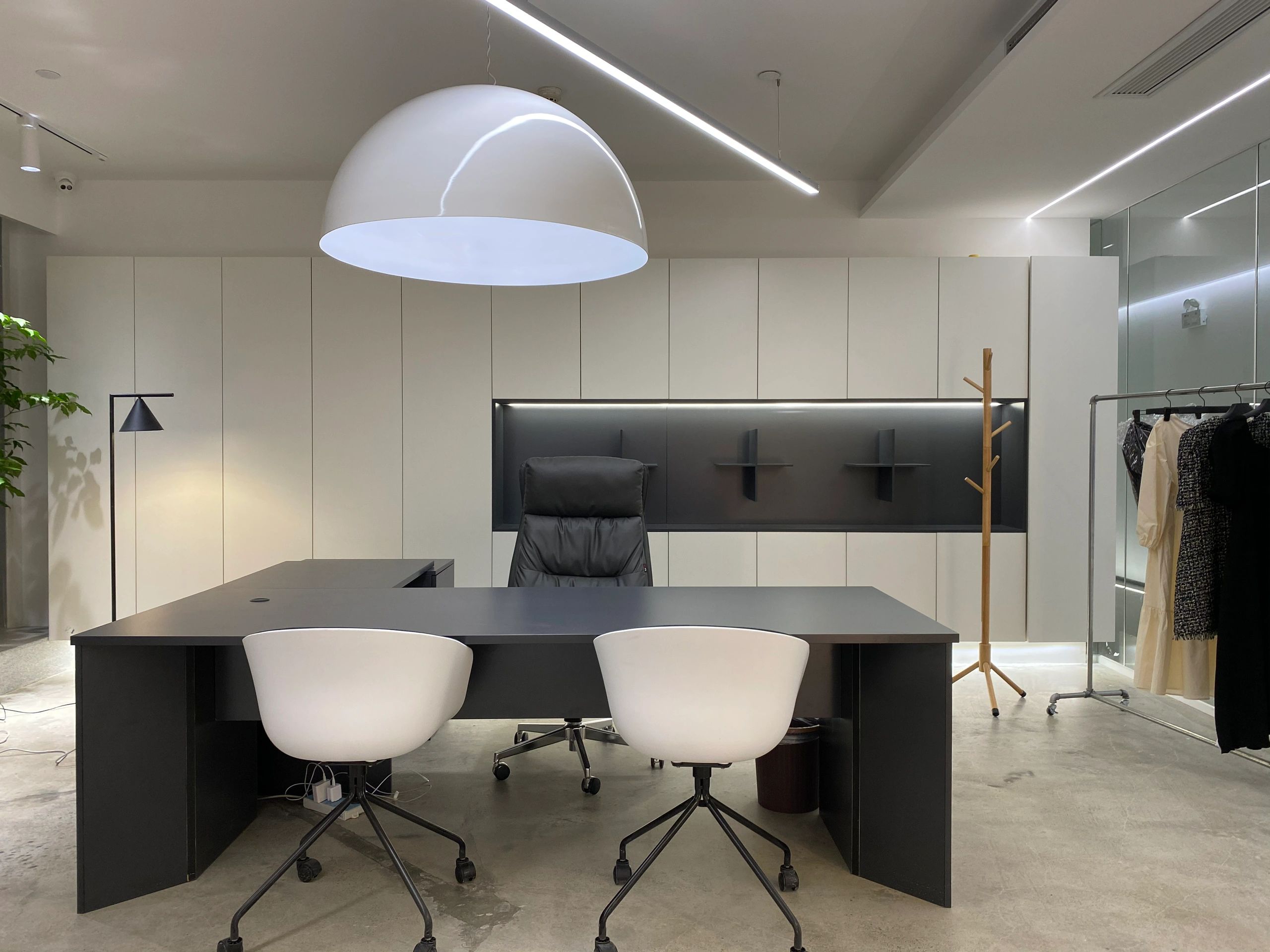 传统的办公室布局模式被打破,取而代之的是一个开放式、超前风格与艺术气息的空间环境,直线的刻板印象被曲线的流动感所替代。设计师希望以此建立办公场所与人们之间的新连接。并借助装置艺术的特性与空间留白,圆形符号自然形成的聚离,以及曲线的延展性,创造一个灵动的、充满想象力的空间。