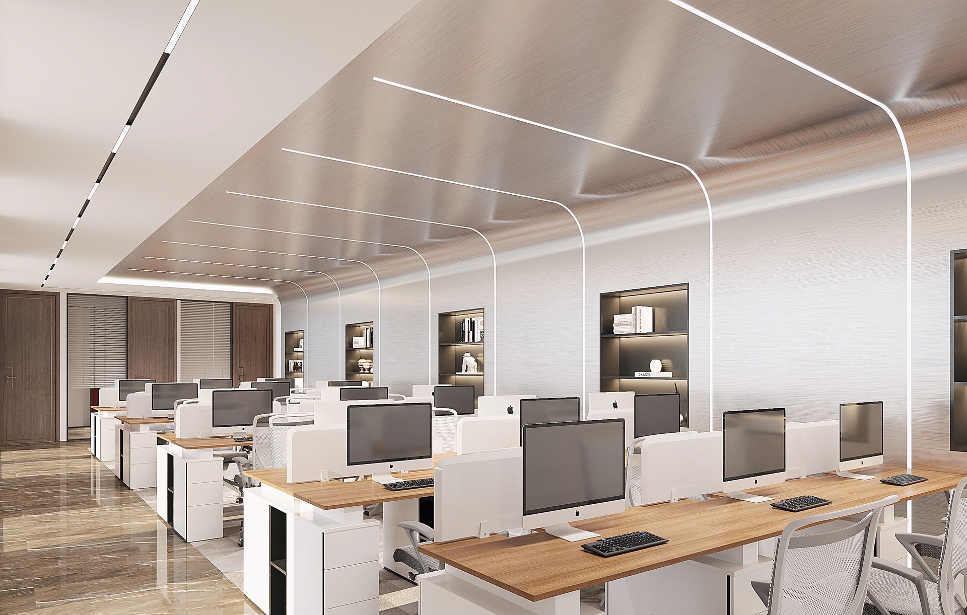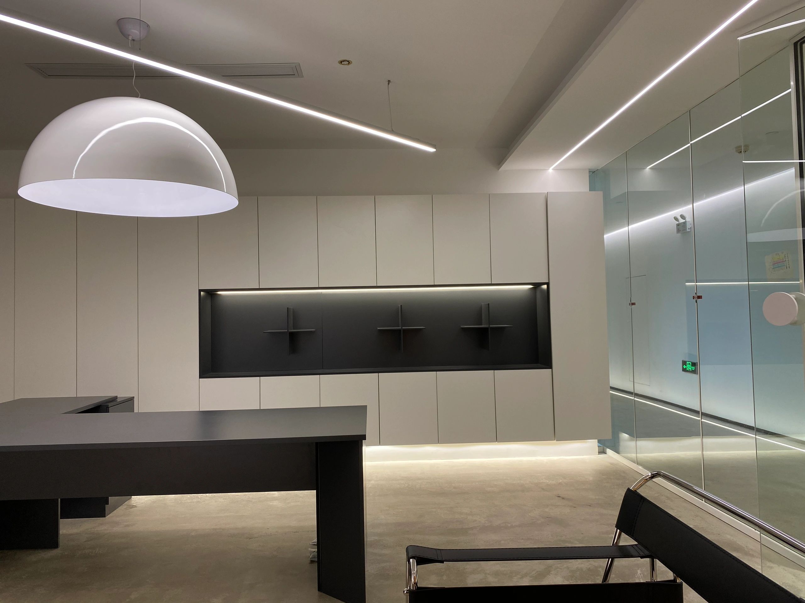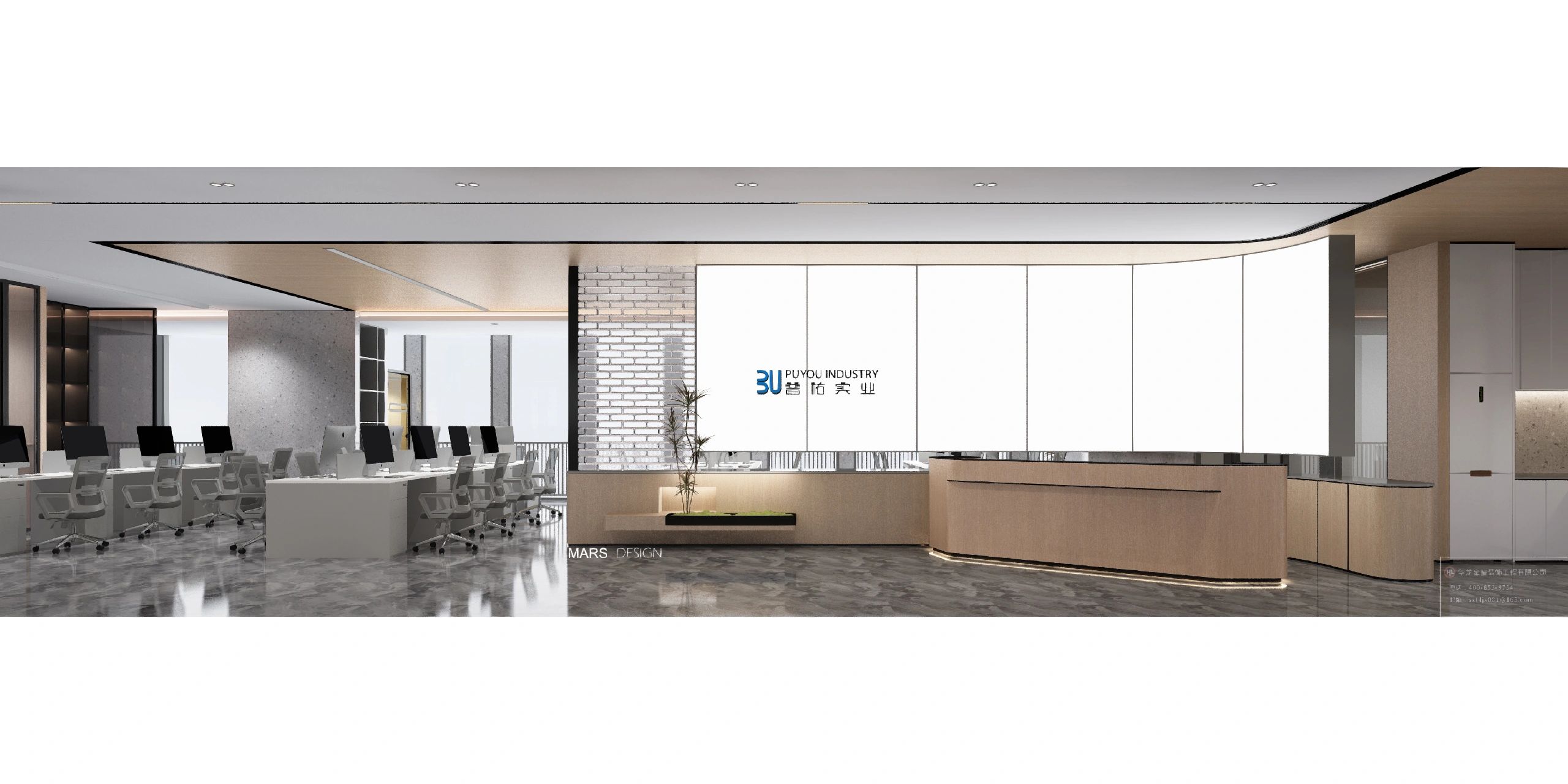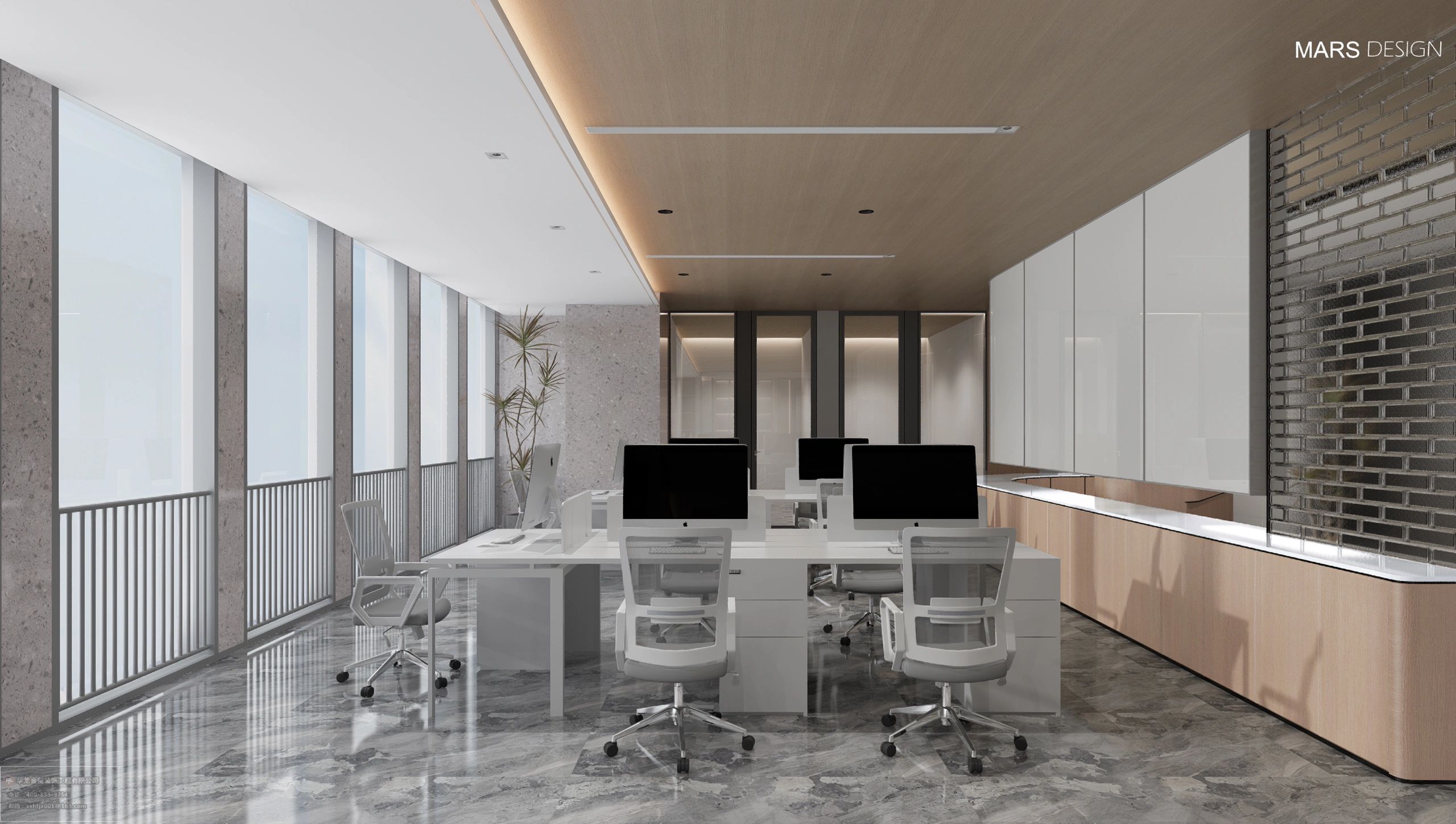 传统的办公室布局模式被打破,取而代之的是一个开放式、超前风格与艺术气息的空间环境,直线的刻板印象被曲线的流动感所替代。设计师希望以此建立办公场所与人们之间的新连接。并借助装置艺术的特性与空间留白,圆形符号自然形成的聚离,以及曲线的延展性,创造一个灵动的、充满想象力的空间。