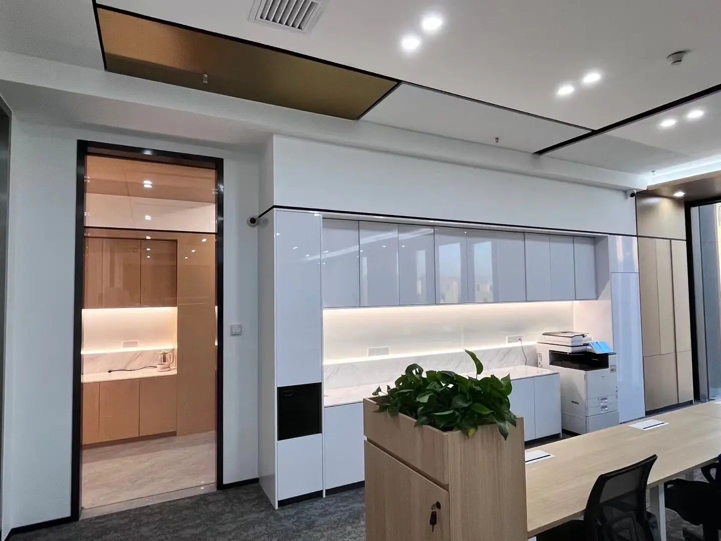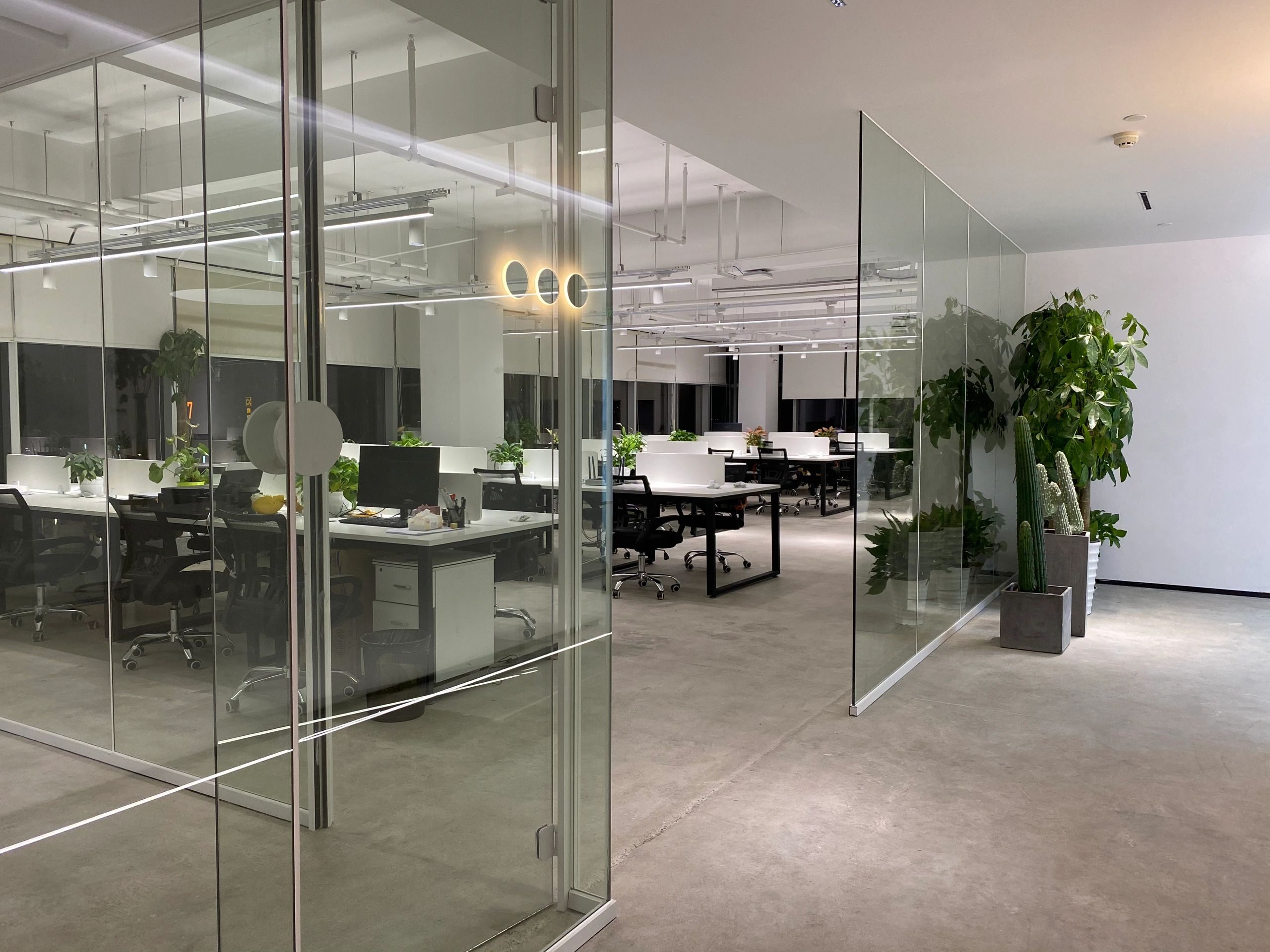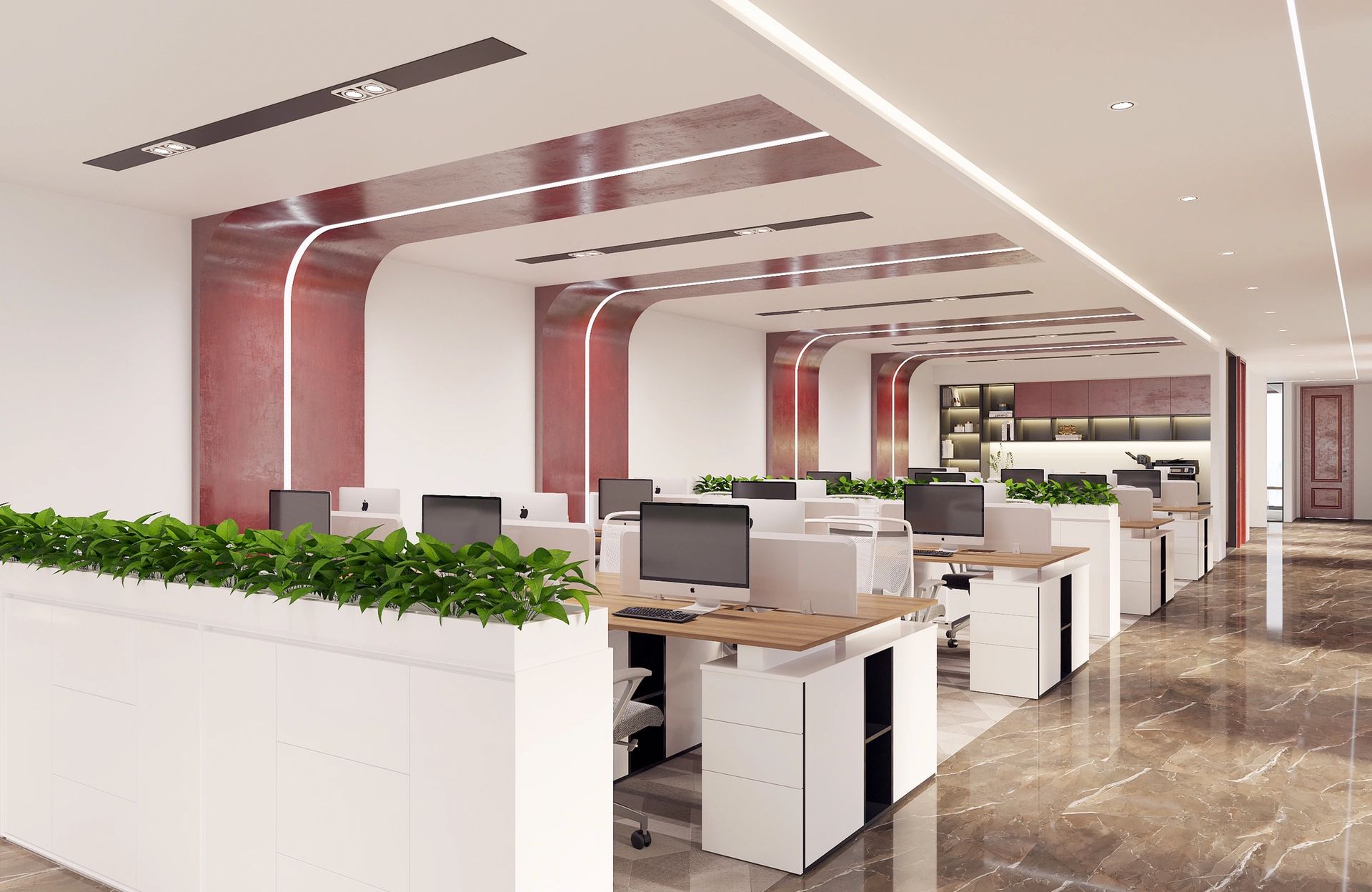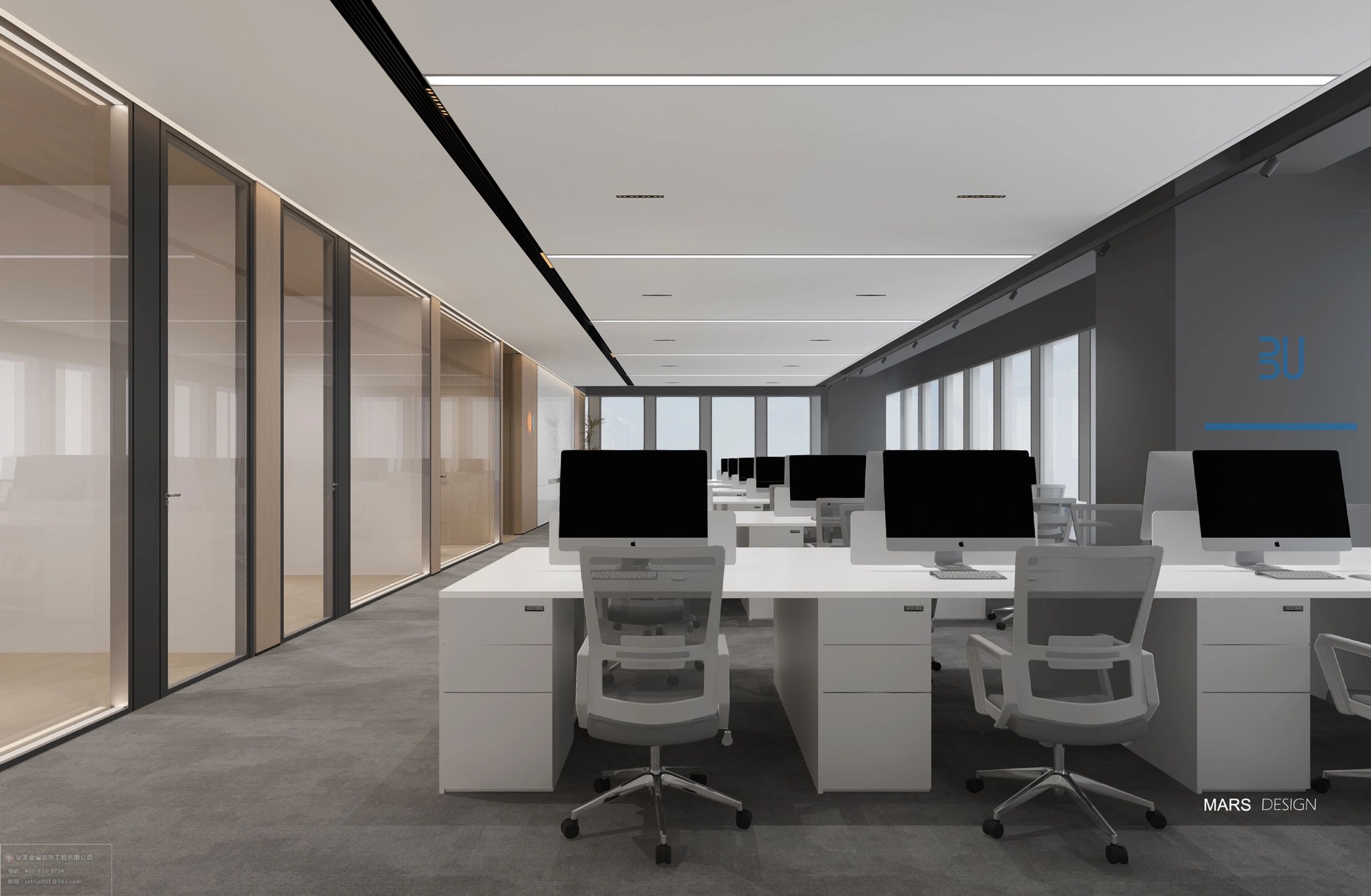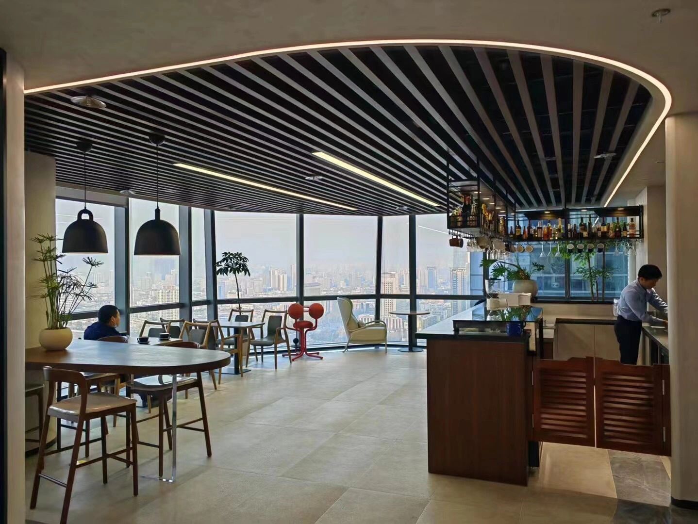 传统的办公室布局模式被打破,取而代之的是一个开放式、超前风格与艺术气息的空间环境,直线的刻板印象被曲线的流动感所替代。设计师希望以此建立办公场所与人们之间的新连接。并借助装置艺术的特性与空间留白,圆形符号自然形成的聚离,以及曲线的延展性,创造一个灵动的、充满想象力的空间。