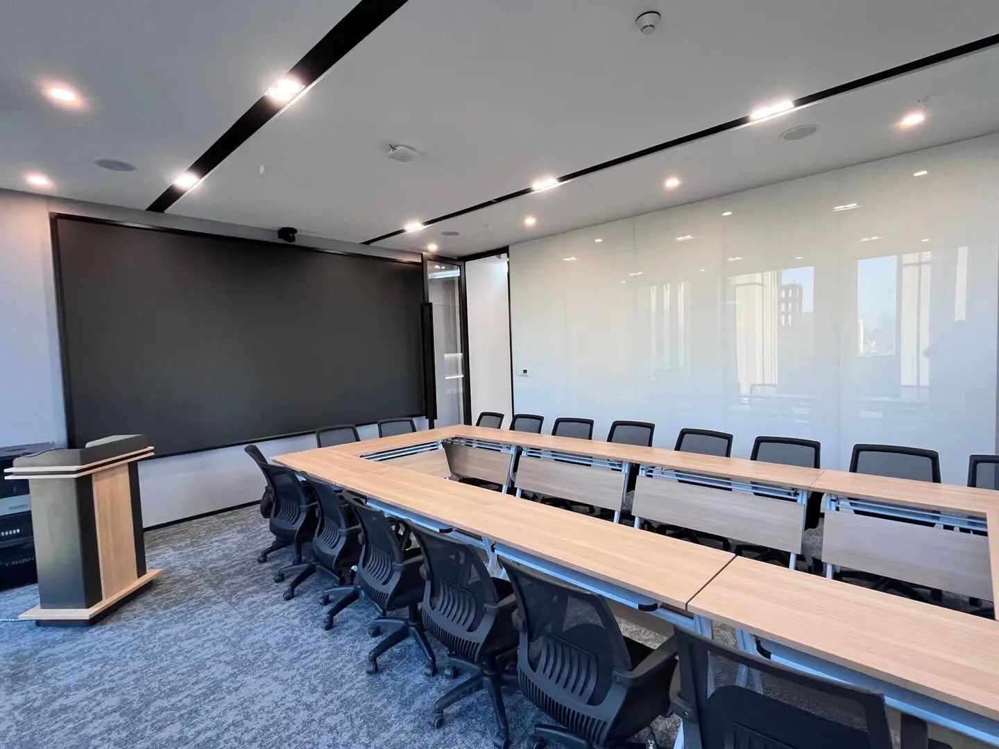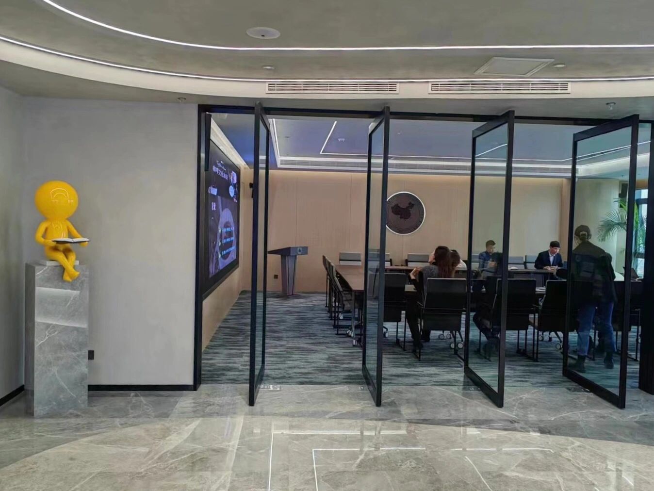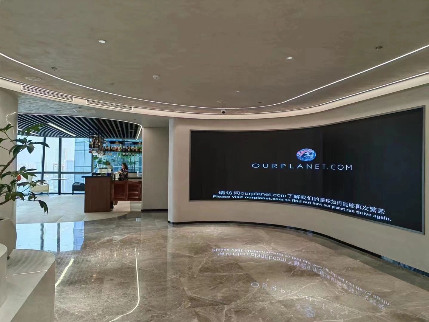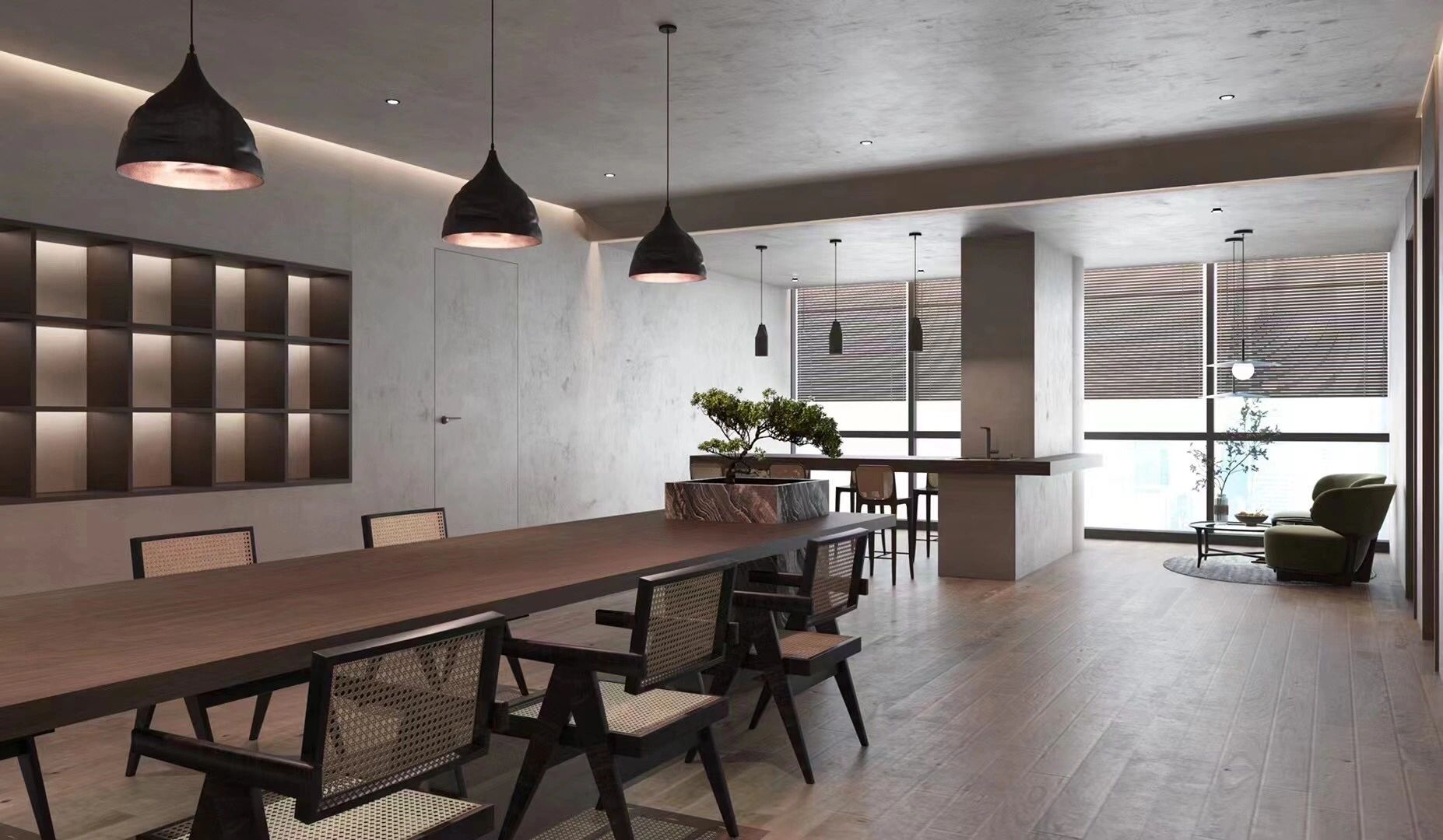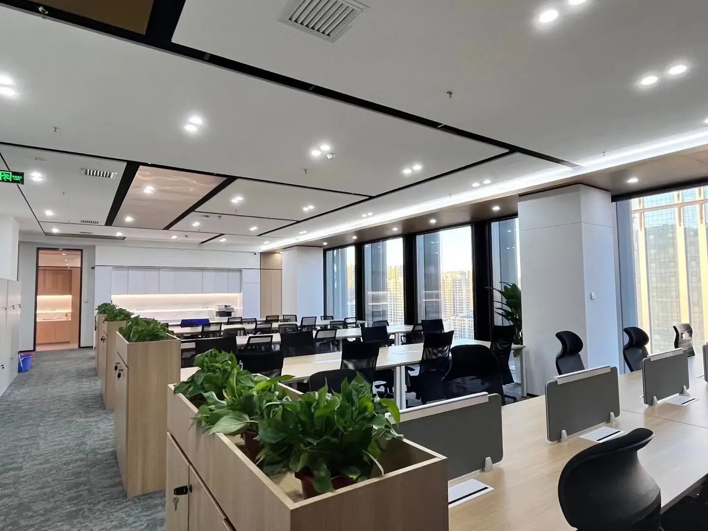 传统的办公室布局模式被打破,取而代之的是一个开放式、超前风格与艺术气息的空间环境,直线的刻板印象被曲线的流动感所替代。设计师希望以此建立办公场所与人们之间的新连接。并借助装置艺术的特性与空间留白,圆形符号自然形成的聚离,以及曲线的延展性,创造一个灵动的、充满想象力的空间。