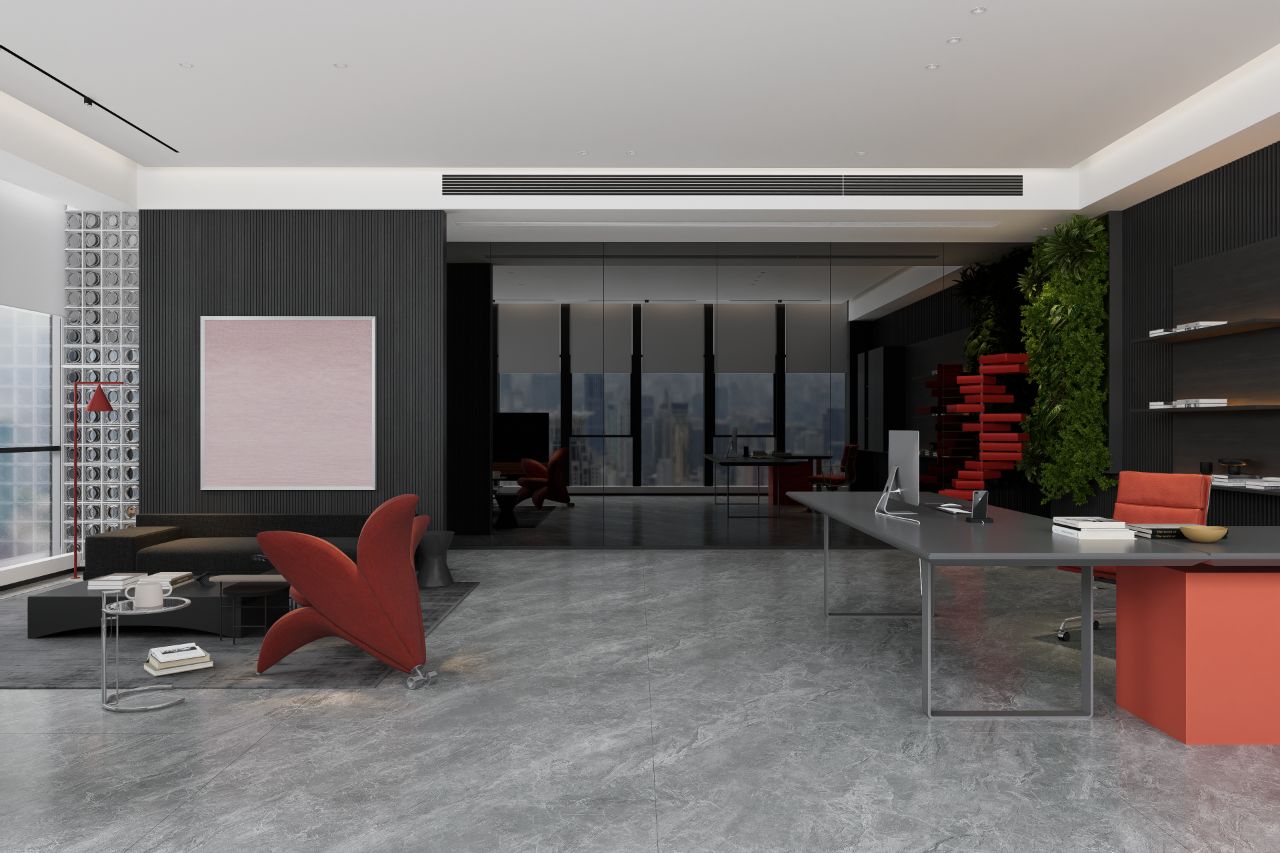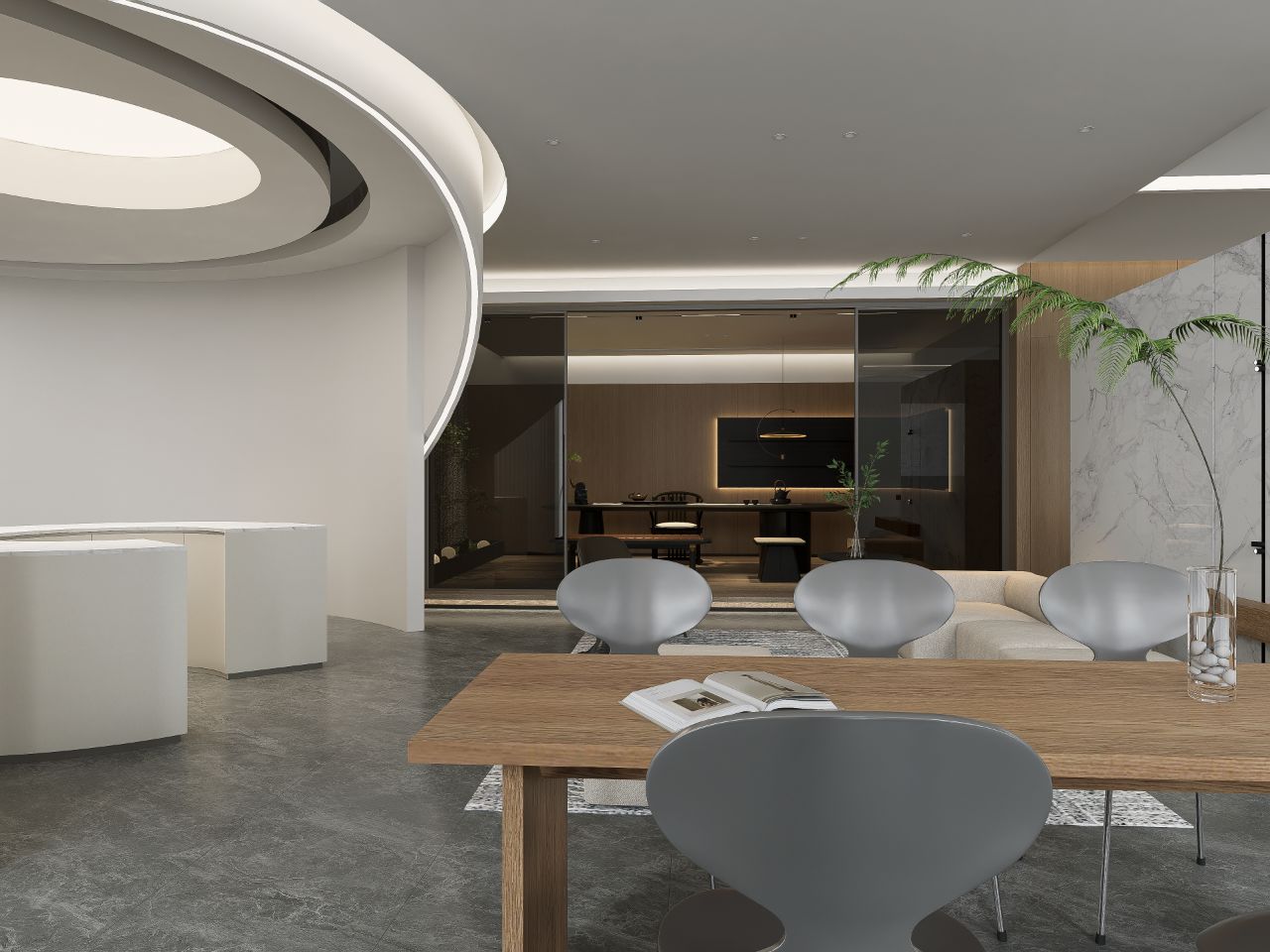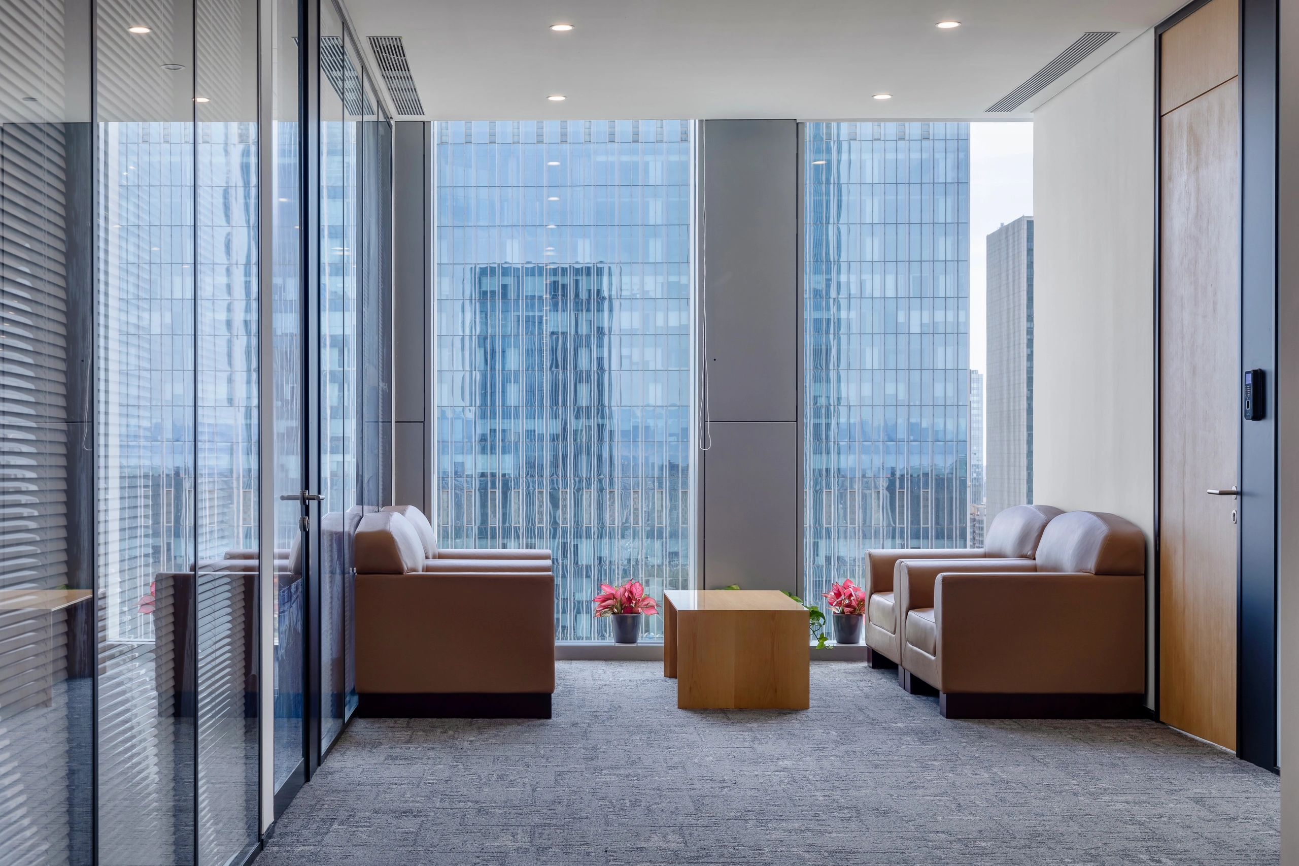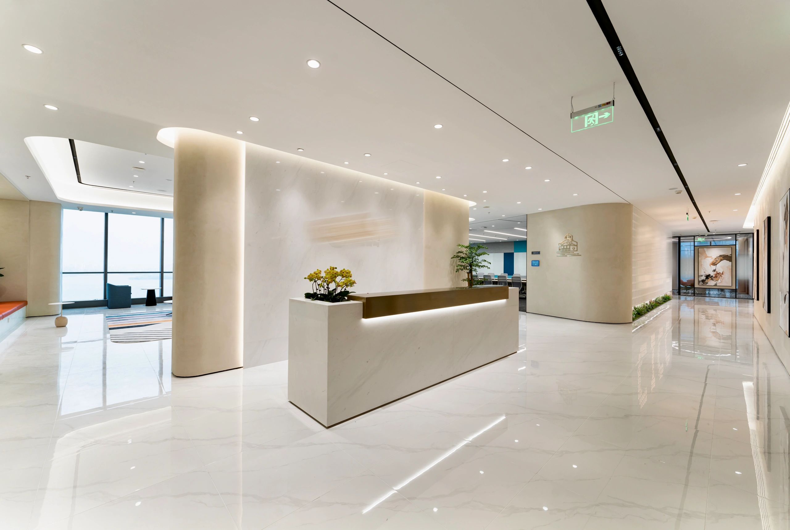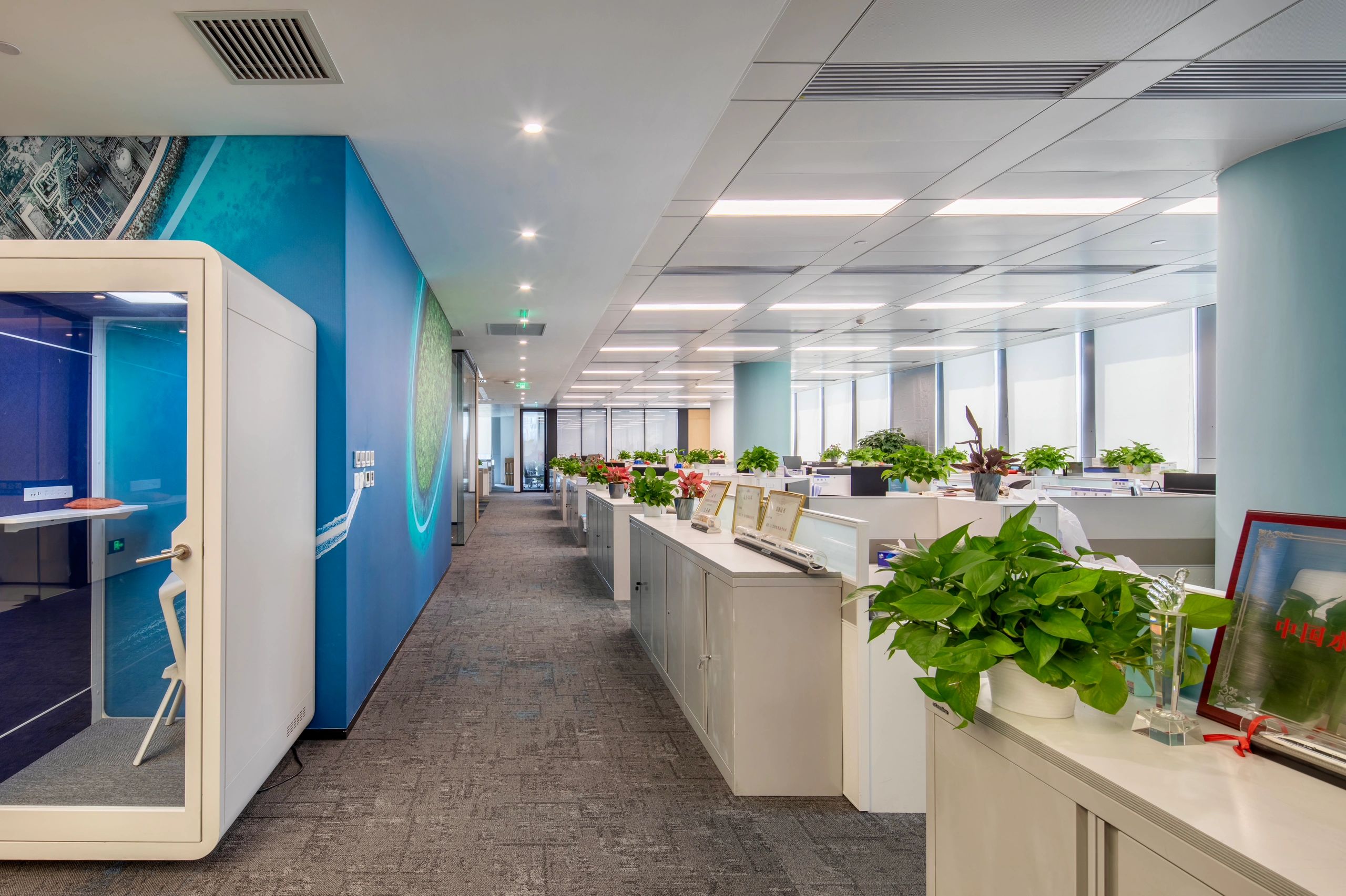 以该企业色为设计基础,注重空间的开放性和流动性。简洁的线条和几何形状,营造出端庄大气的氛围。同时合理规划功能空间布局,使办公活动更加便利高效。