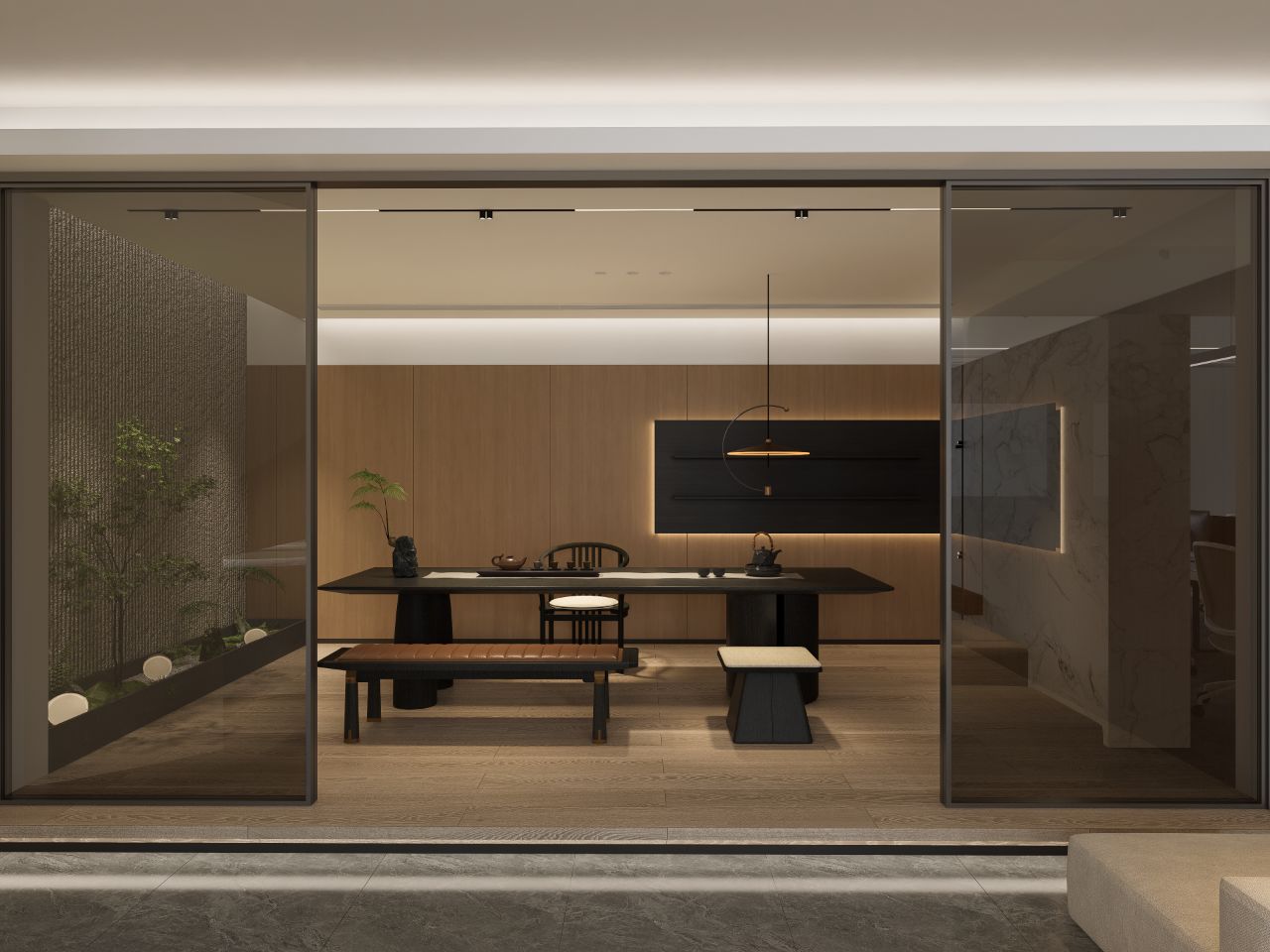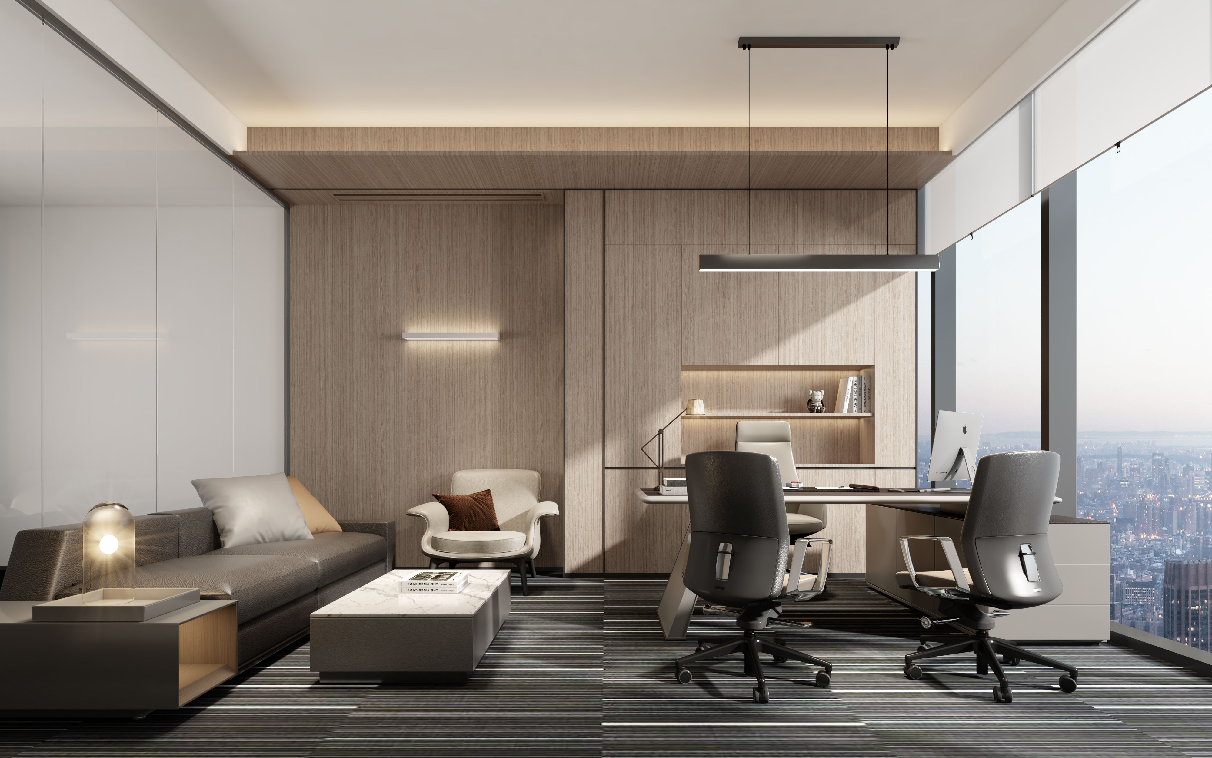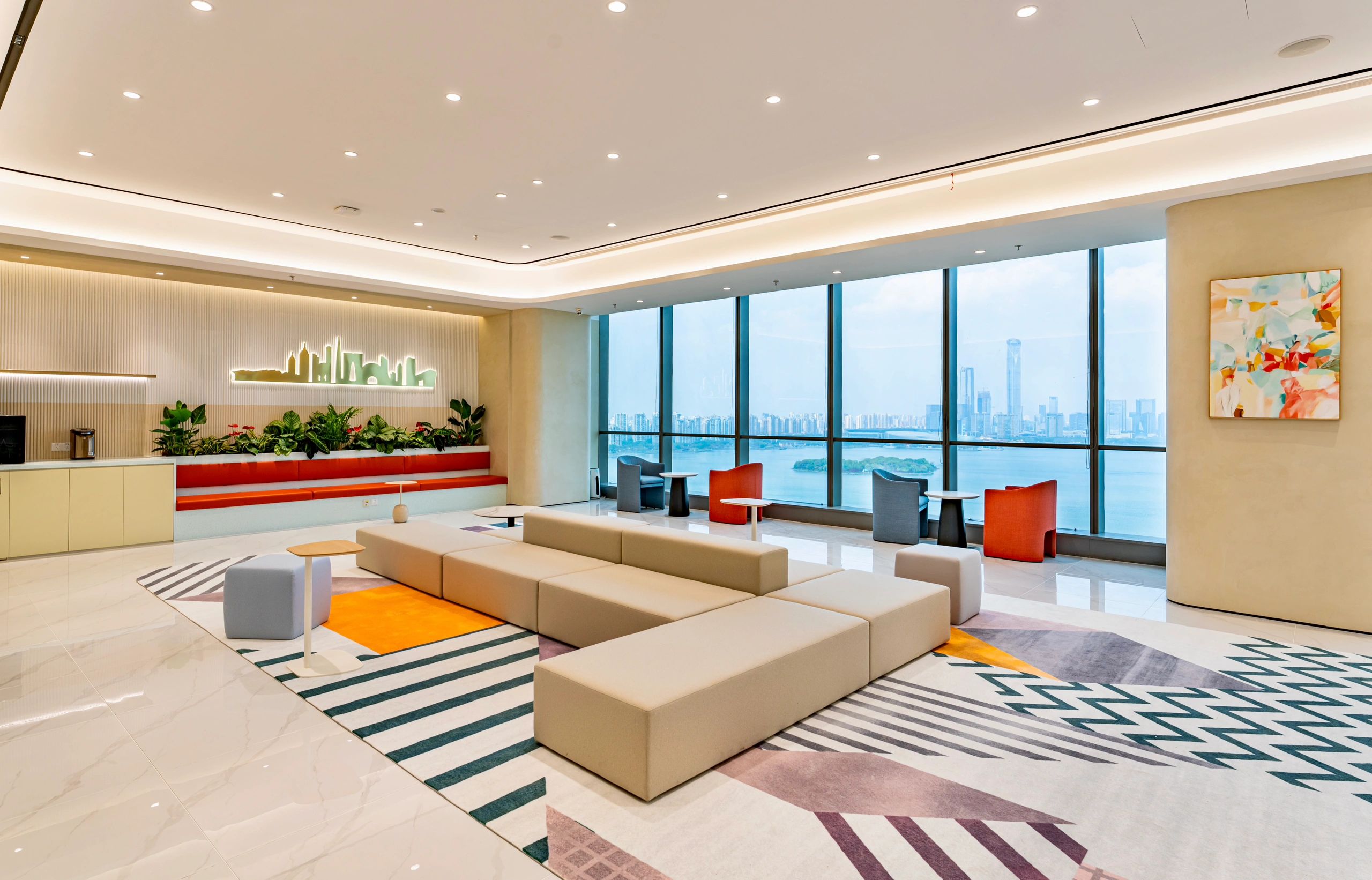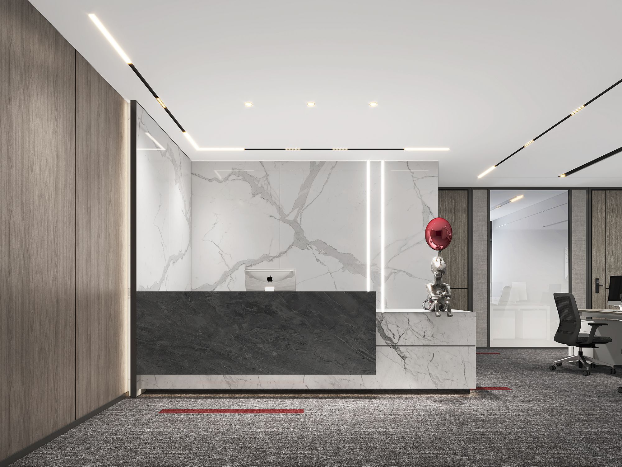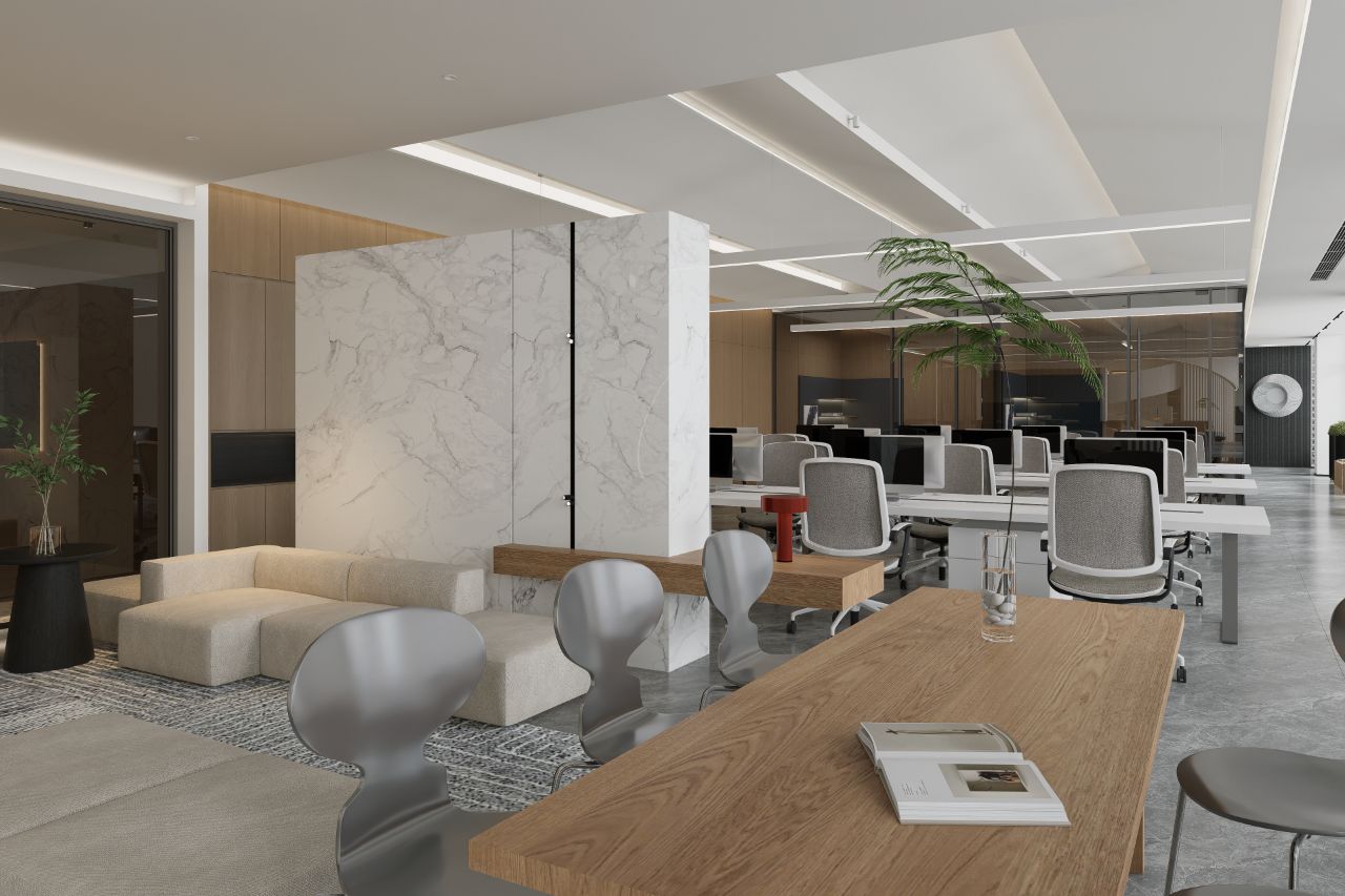 以该企业色为设计基础,注重空间的开放性和流动性。简洁的线条和几何形状,营造出端庄大气的氛围。同时合理规划功能空间布局,使办公活动更加便利高效。