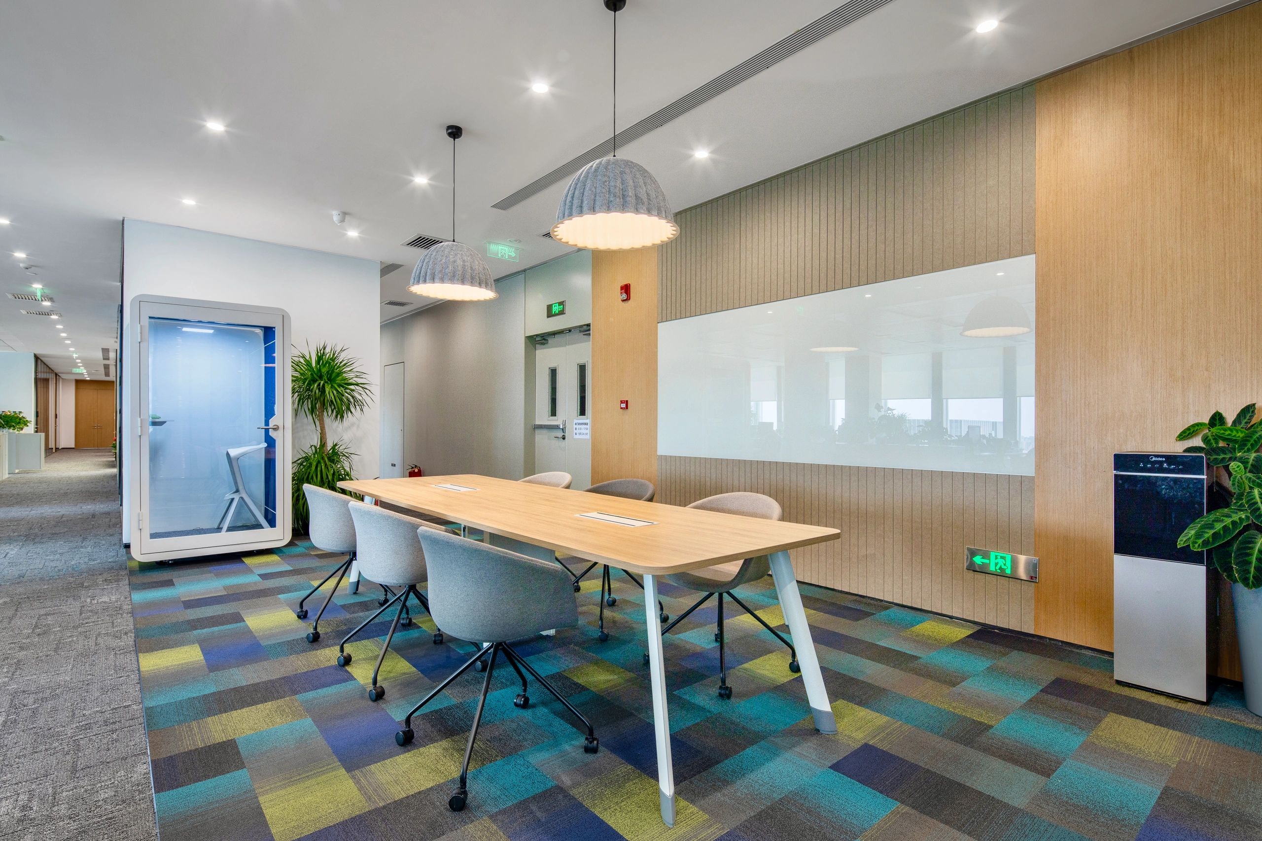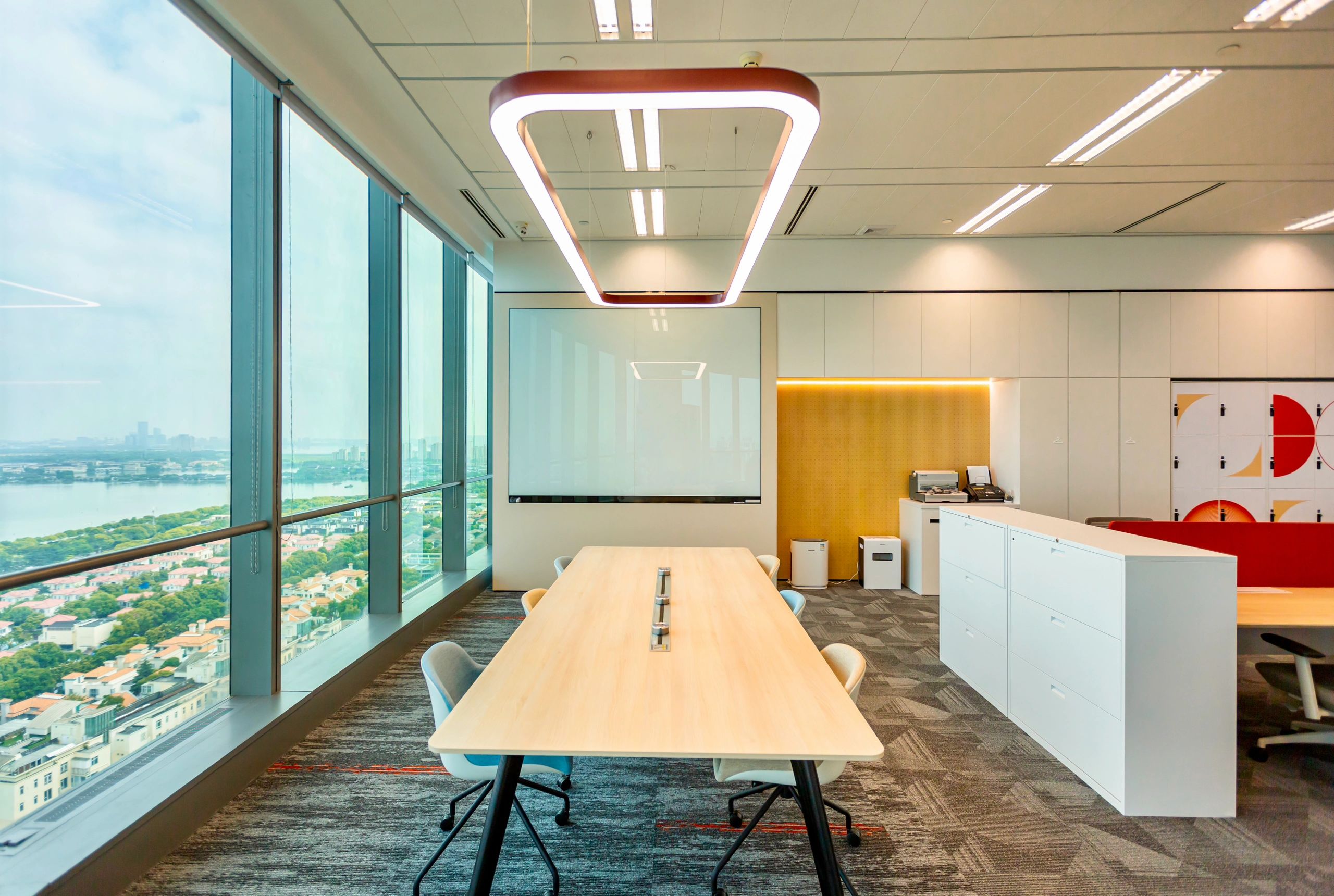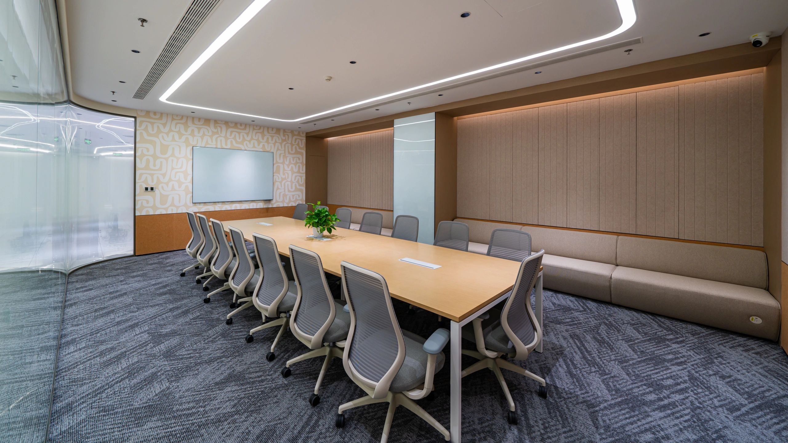 设计上融入具有当地文化特色前台文化墙,历史墙展现企业深厚发展底蕴。不同形式的会议室满足各类需求,裸顶+部分吊顶的设计把降本增效进行到底。